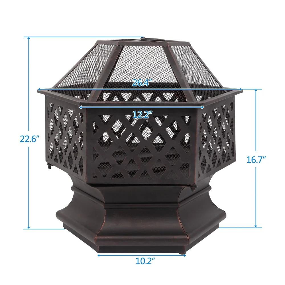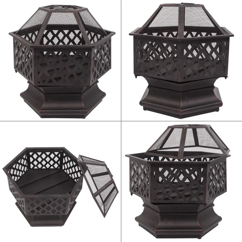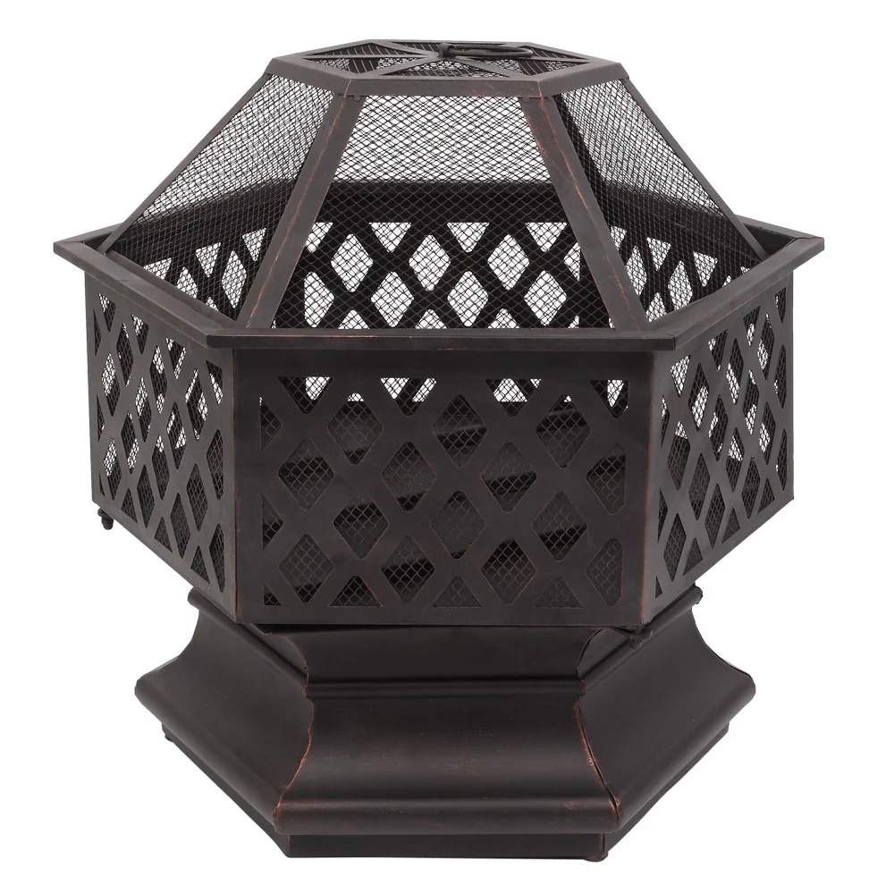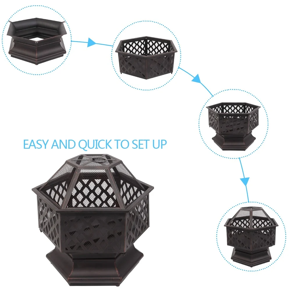 22" Hexagonal Shaped Iron Brazier Wood Burning Fire Pit
