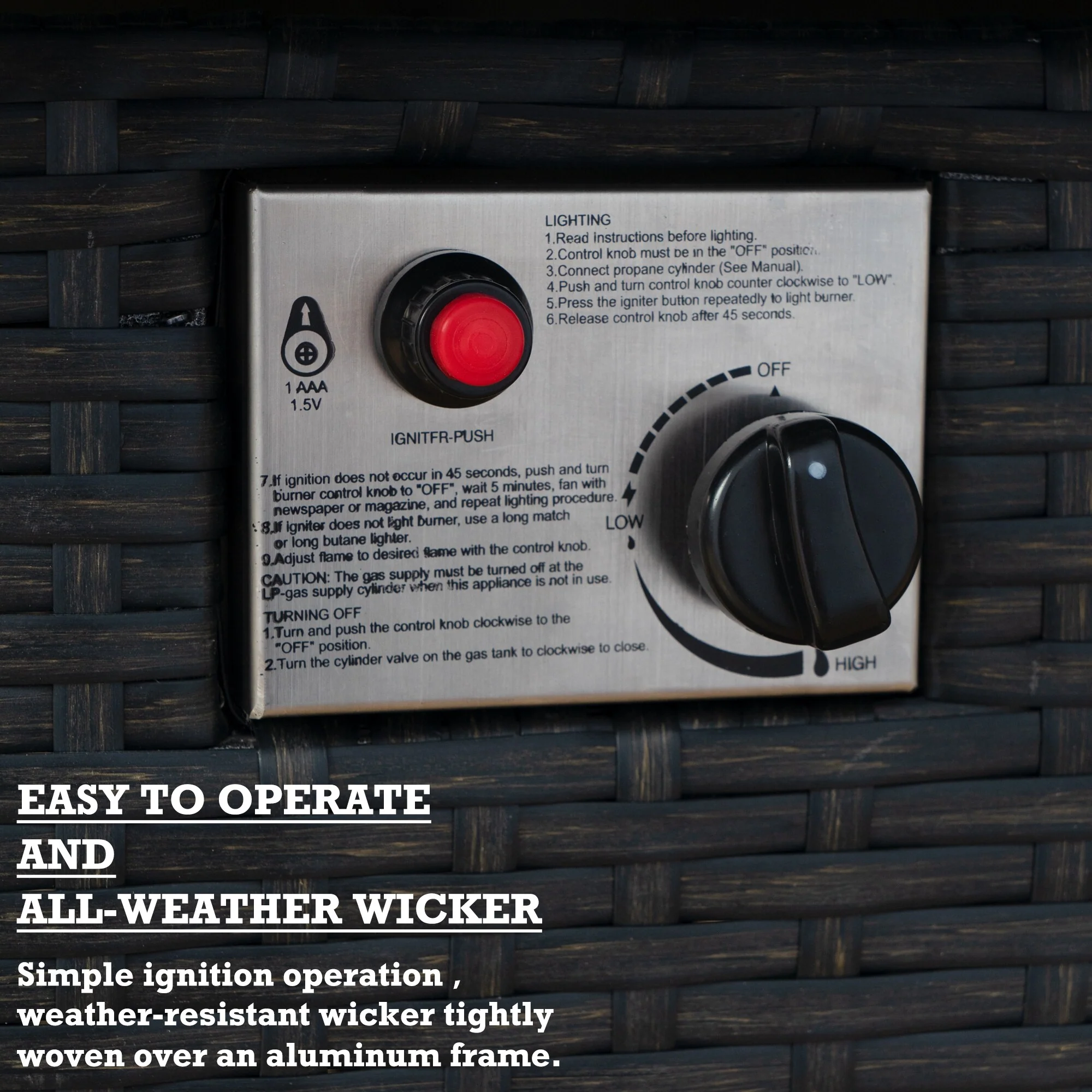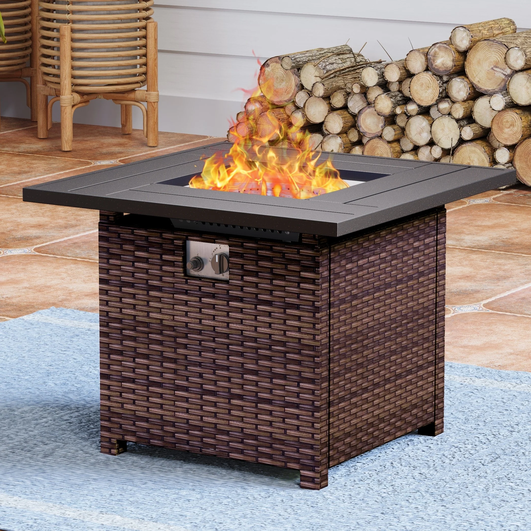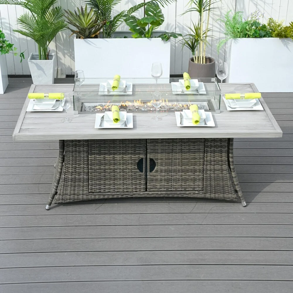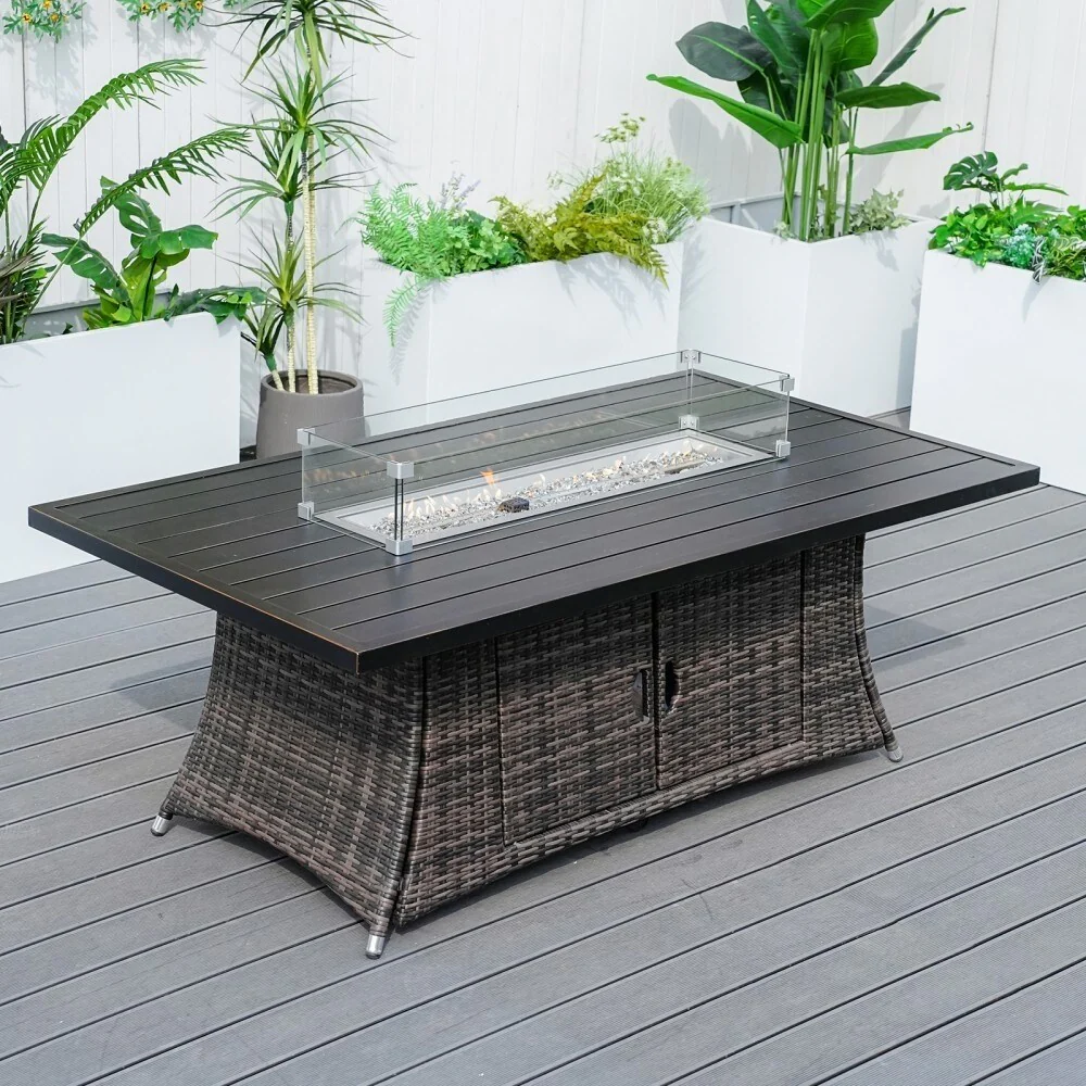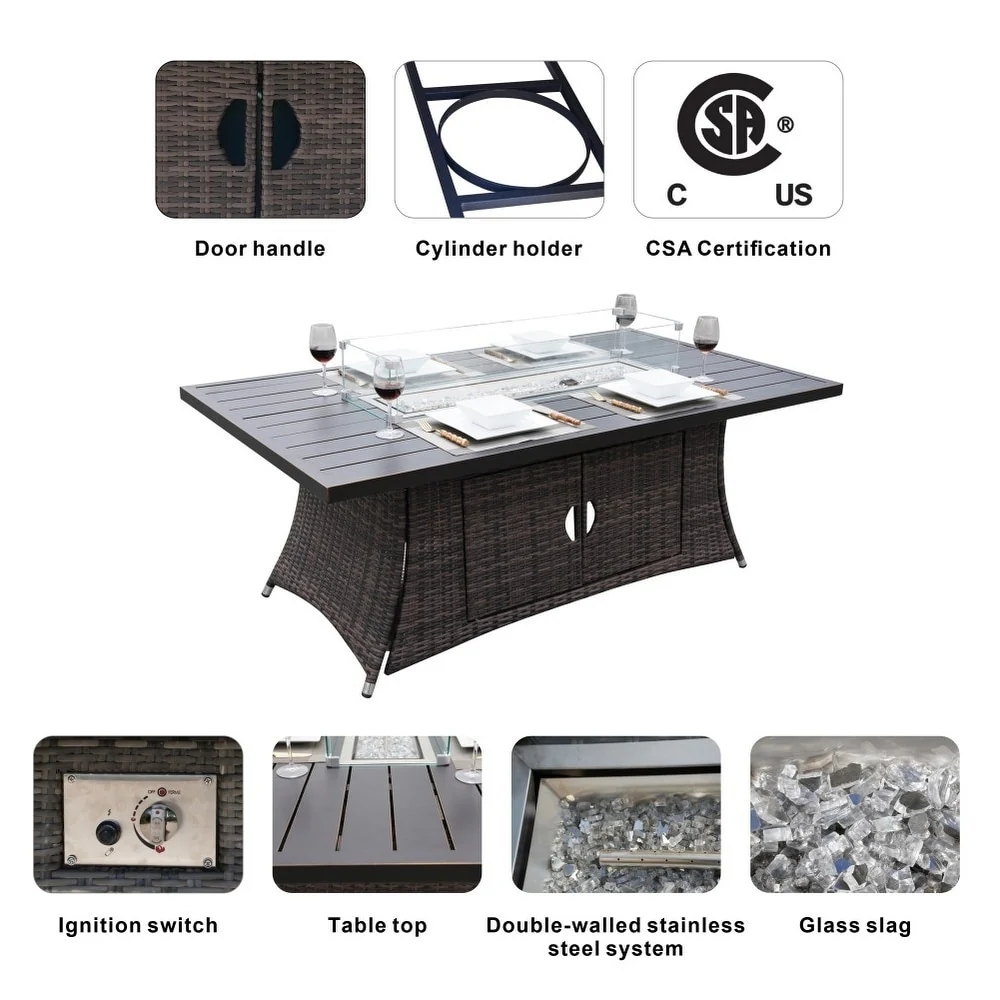 Rattan Fire Pit Table Aluminum Frame with Wind Guard - 71-Inch