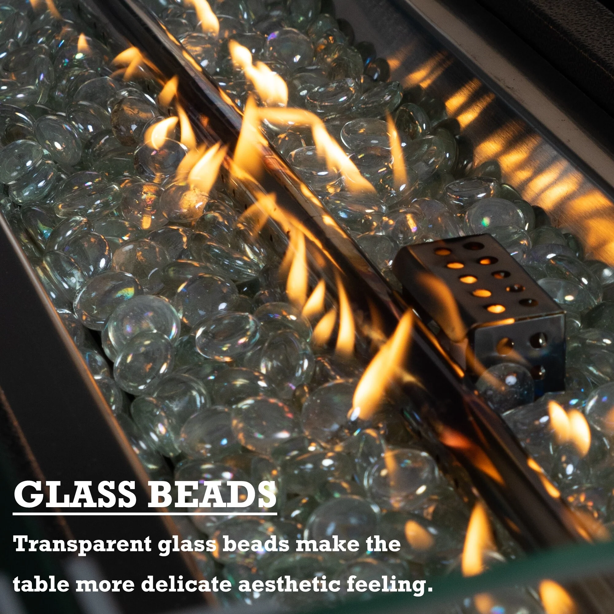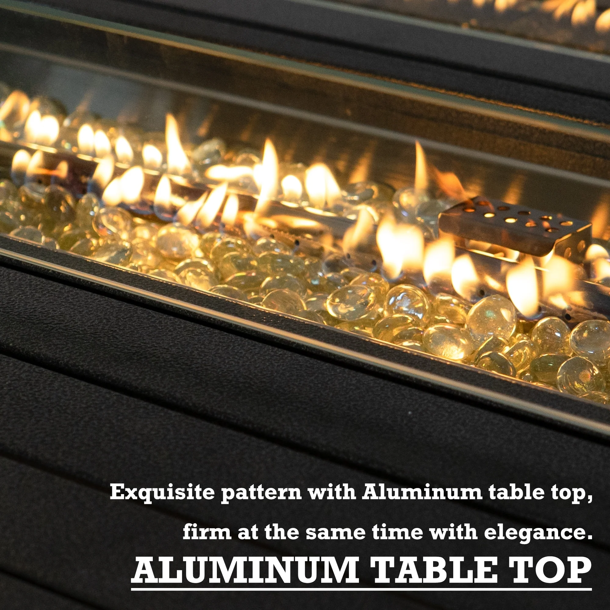 Rectangular 48 in. x 36 in. Aluminum Propane Fire Pit Table, Glass Beads, Two Covers, Lid, 57,000 BTUs - N/A