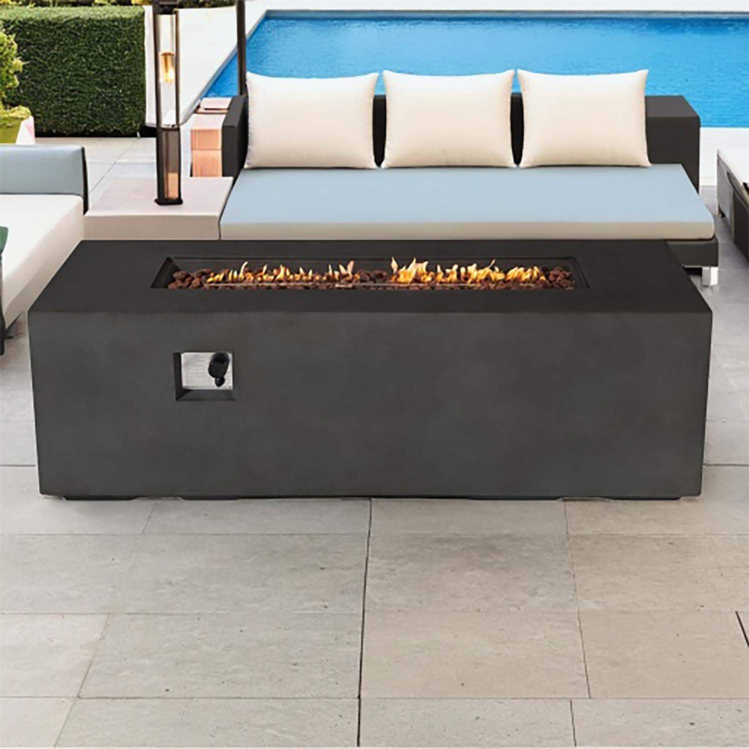 Provo Casual Rectangle Propane Fire Table in Flint by Jensen Co - 60 x 30 x 19