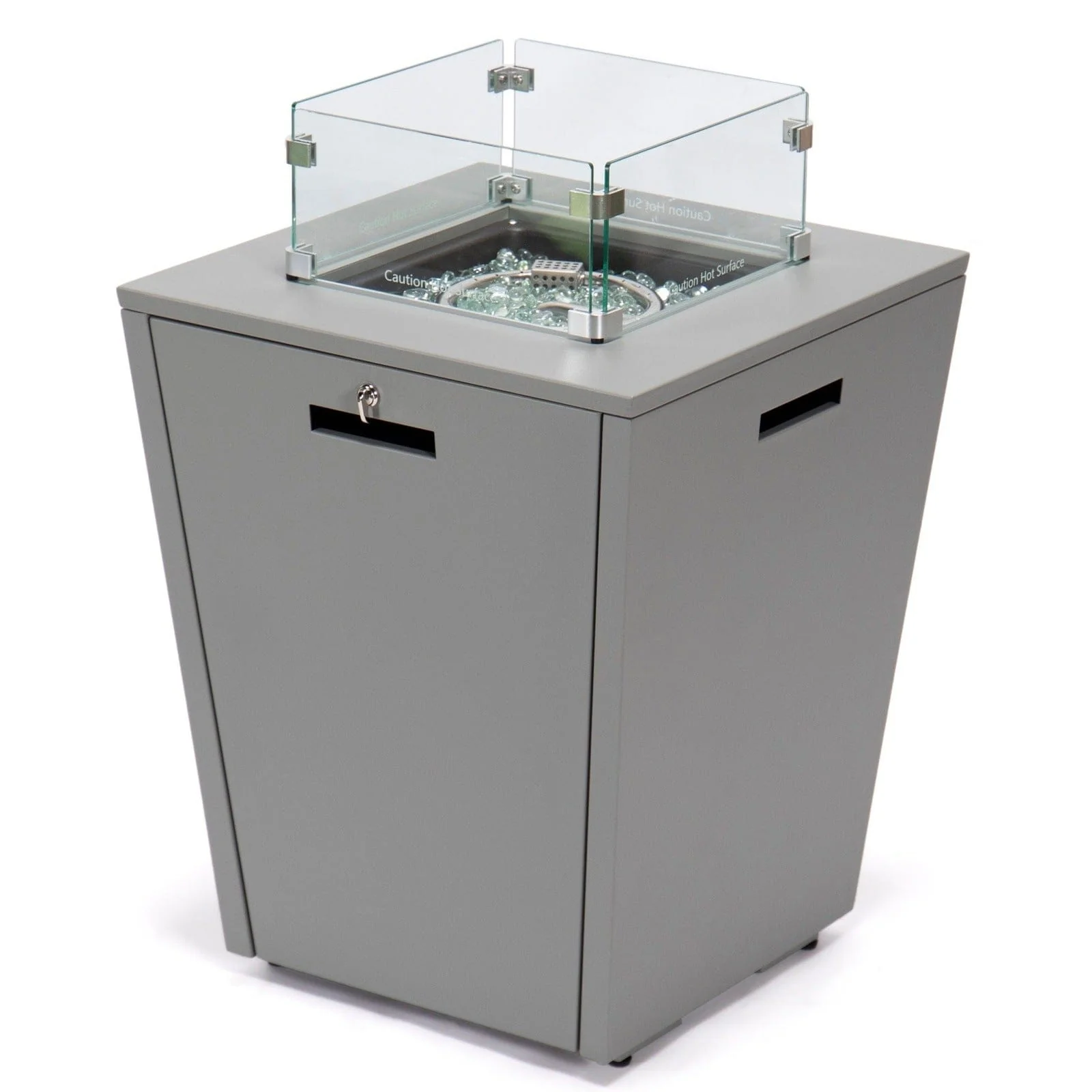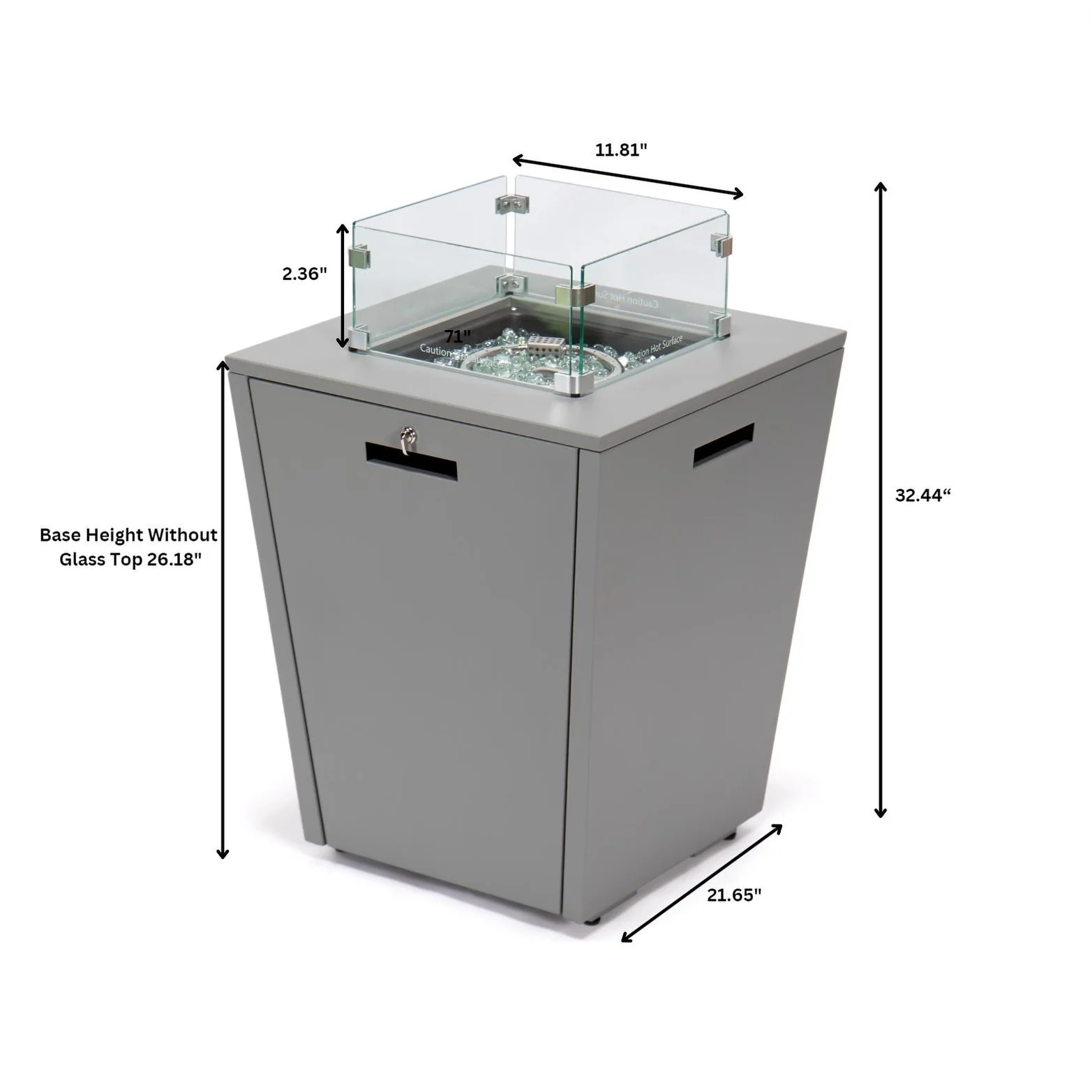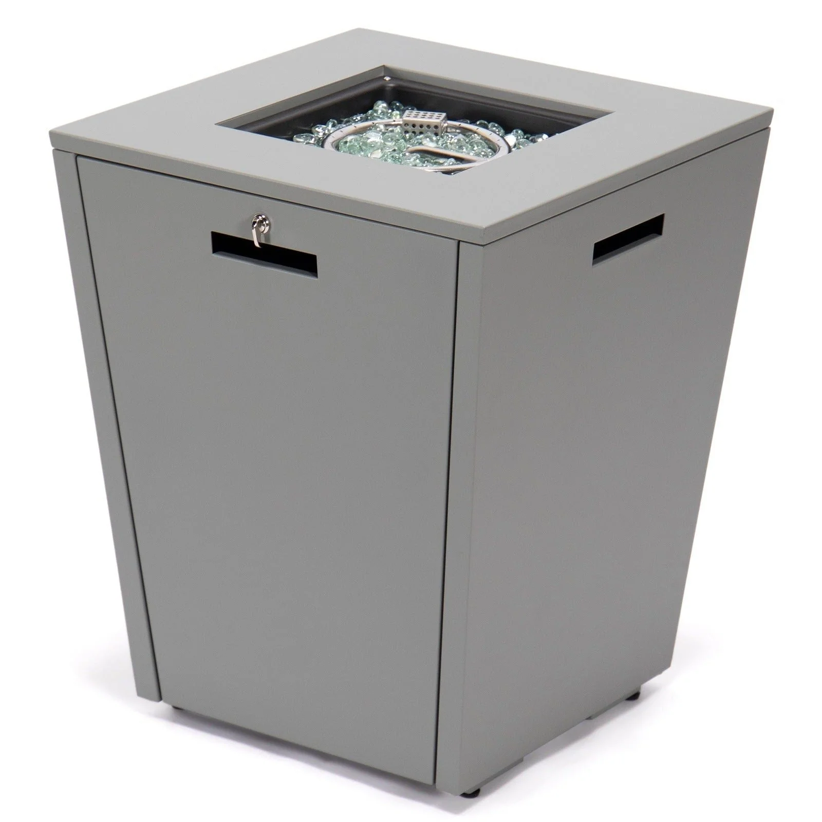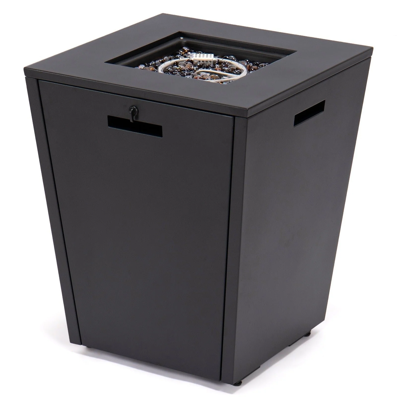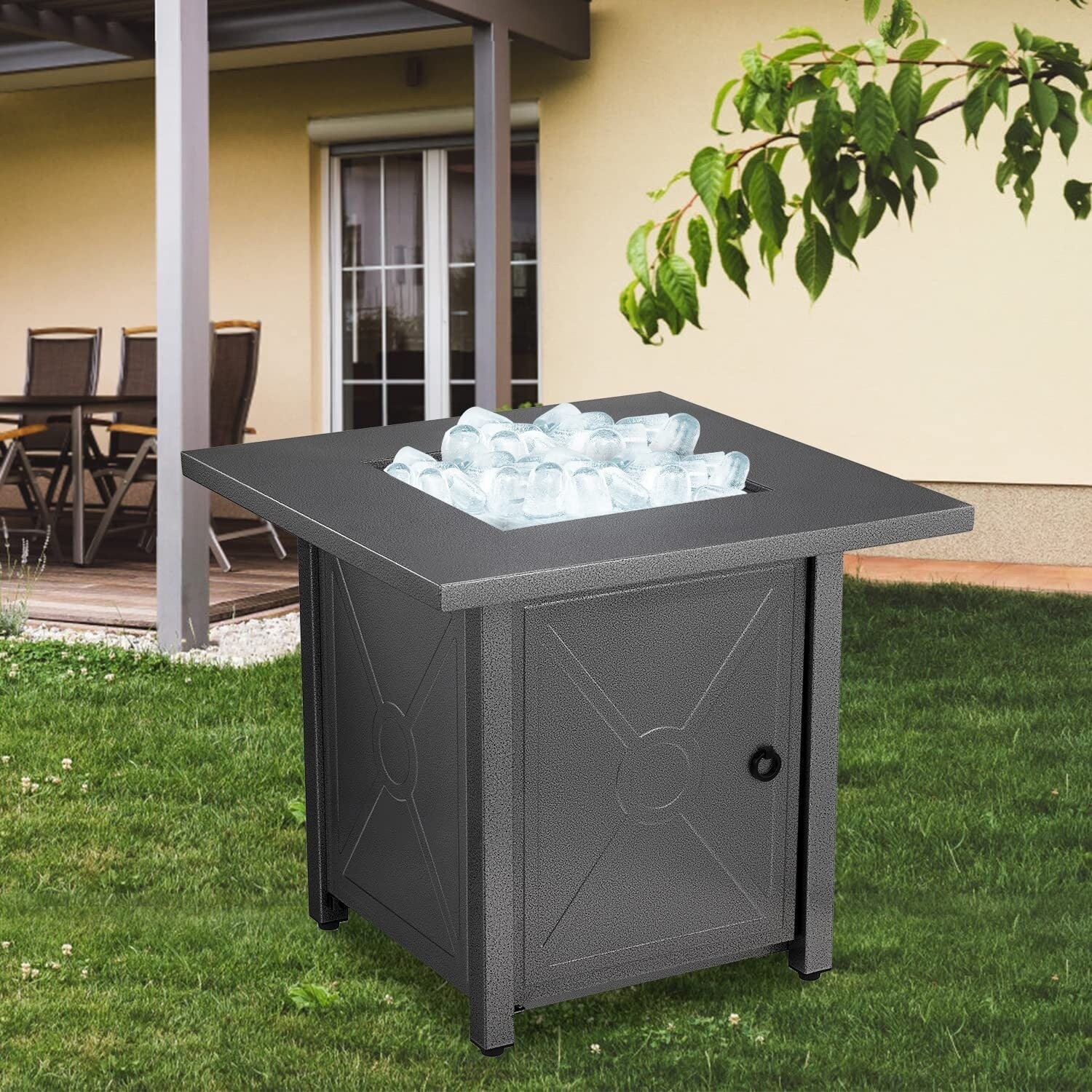 Chelsea Outdoor Patio Aluminum Square Propane Fire Pit Table with Fire Guard for Garden Porch & Backyard - 32" H x 21" W x 21" W