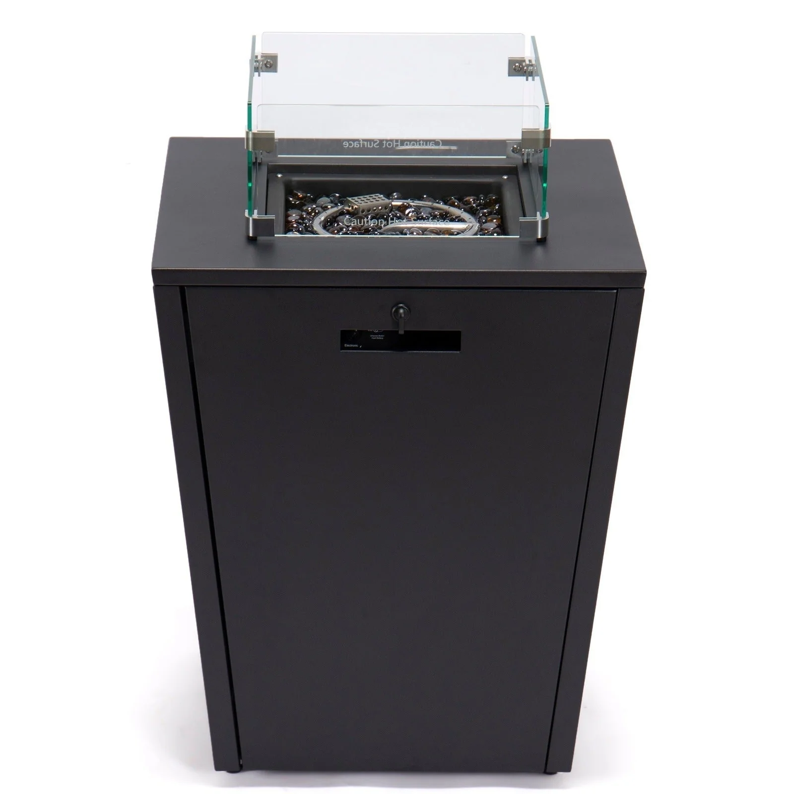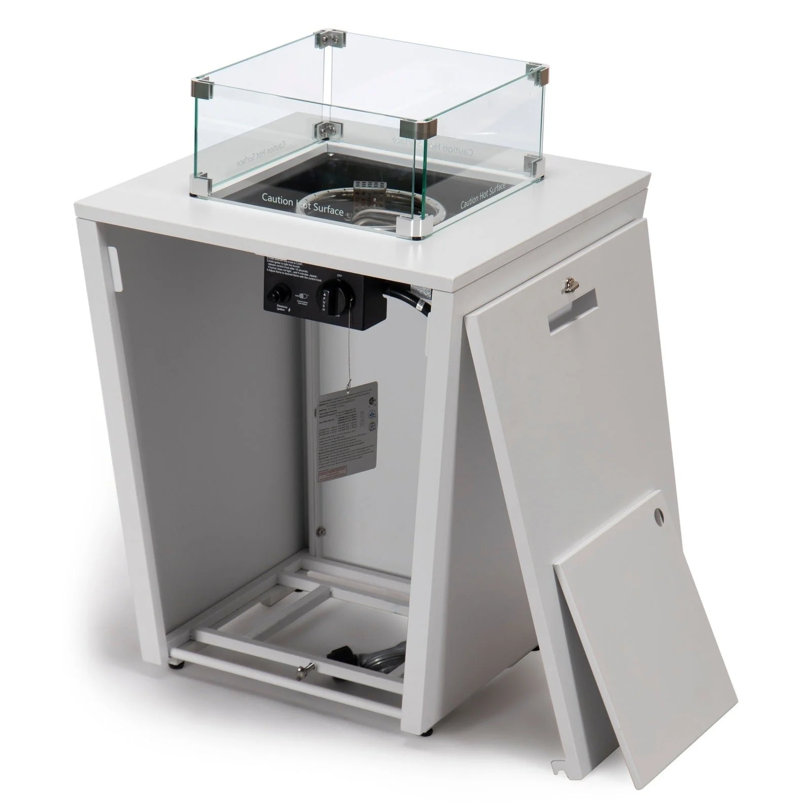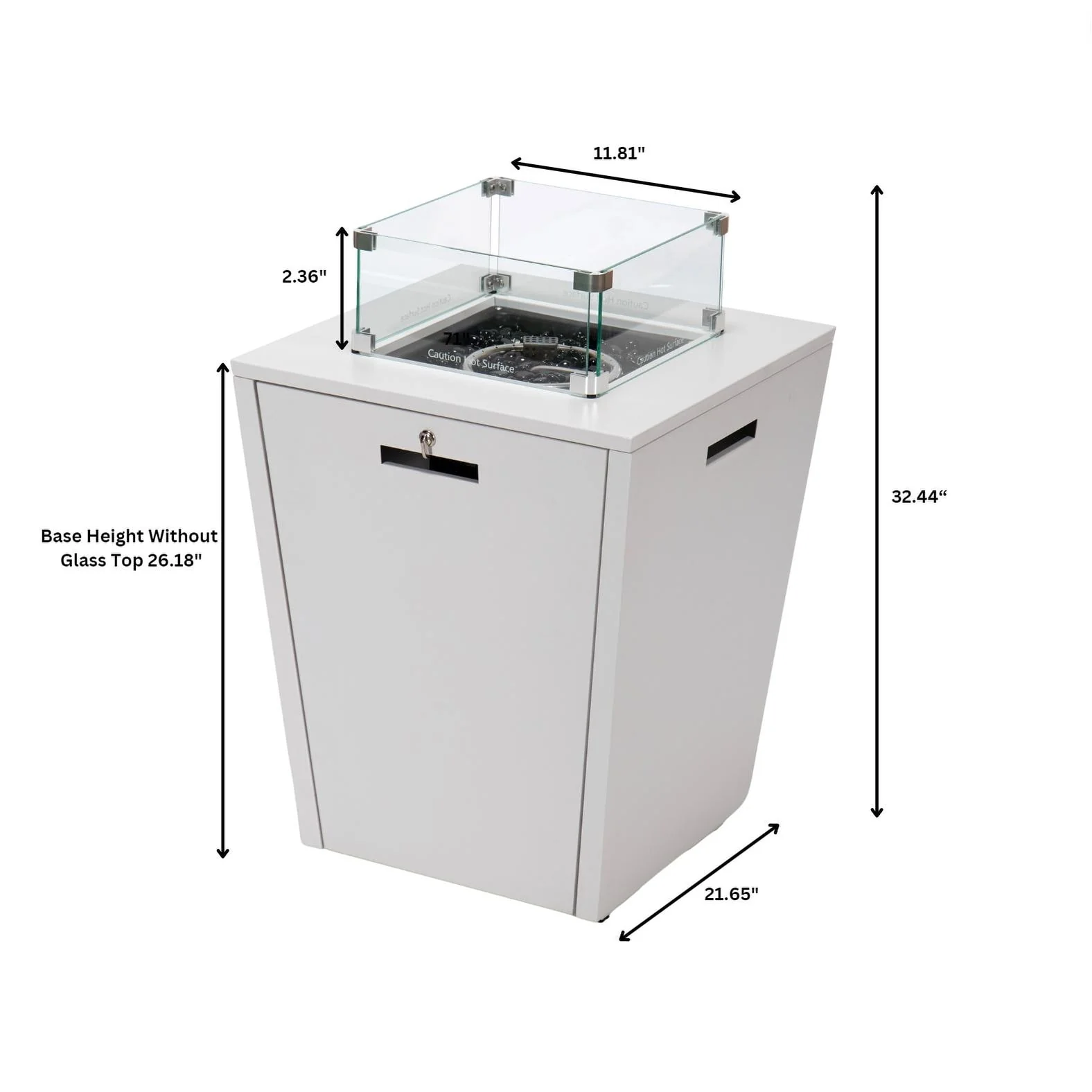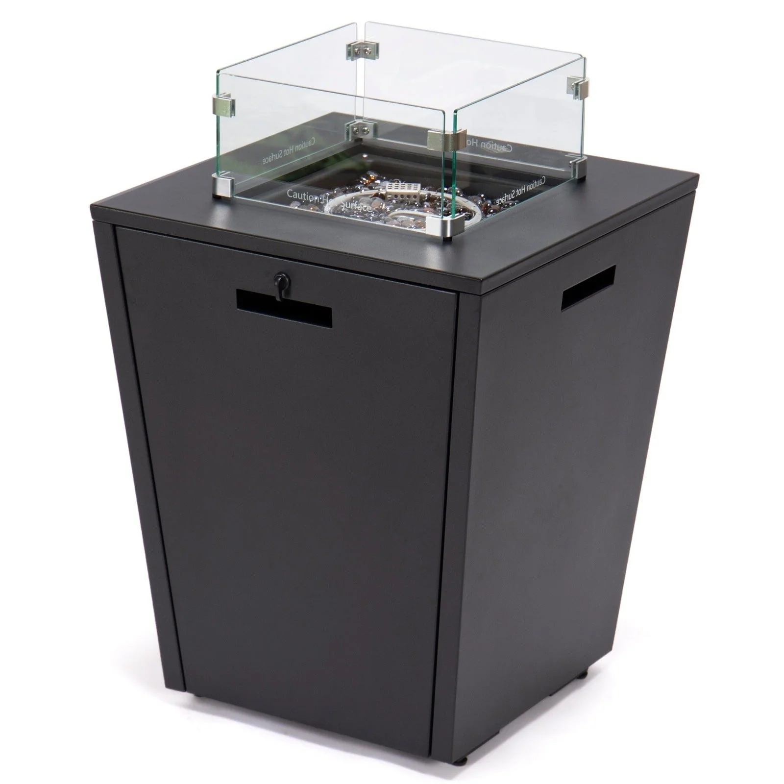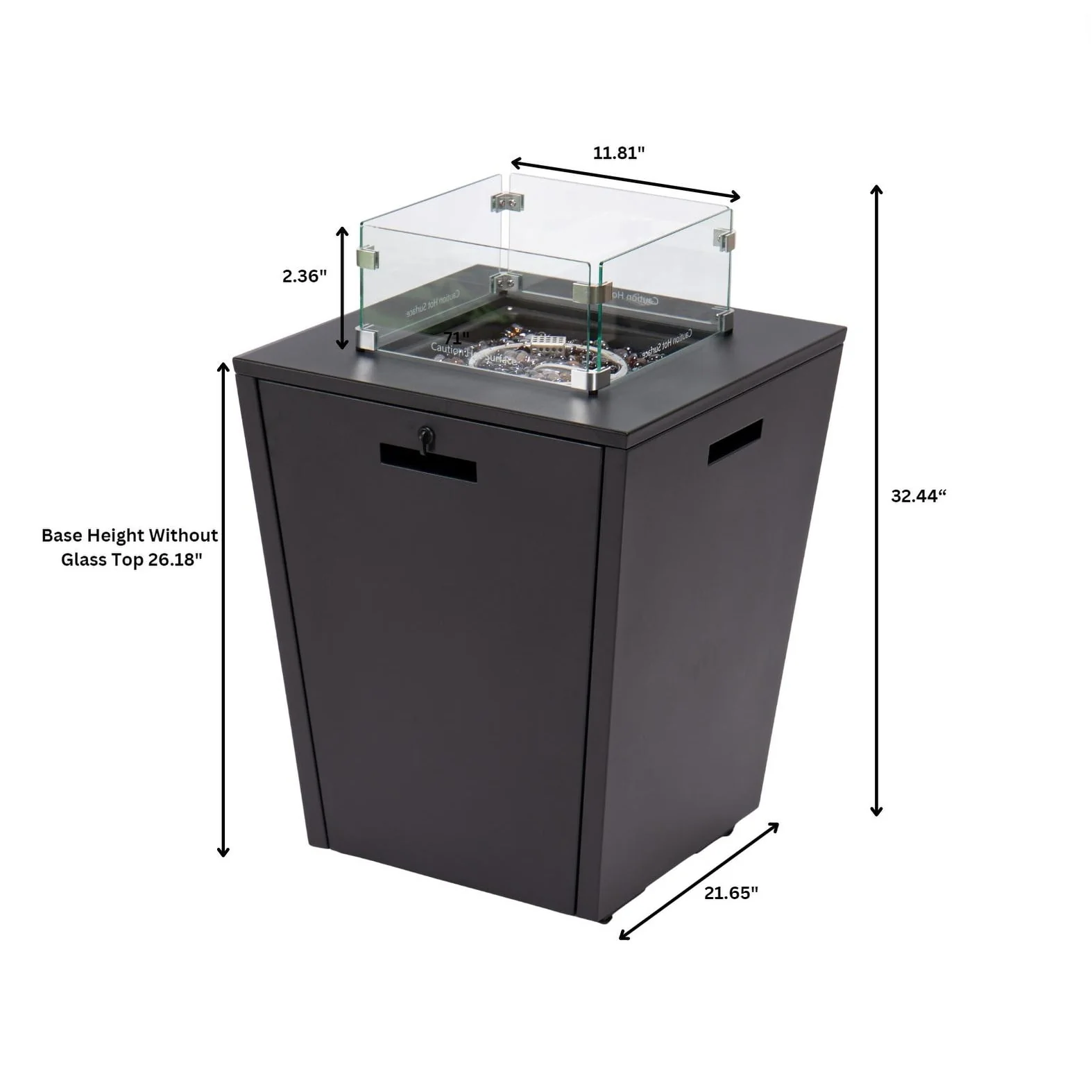 Chelsea Outdoor Patio Aluminum Square Propane Fire Pit Table with Fire Guard for Garden Porch & Backyard - 32" H x 21" W x 21" W