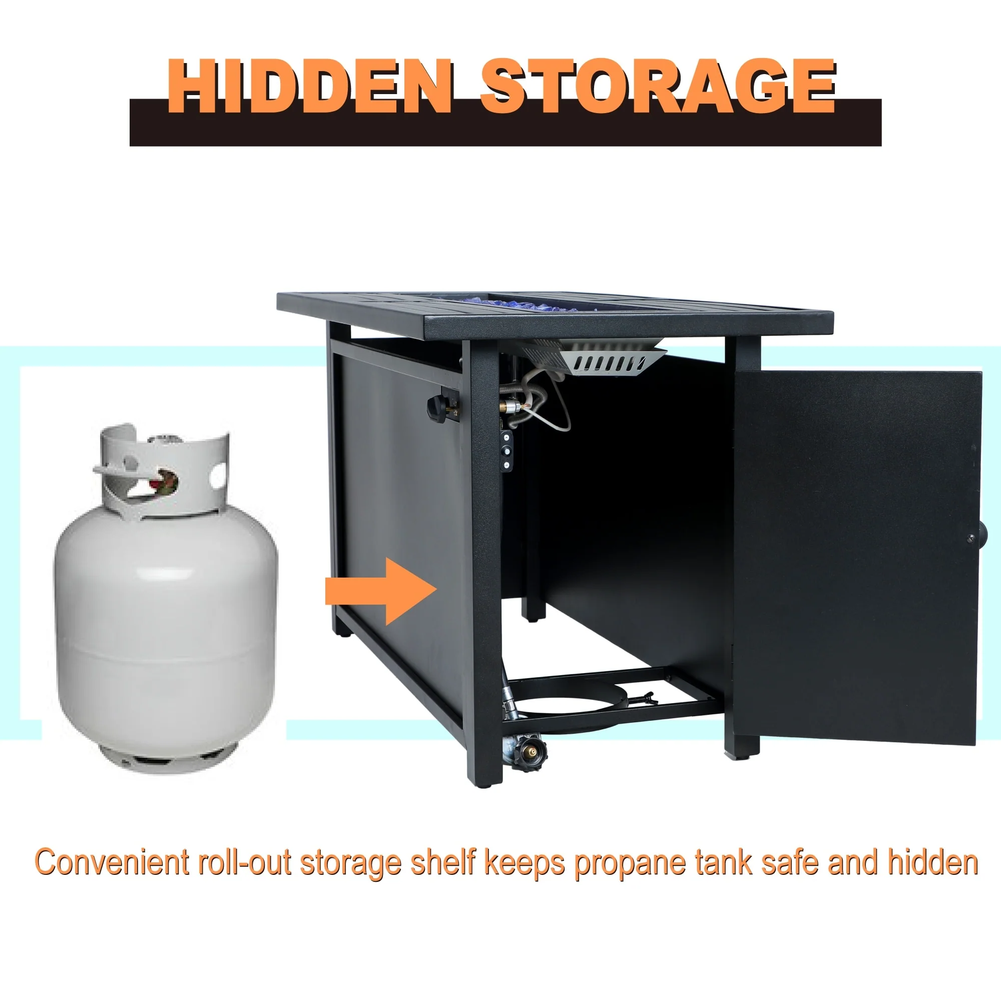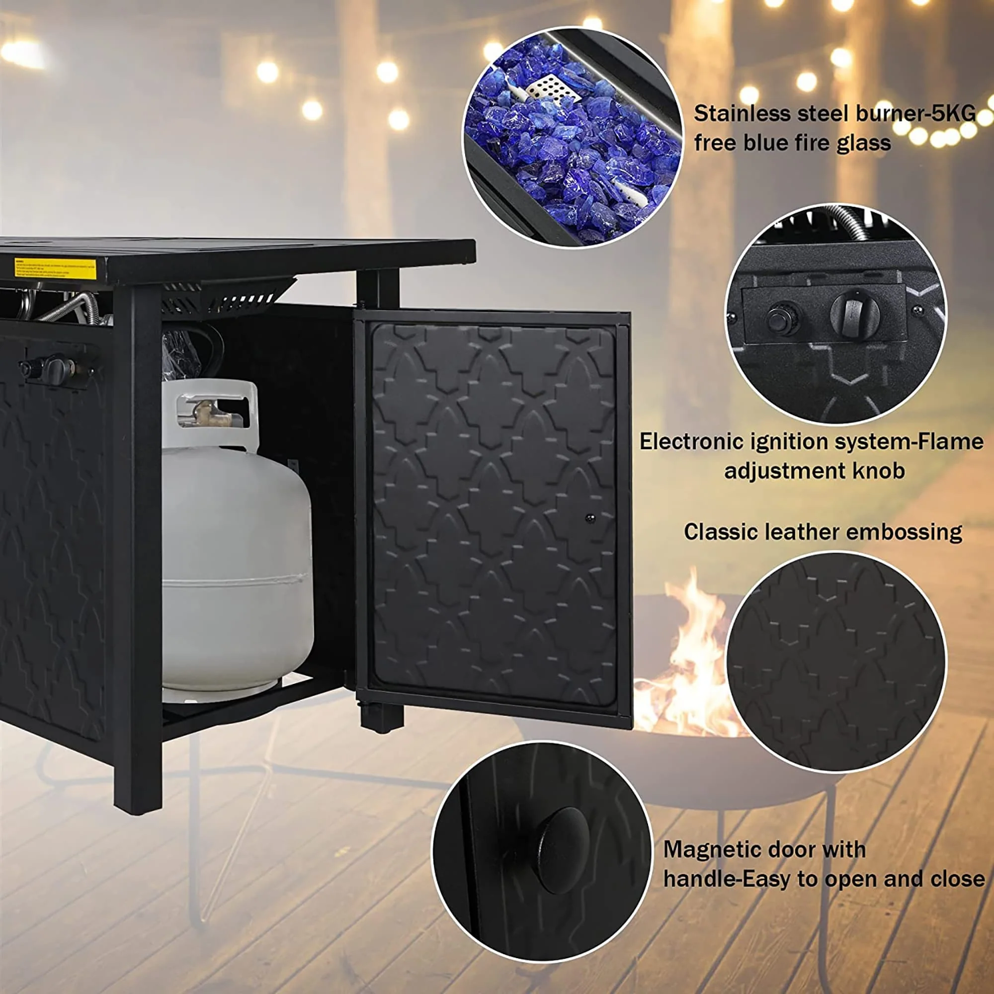 UPHA 56 Inch Outdoor 50,000 BTU Iron Propane Fire Pit Table with Tank Cover and Lid - 56.1
