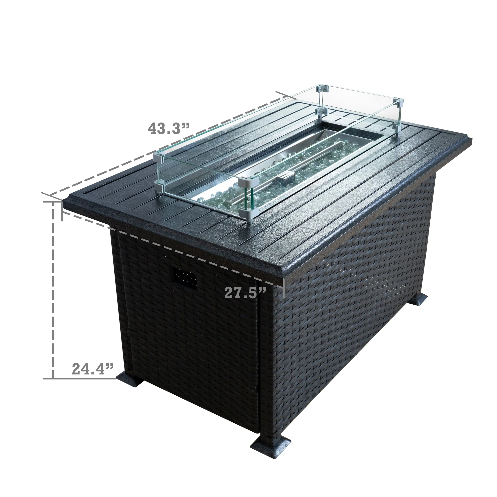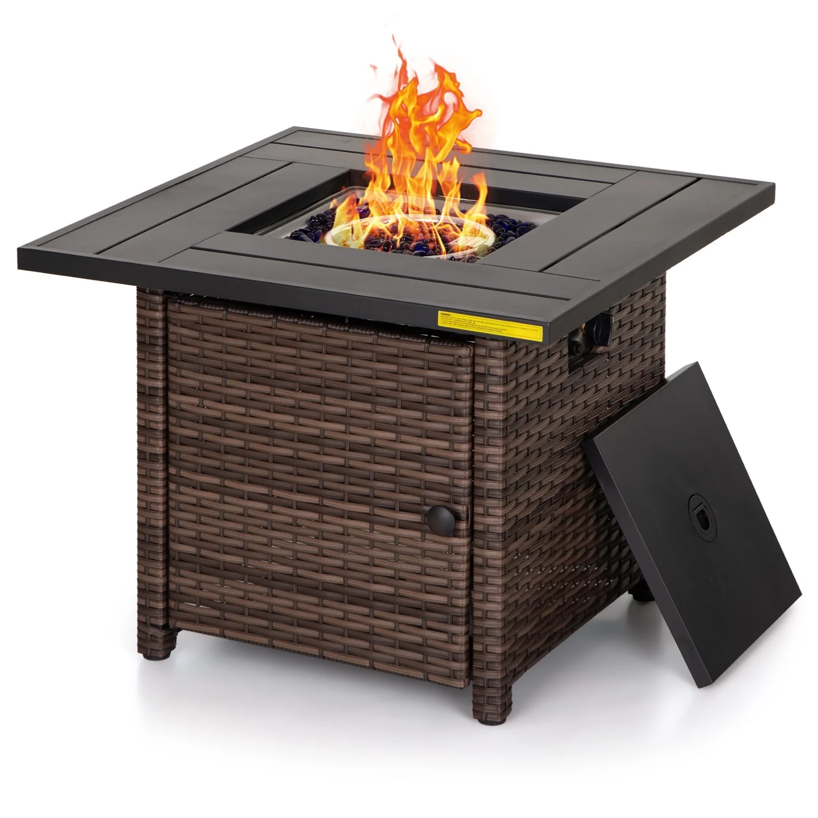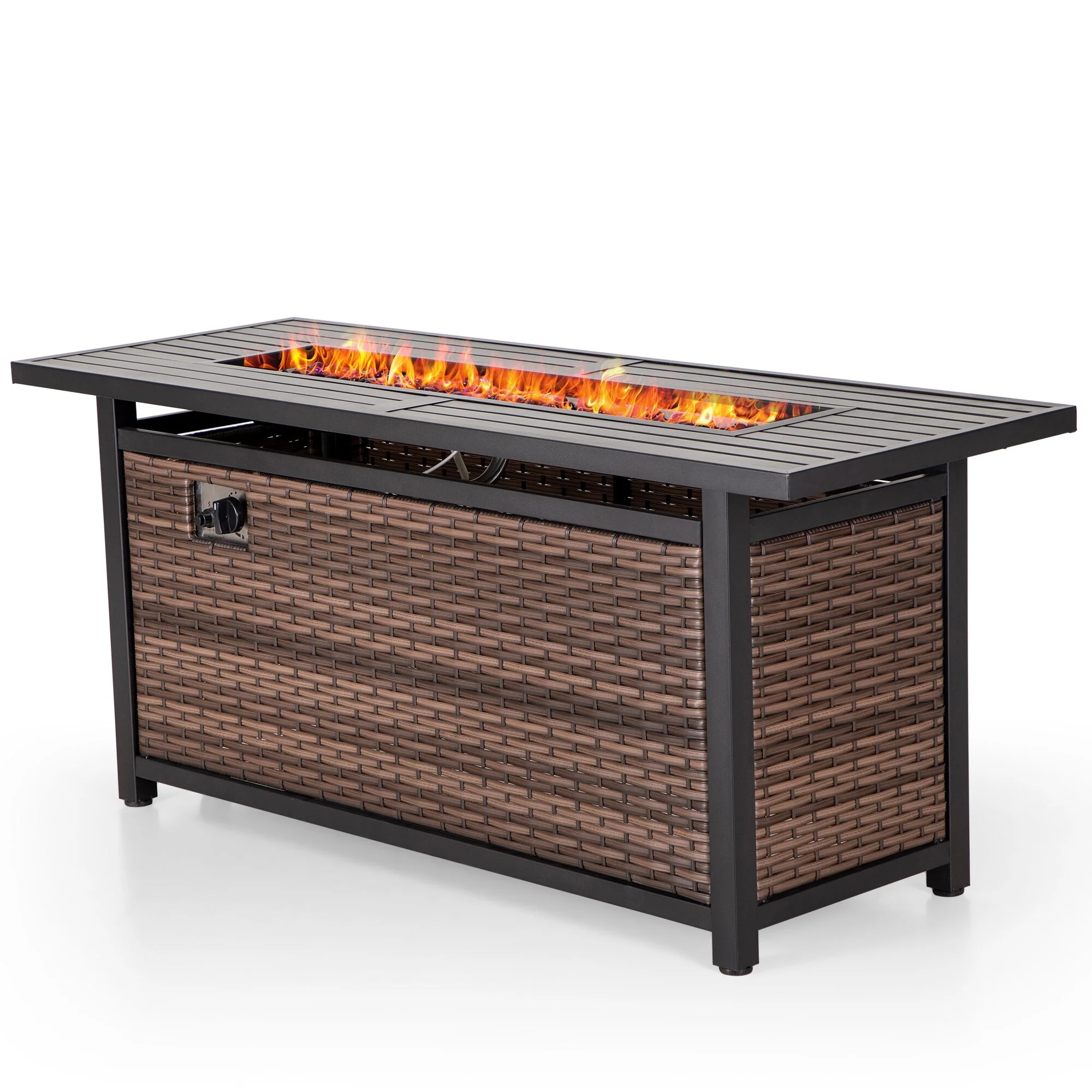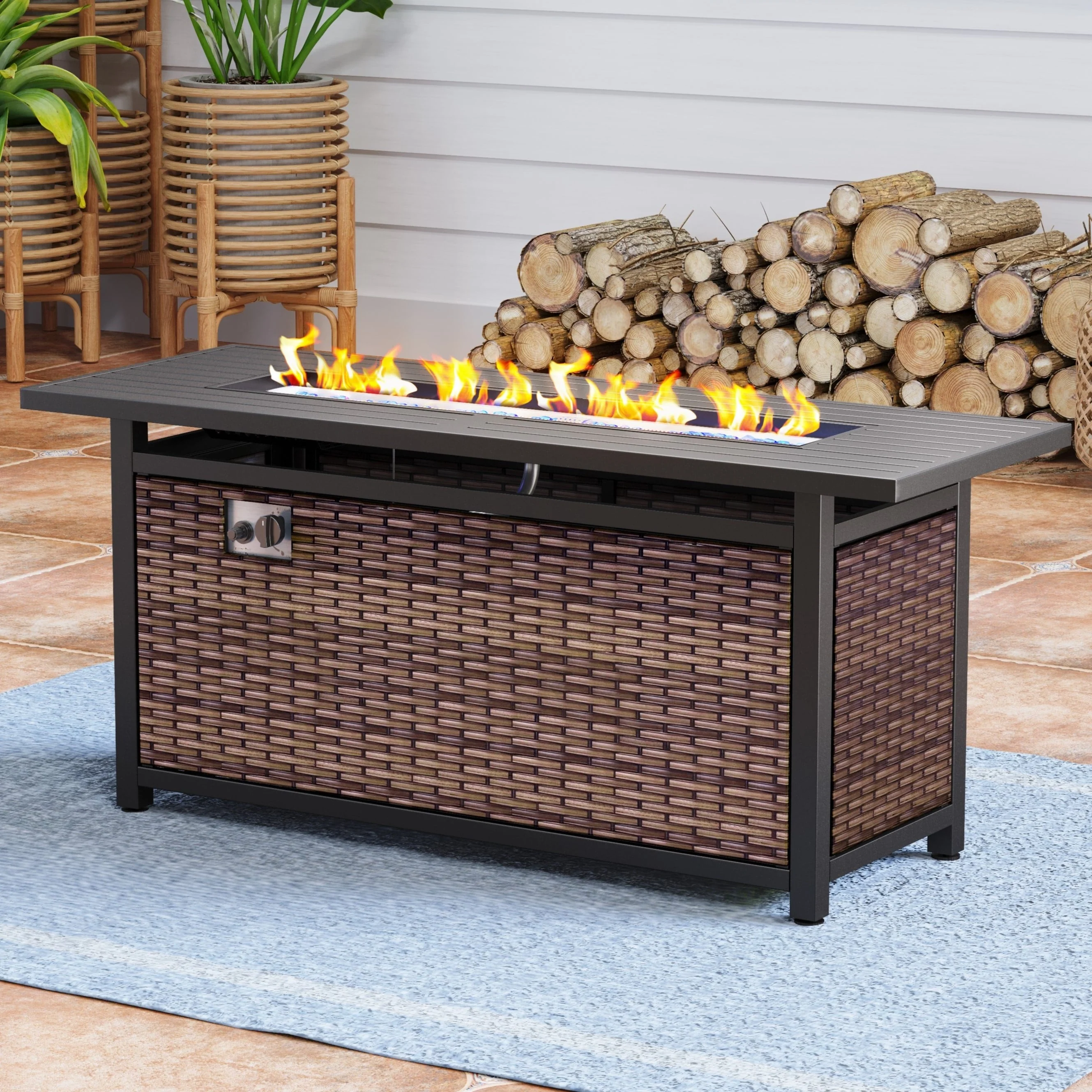 Outdoor Propane Fire Pit Table - 32/45/56 Inch, 50,000 BTU, Rattan/Black Finish, Includes Lid & Fire Glass