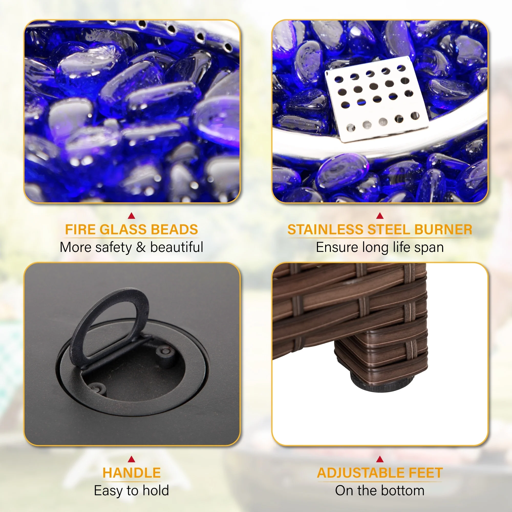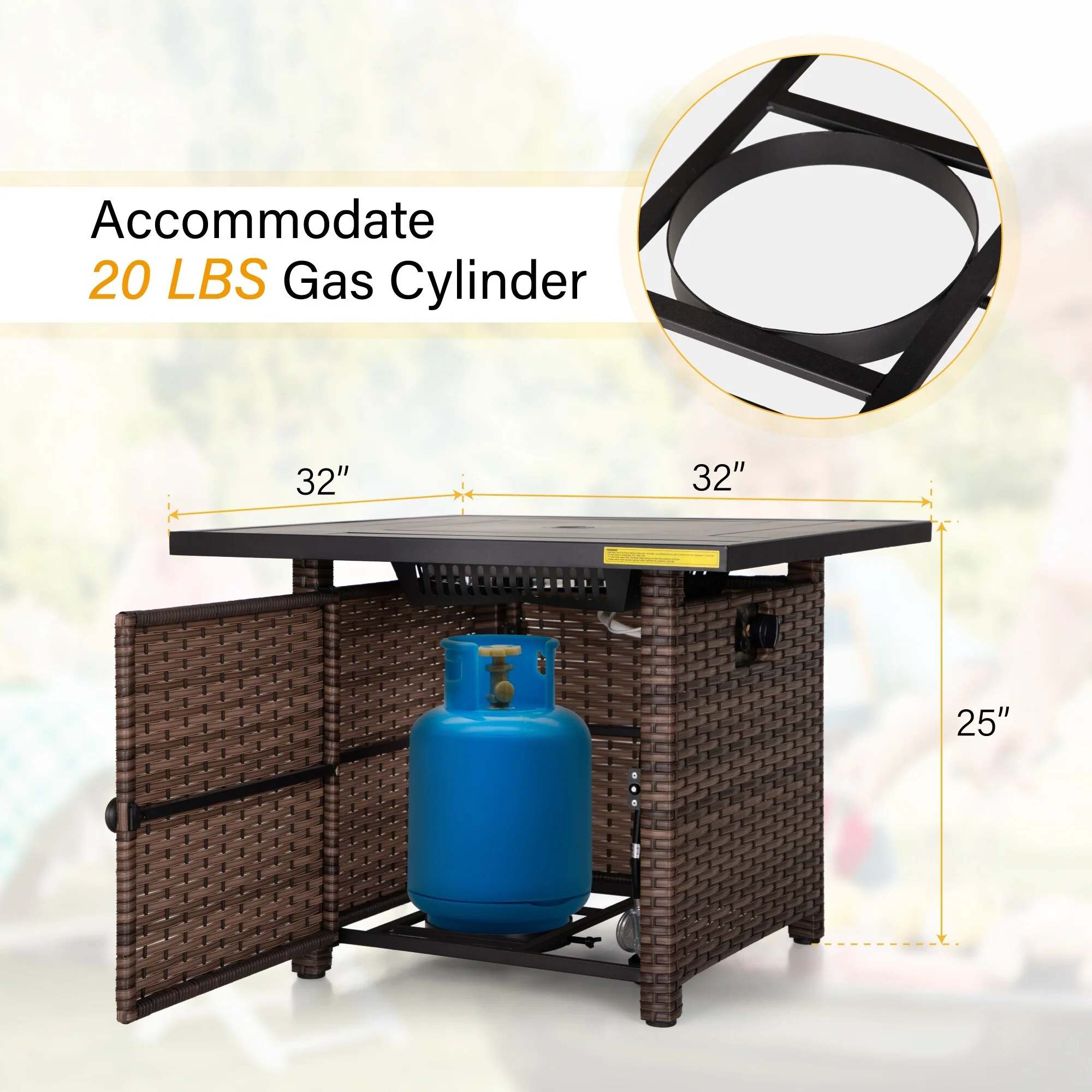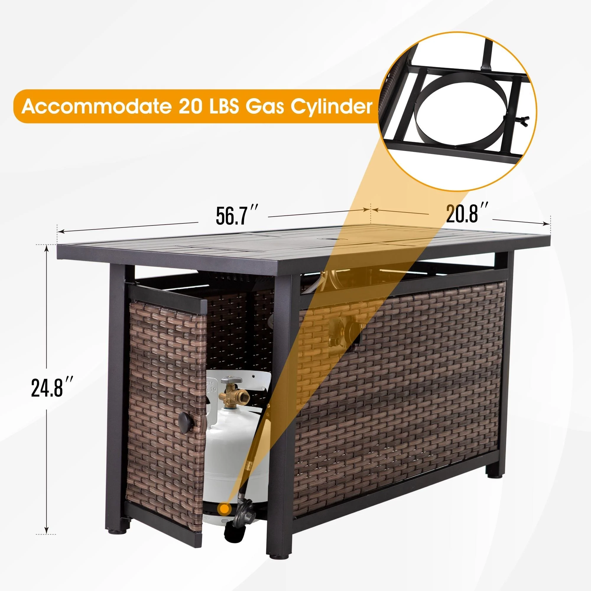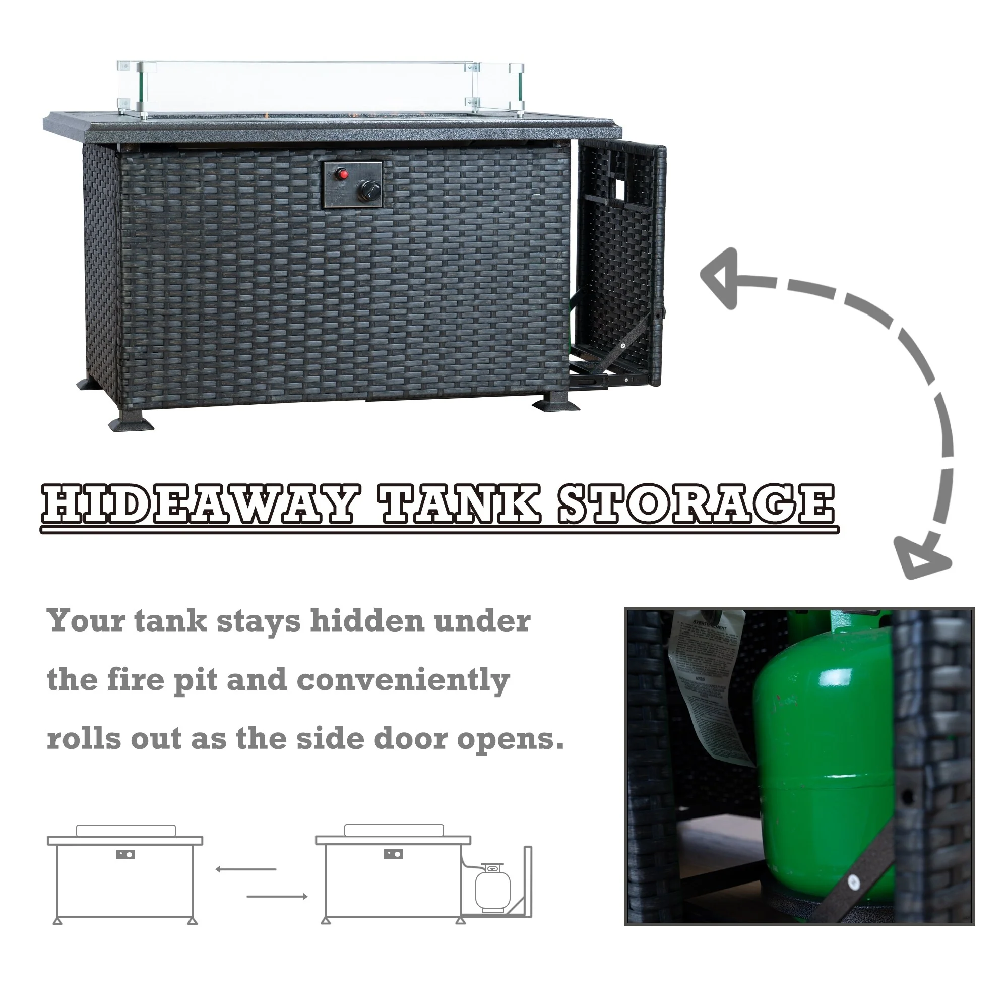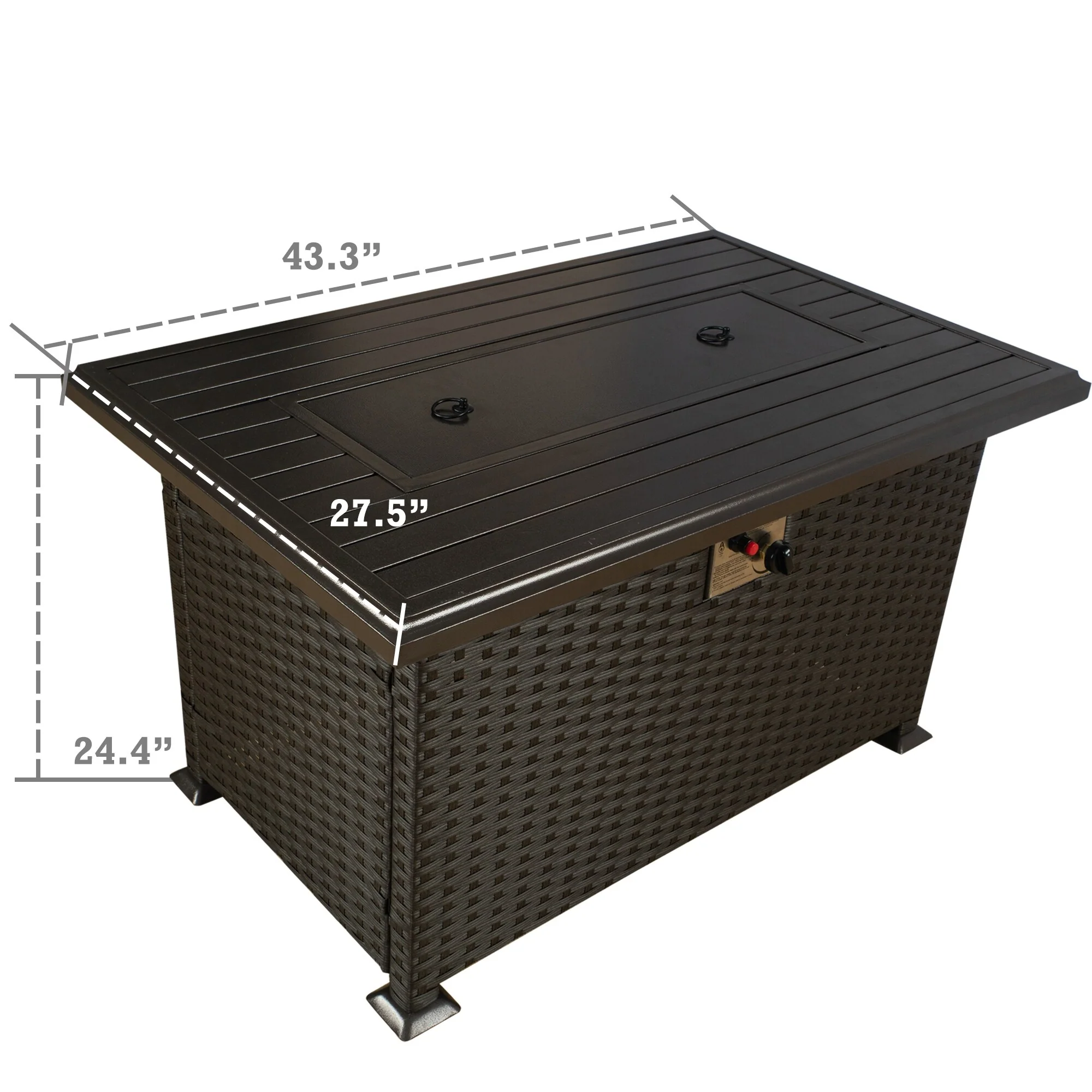 Outdoor Propane Fire Pit Table - 32/45/56 Inch, 50,000 BTU, Rattan/Black Finish, Includes Lid & Fire Glass