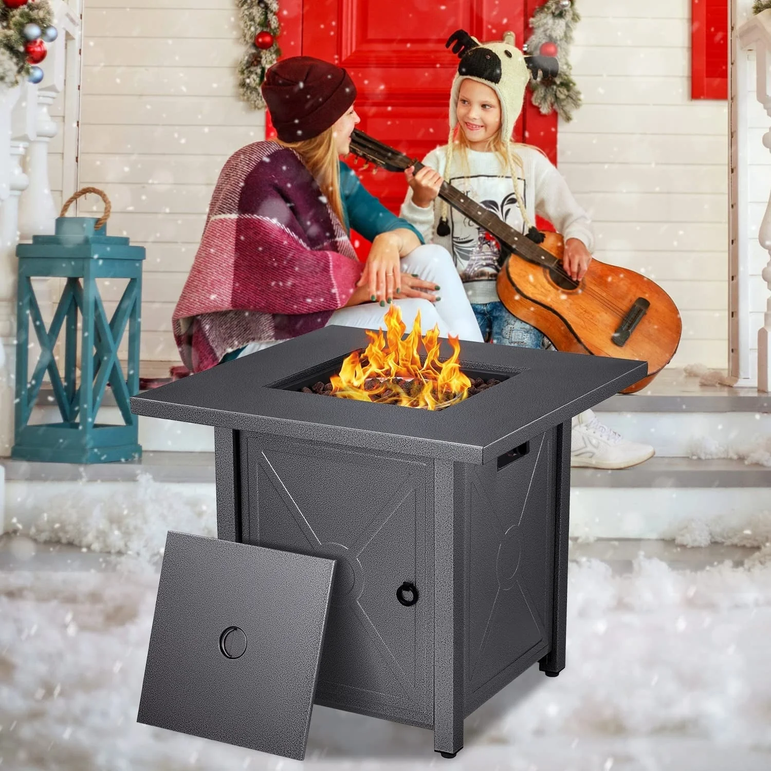 Fire Pit for Outside 28in Square Metal Firepits Stove - Propane Fire Pit Table with Lava Rocks