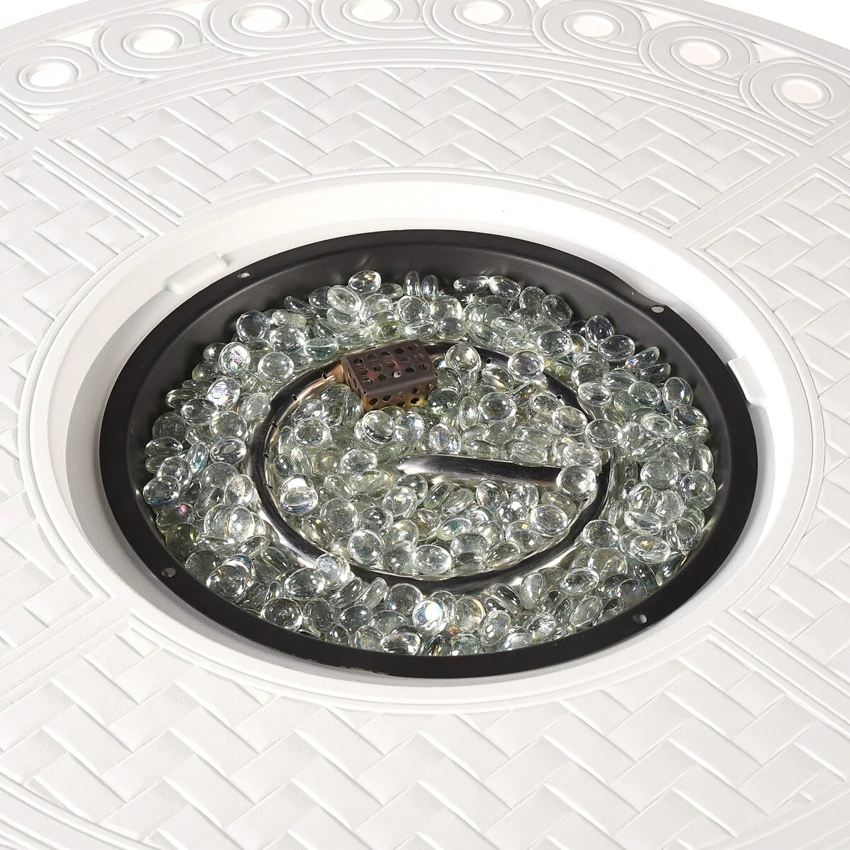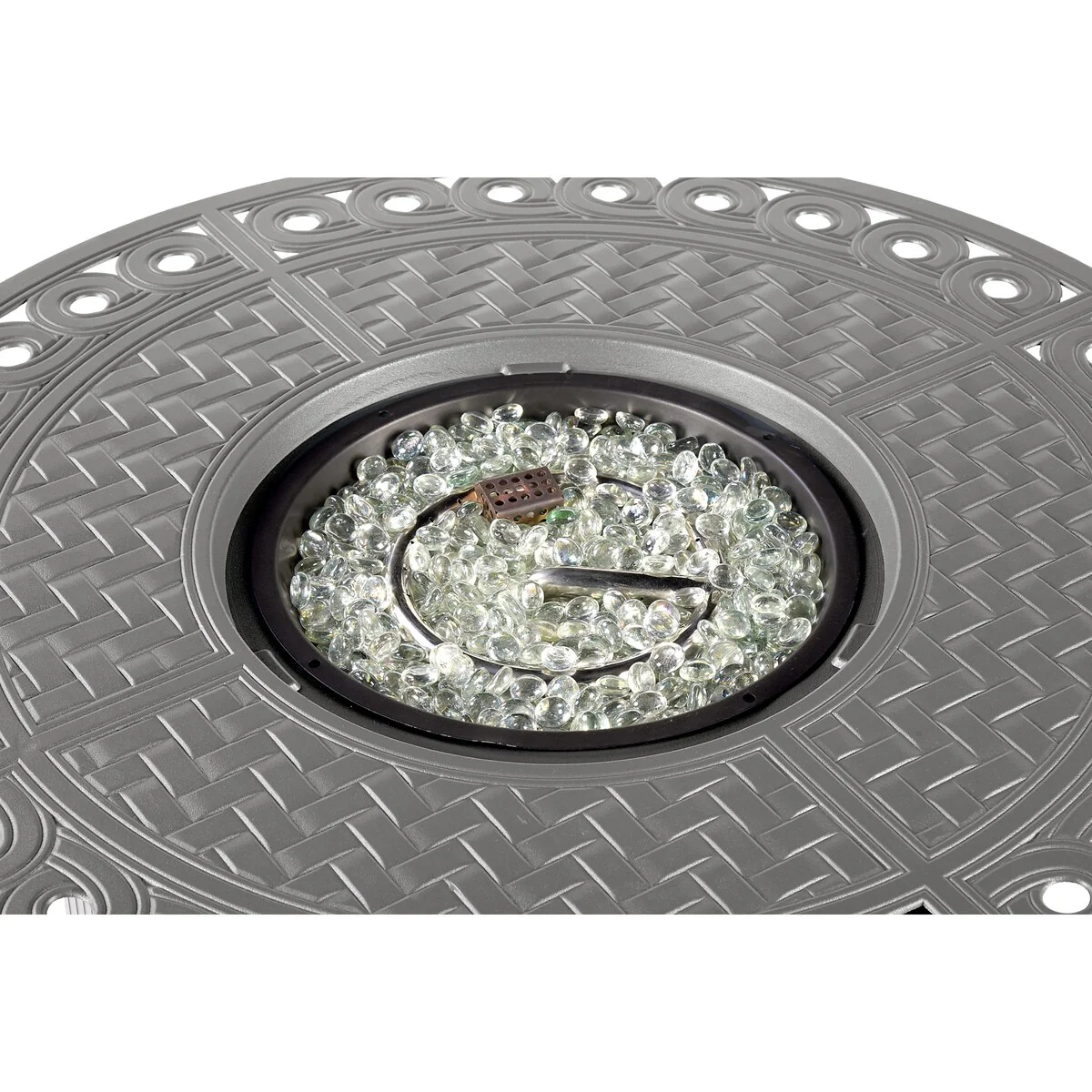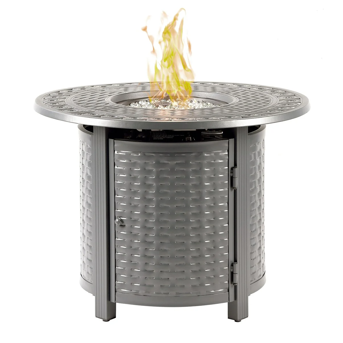 Round 34 in. x 34 in. Aluminum Propane Fire Pit Table with Glass Beads, Two Covers, Lid, 37,000 BTUs - N/A