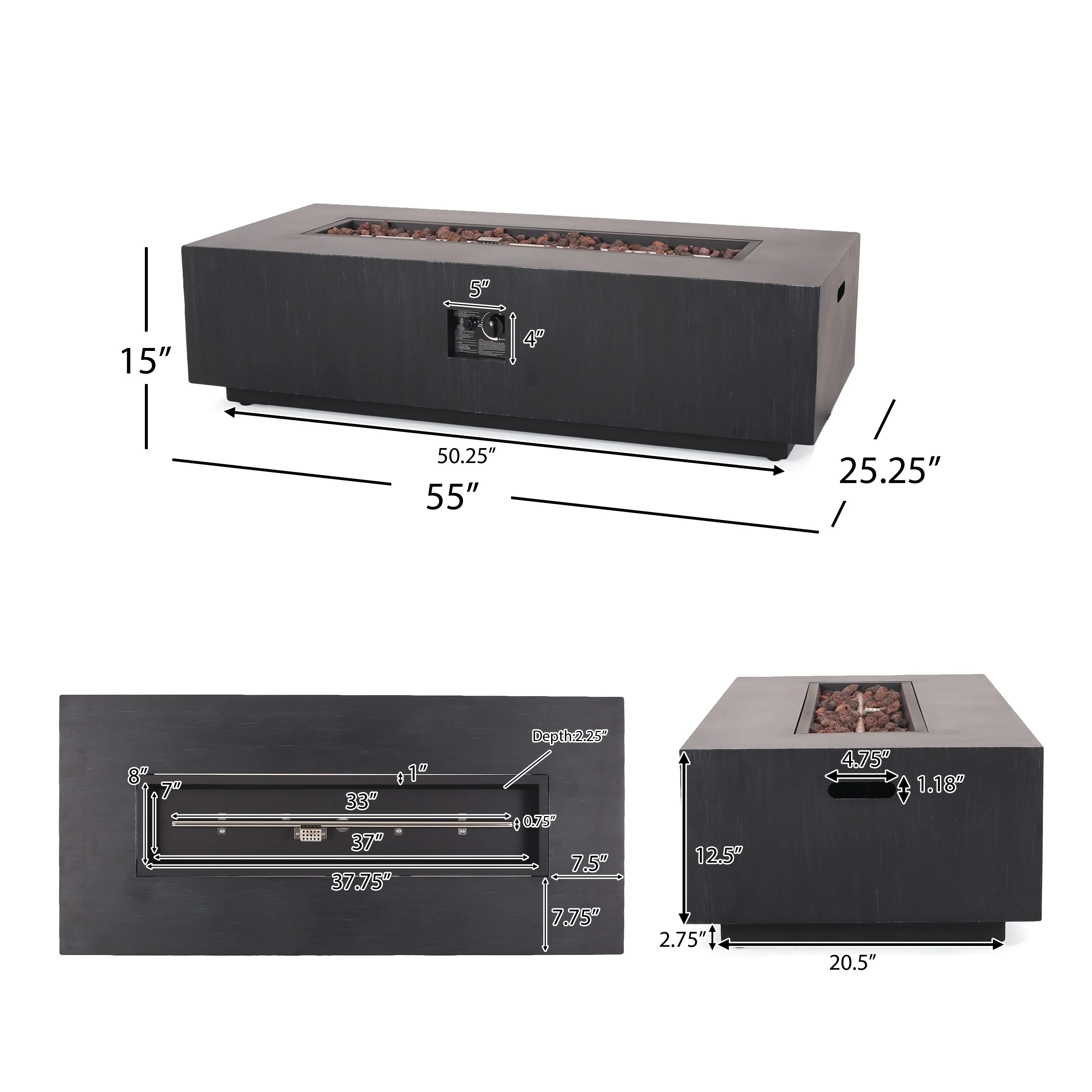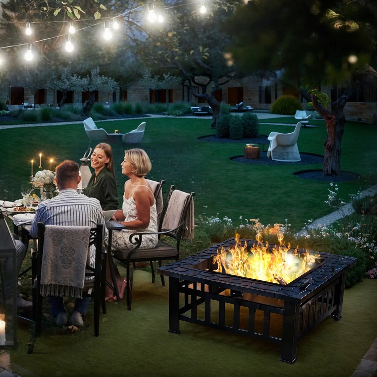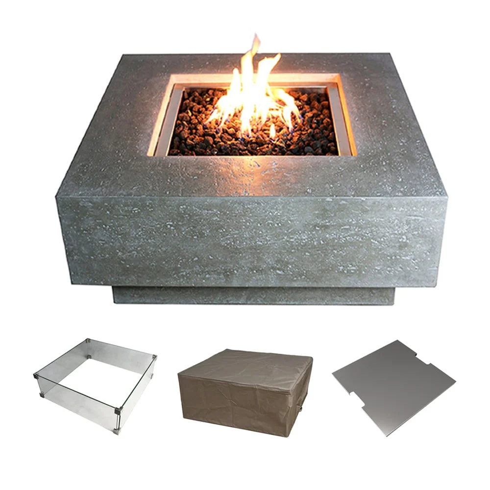 Elementi Manhattan Fire Pit Bundle Outdoor Firepit Set - 36�� L x 36�� W x 16�� H