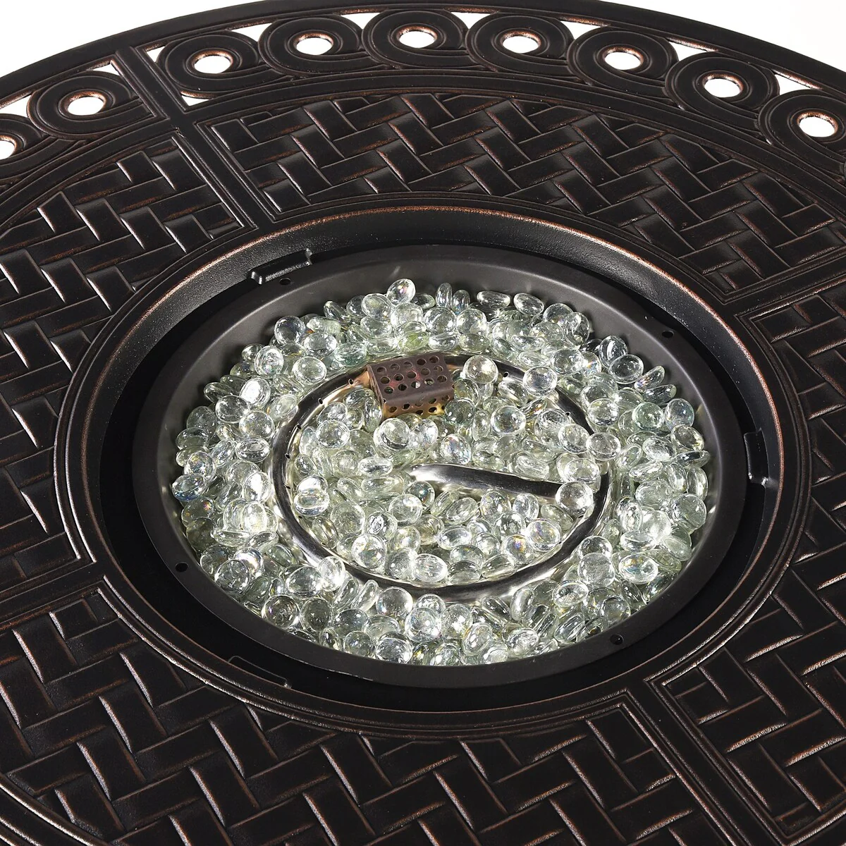 Hiland Brown and Goldtone Aluminum Glass Bead 48-inch Round Firepit