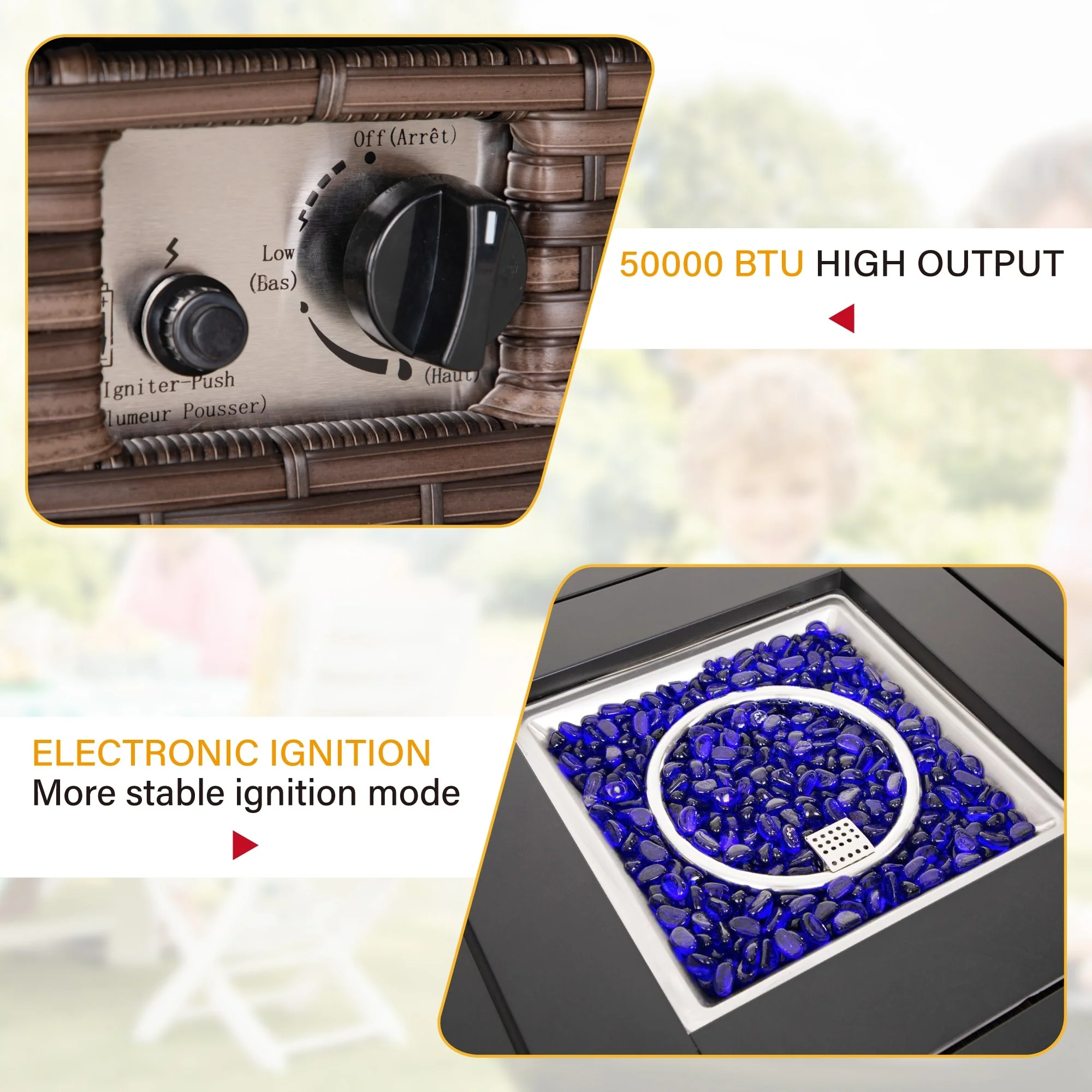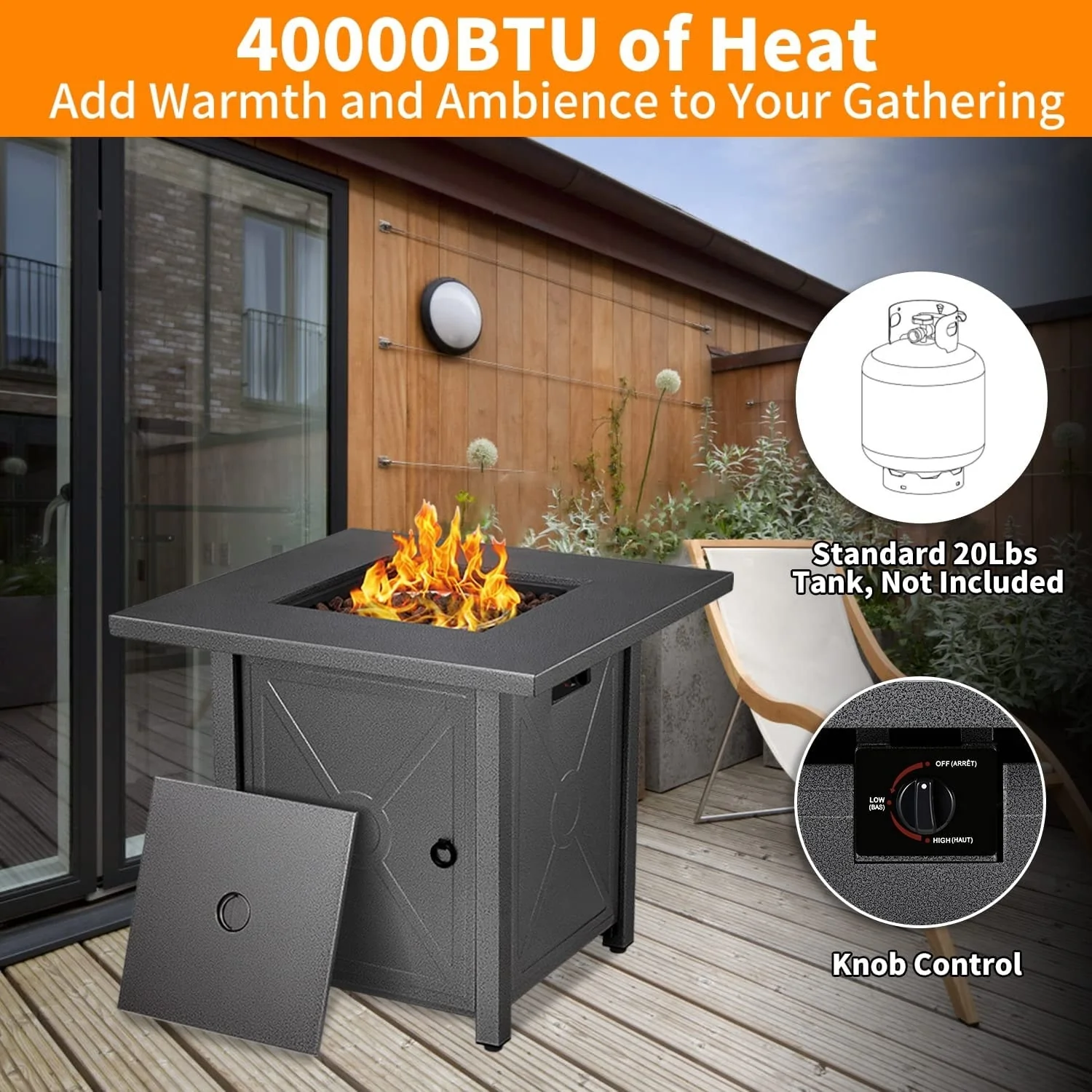70 in Large Fire Pit Table With 60000 BTU/19kW Heat Output