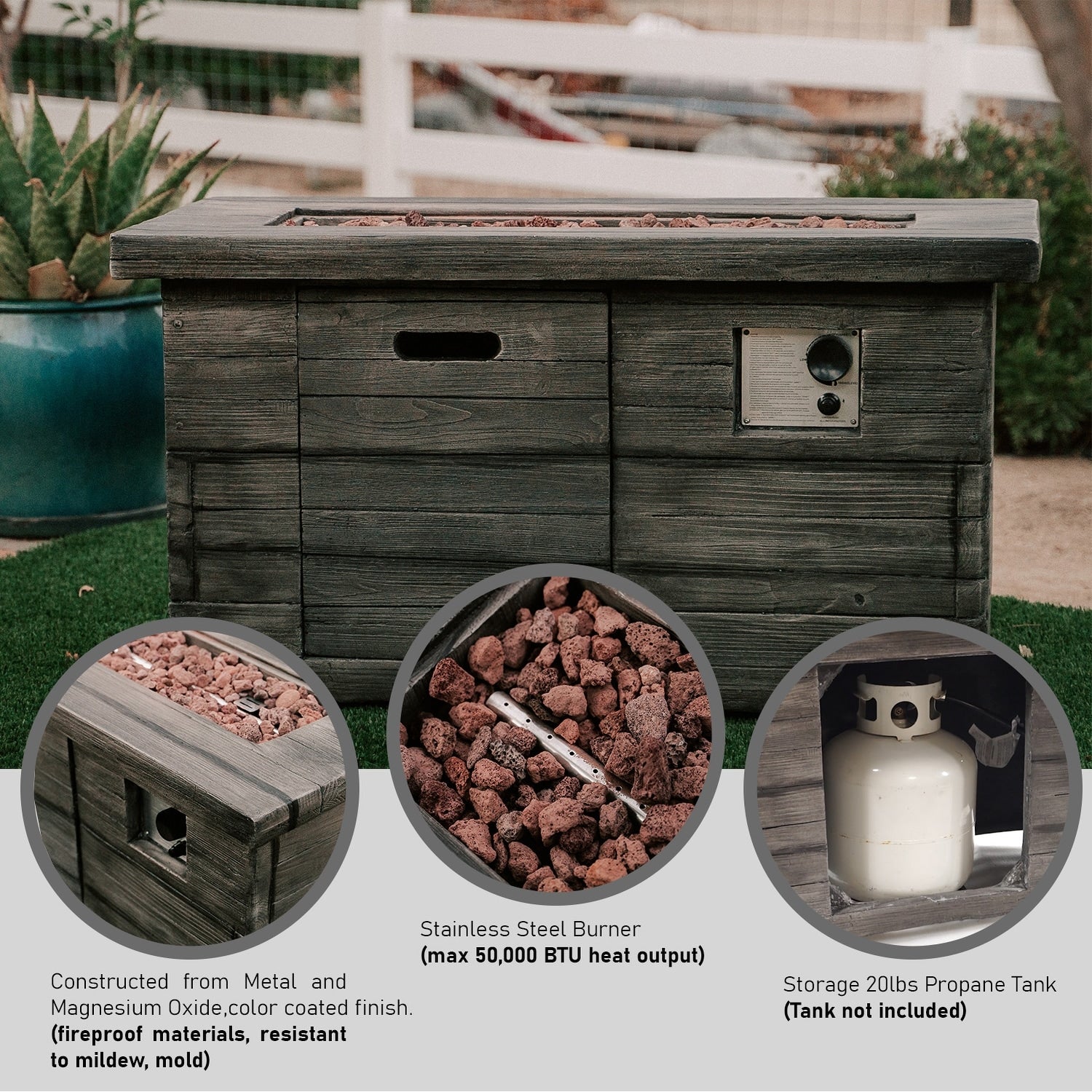 54inch Outdoor Fire Table Steel Fire Pit Table with Wood Grain Surface