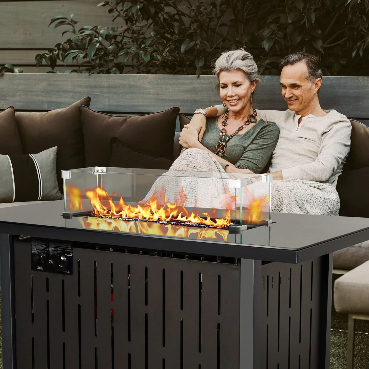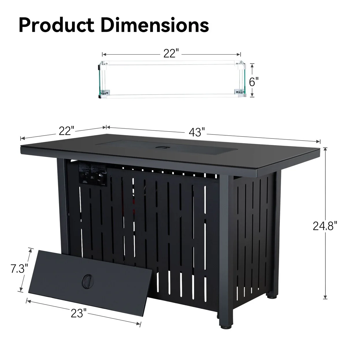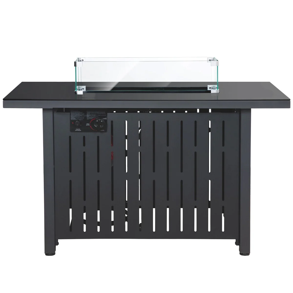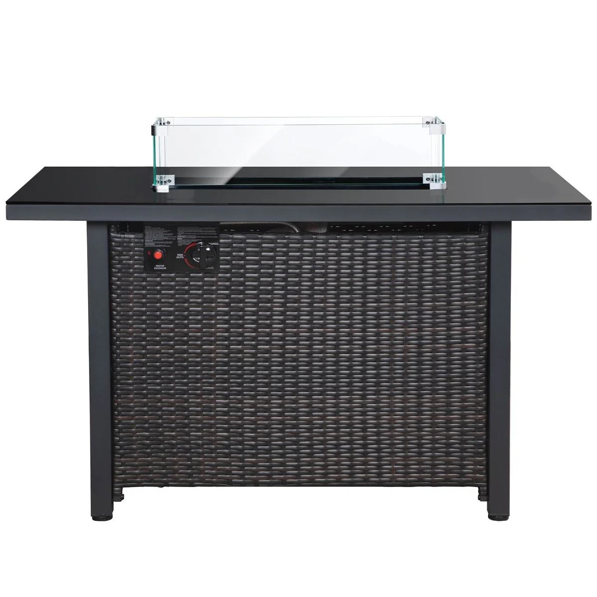 43 in. W x 24.8 in. H Outdoor Rectangular Propane Fire Pit Table with Glass Wind Guard and Glass Rocks - N/A