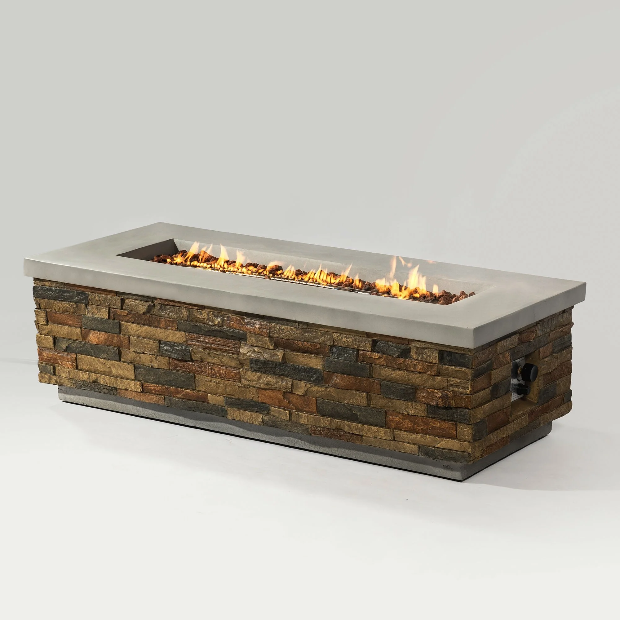 GDFStudio - Sullivan 60-Inch Rectangular Propane Fire Pit Table in Natural Stone Concrete Finish
