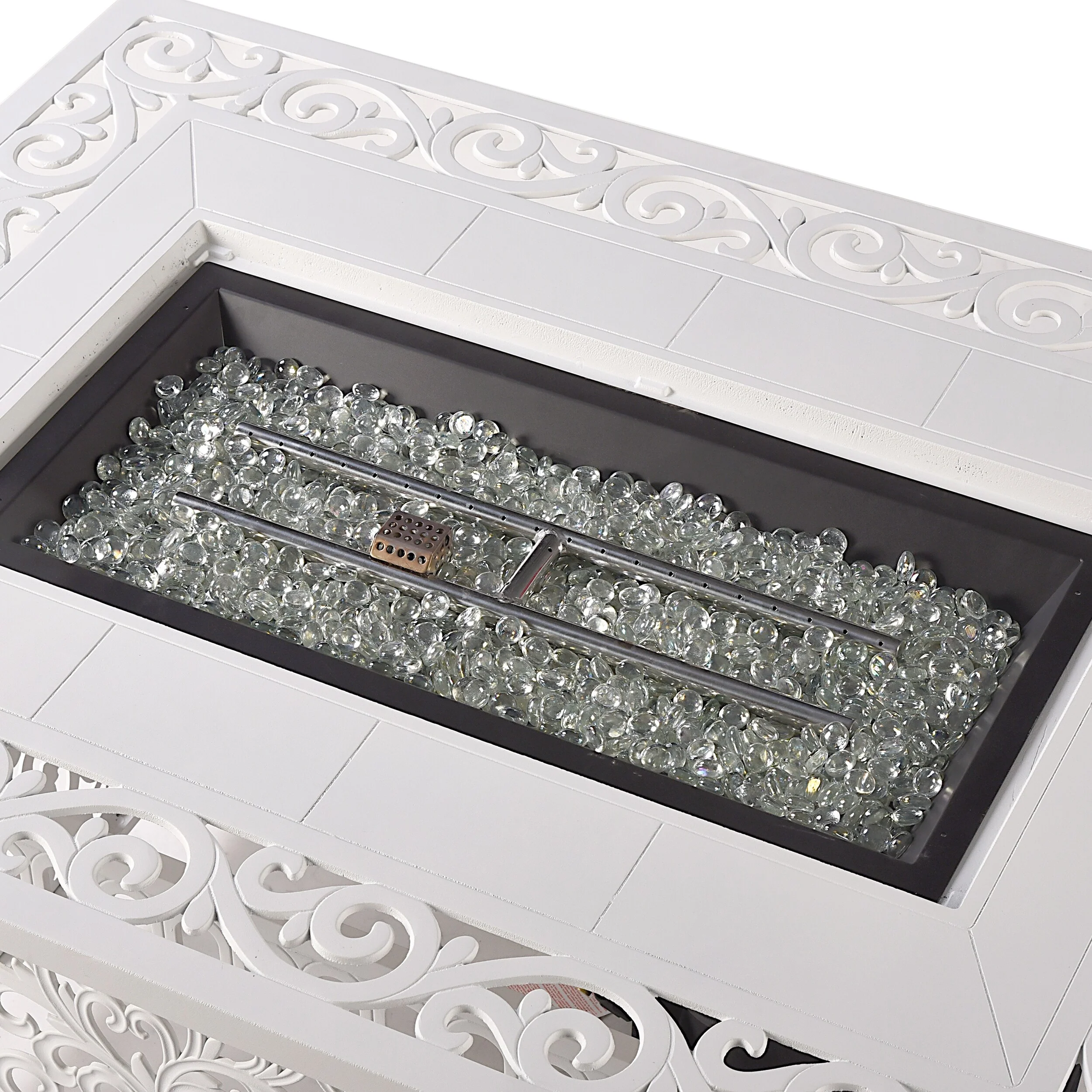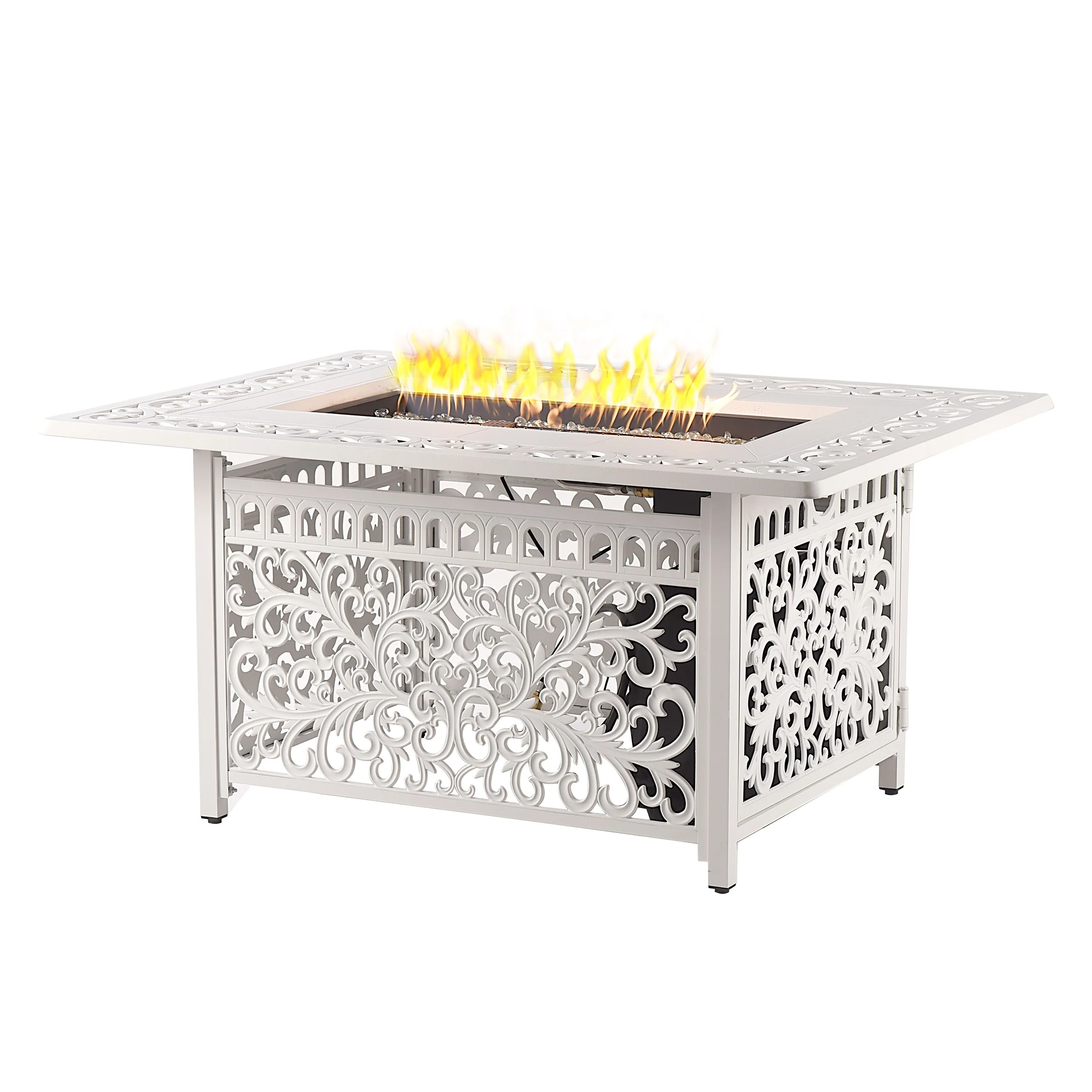 22 in. W x 54 in. D x 25 in. H Rectangle Propane Burning Outdoor Fire Pit Table in White