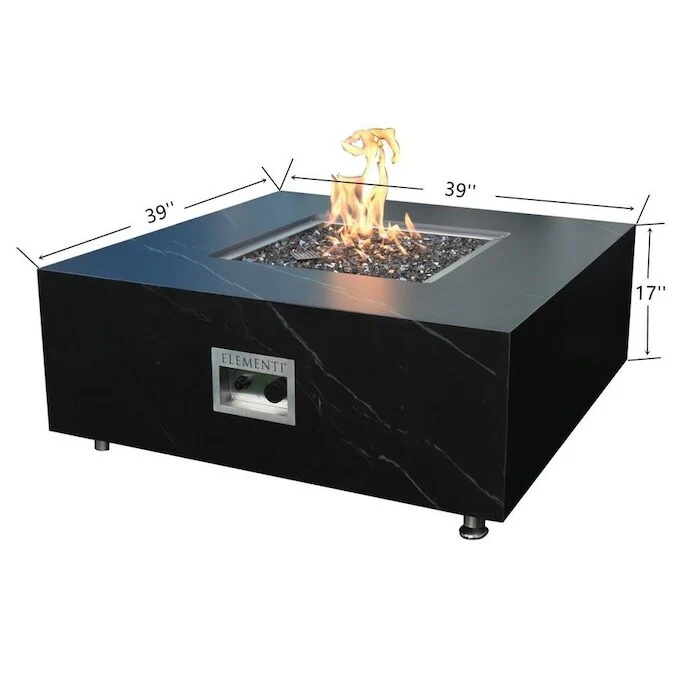 Elementi Sofia Outdoor Marble Porcelain Fire Pit 39" Square Patio Heater - Liquid Propane