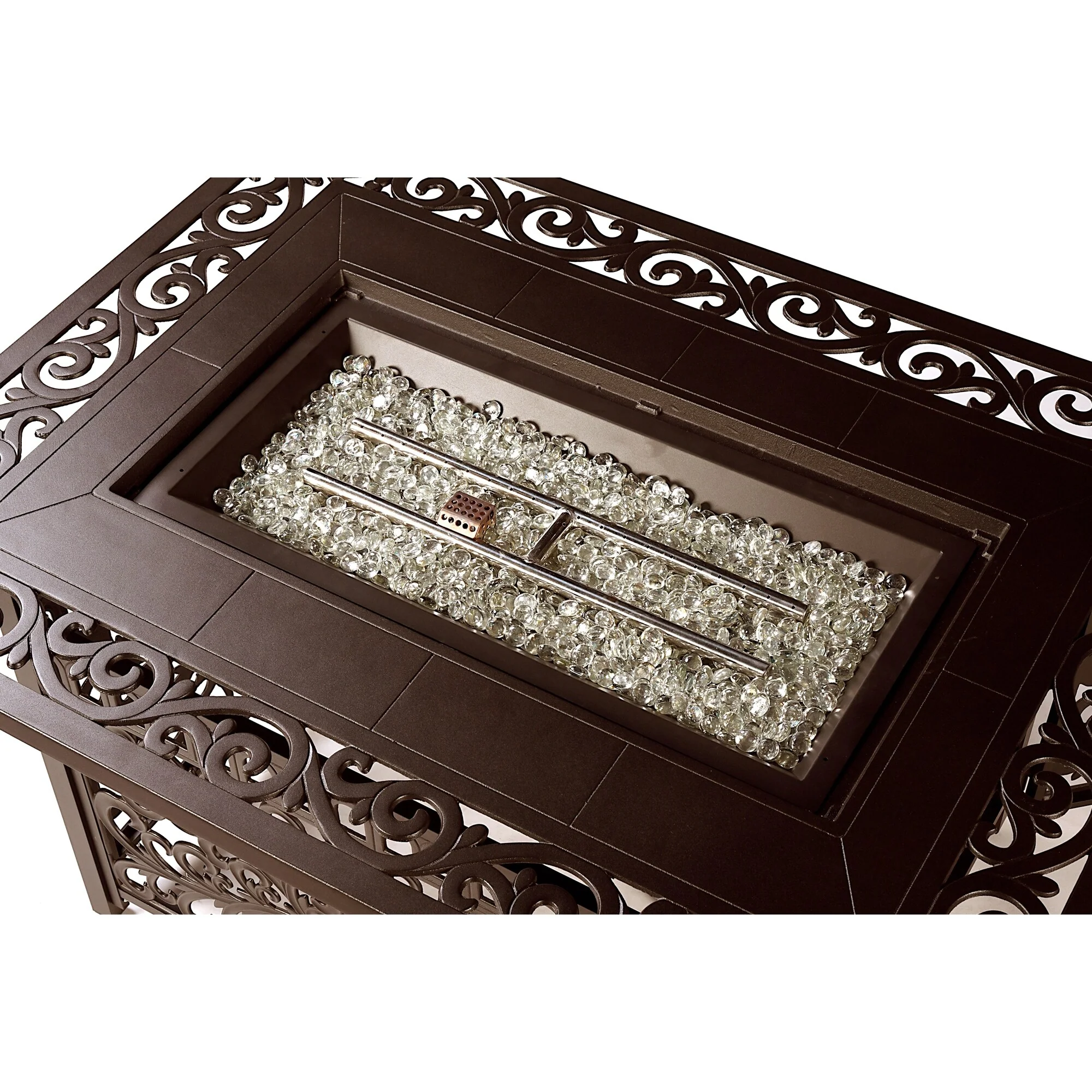 Rectangular 48 in. x 36 in. Aluminum Propane Fire Pit Table, Glass Beads, Two Covers, Lid, 57,000 BTUs - N/A