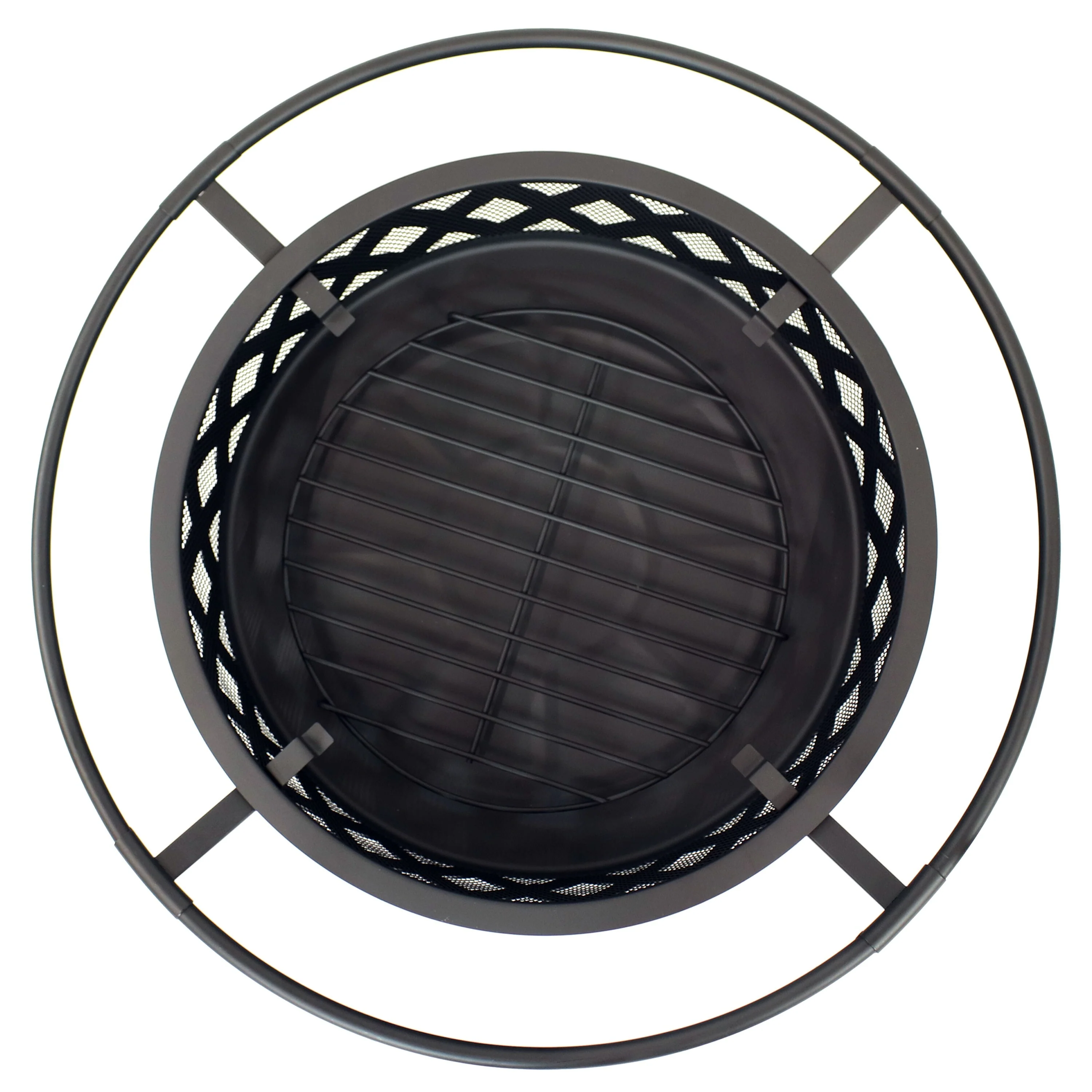 Black Crossweave Wood Fire Pit with Cover, Spark Screen, Grate, and Poker - 30"