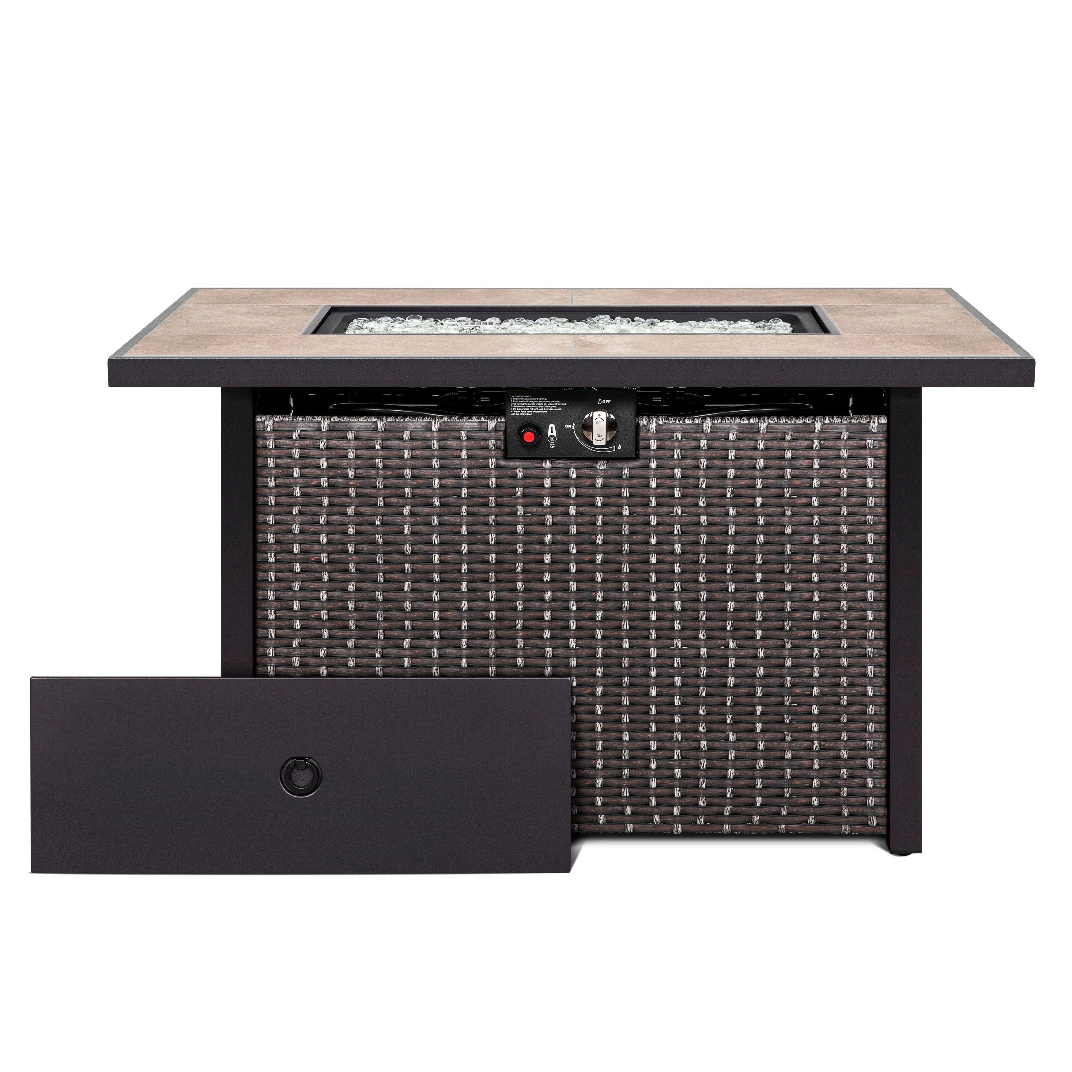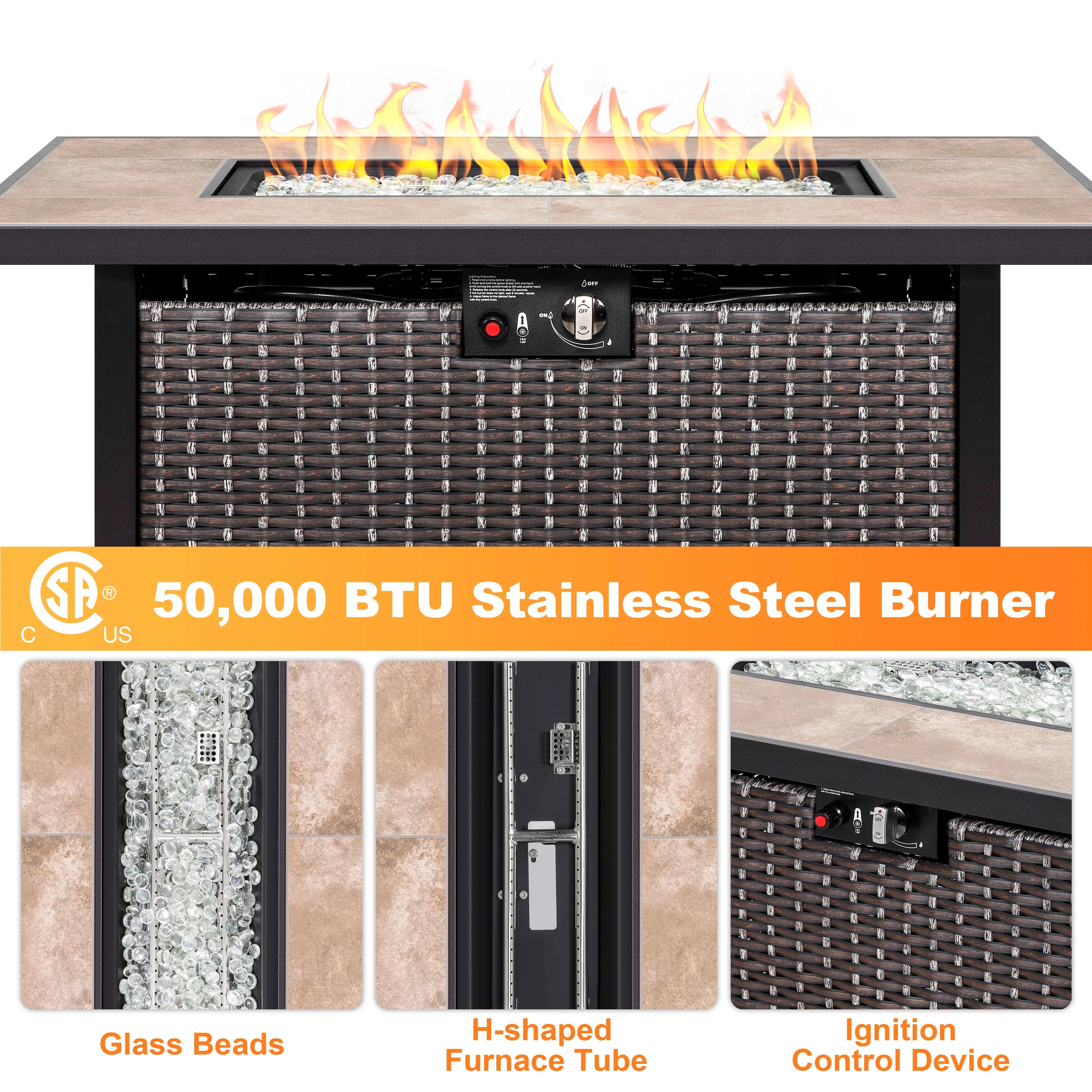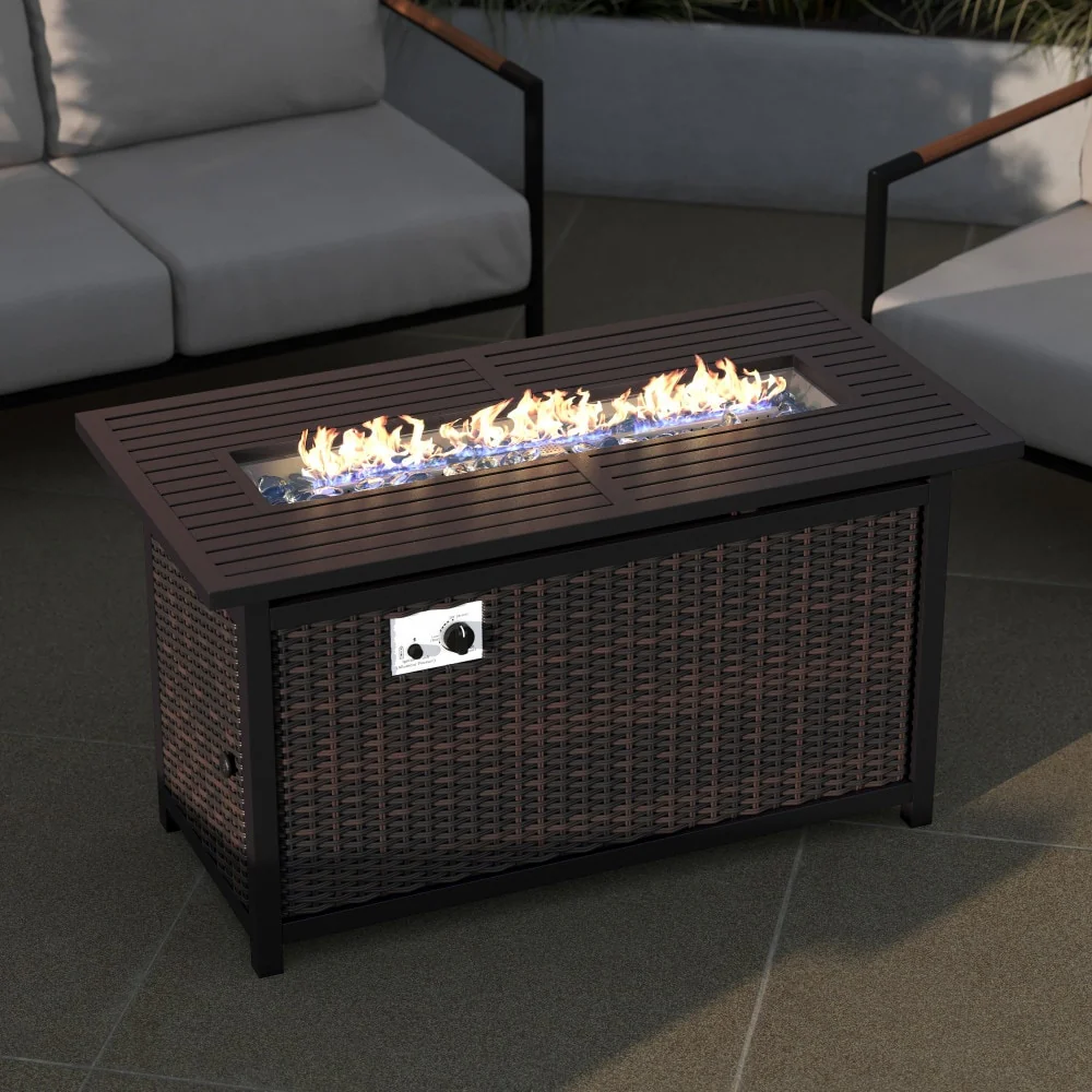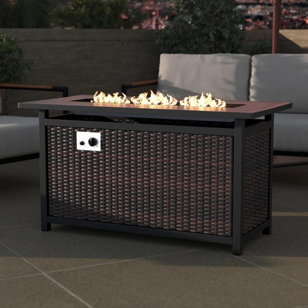 Nuu Garden Outdoor 43-inch 50,000 BTU Propane Gas Fire Pit Table, Ceramic Tabletop and PE Rattan Weaved Iron Frame