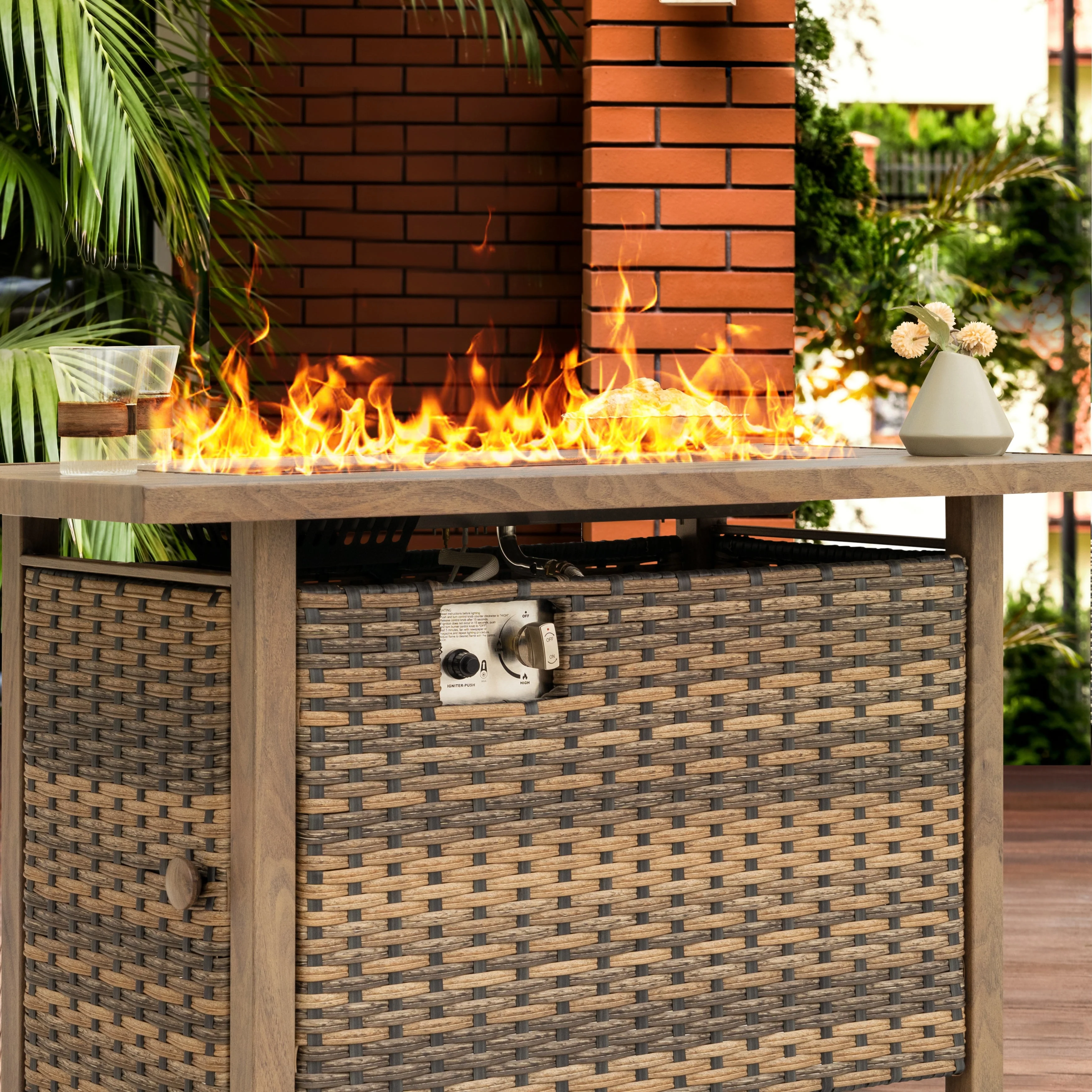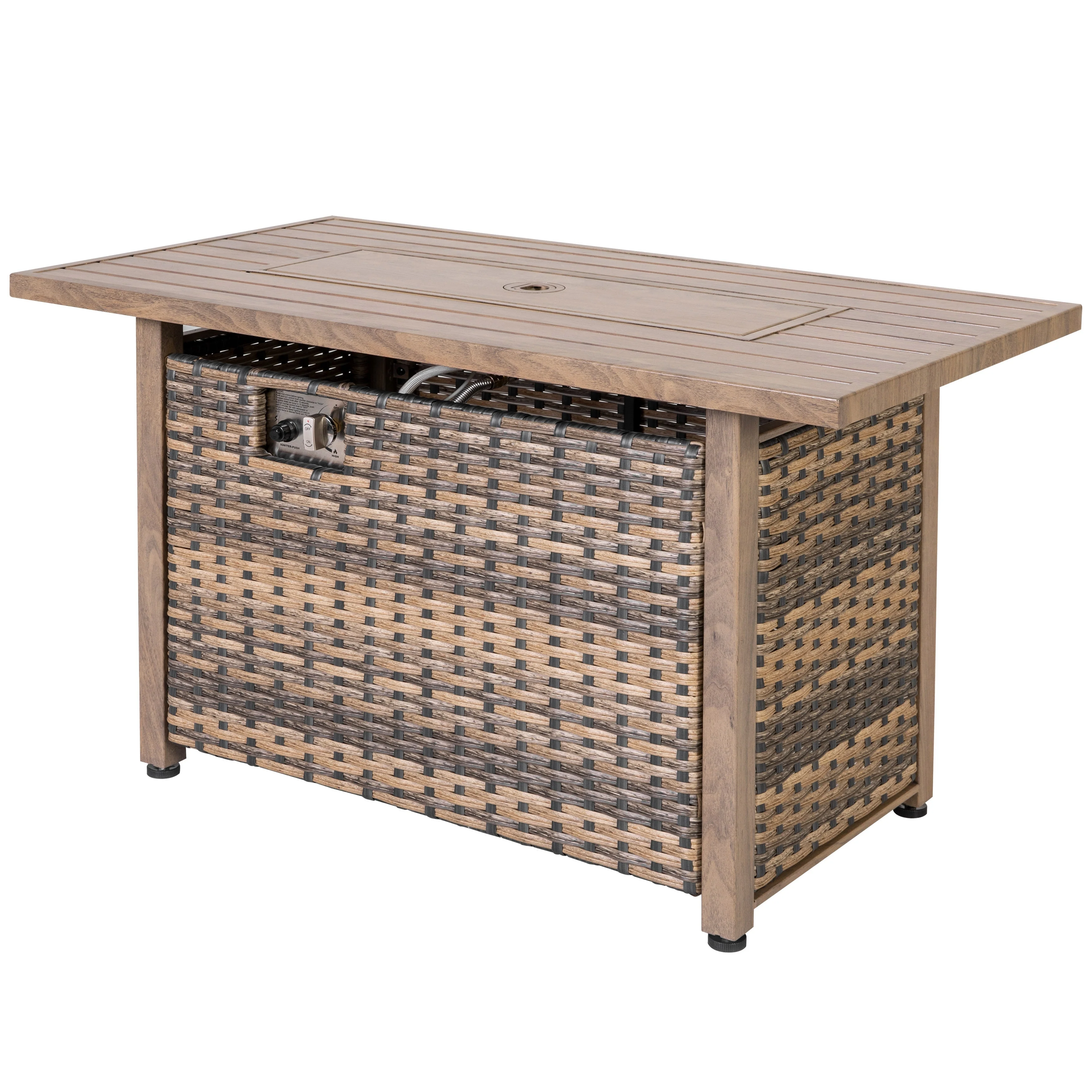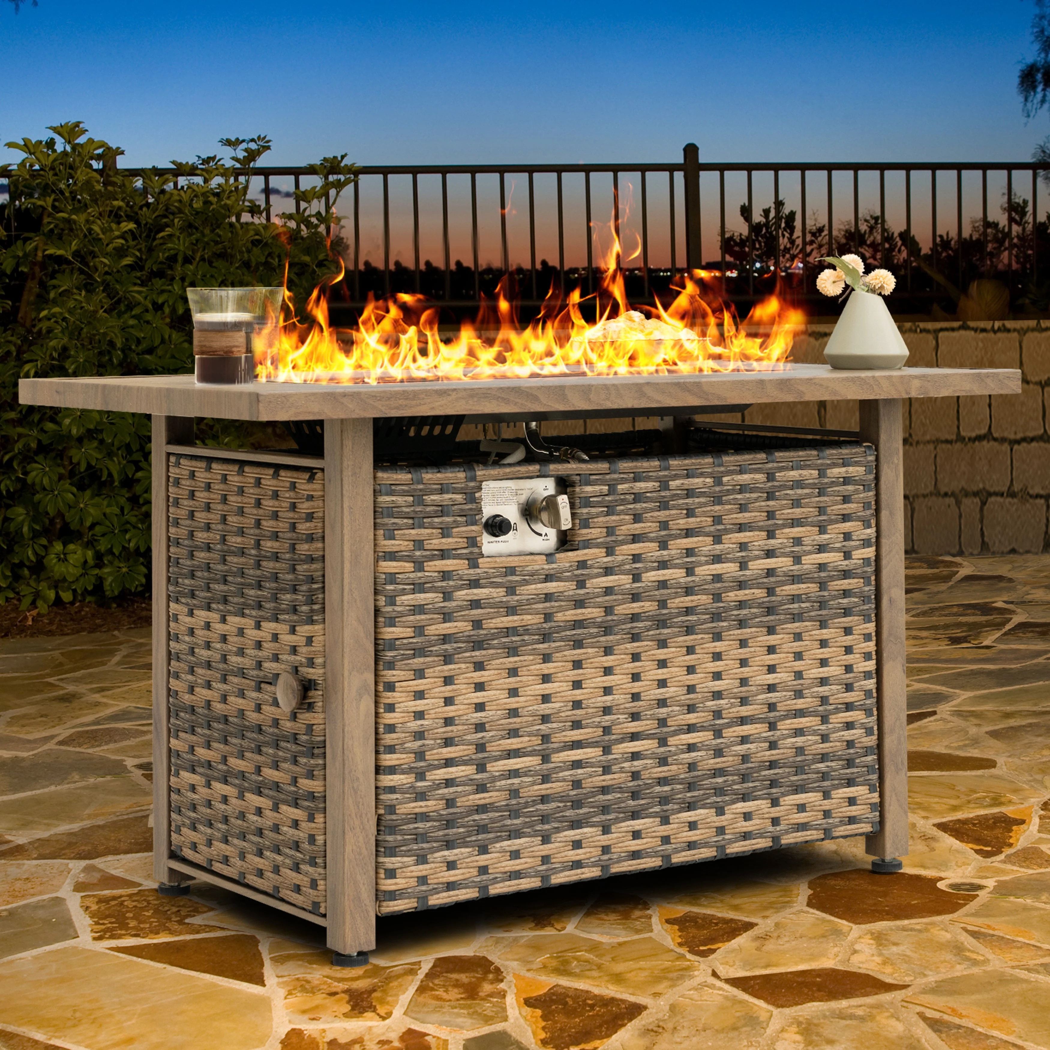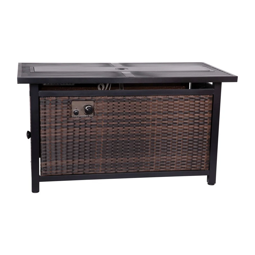 Outdoor 50,000 BTU Fire Table with Steel Top and Wicker Base