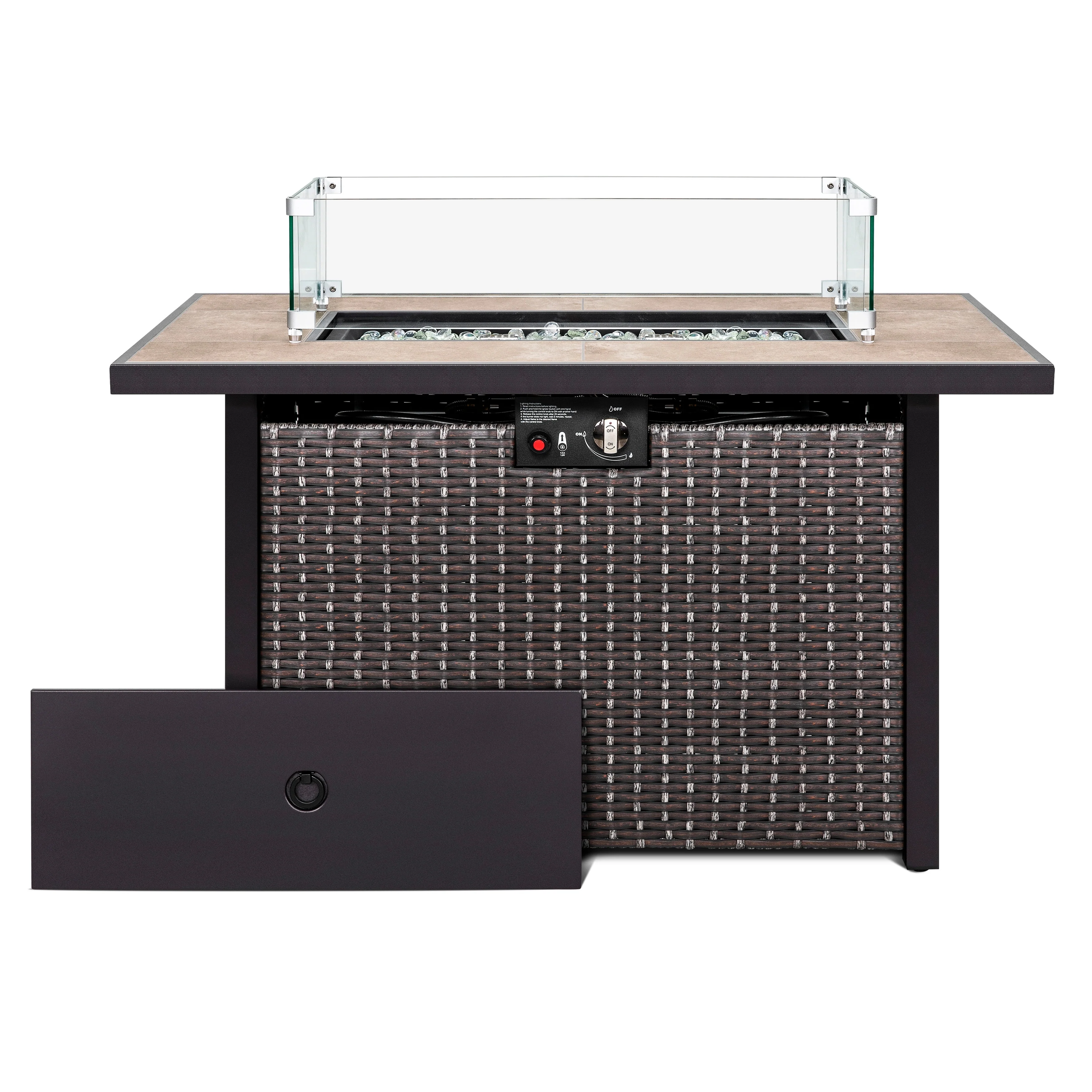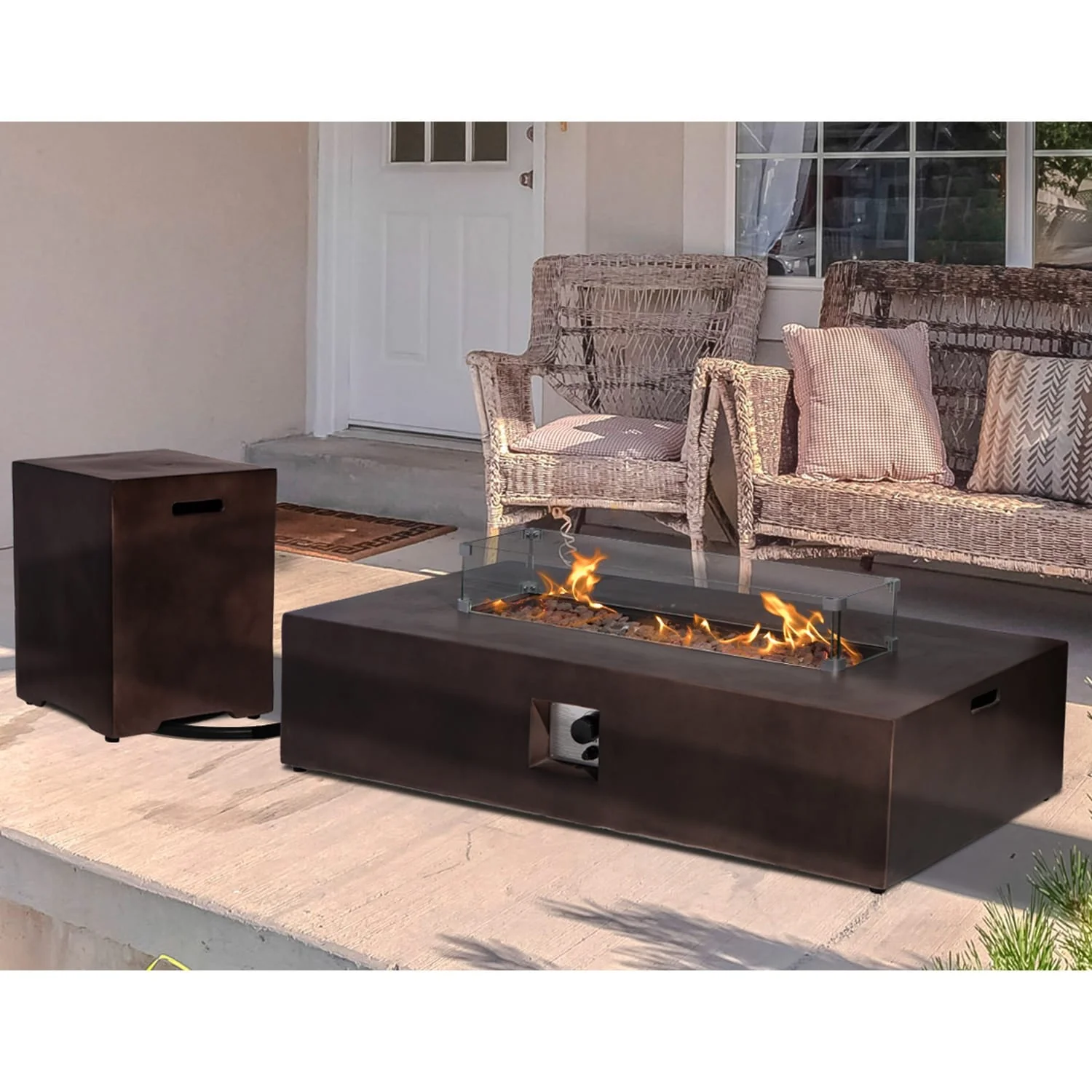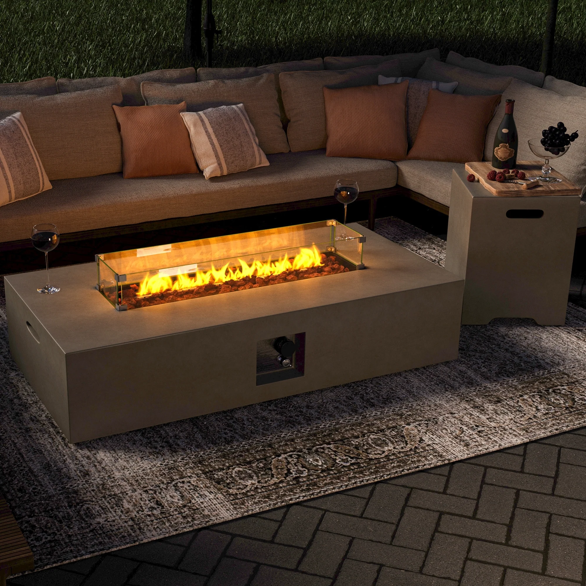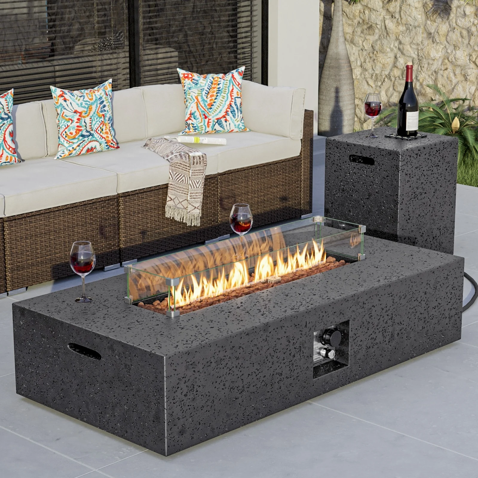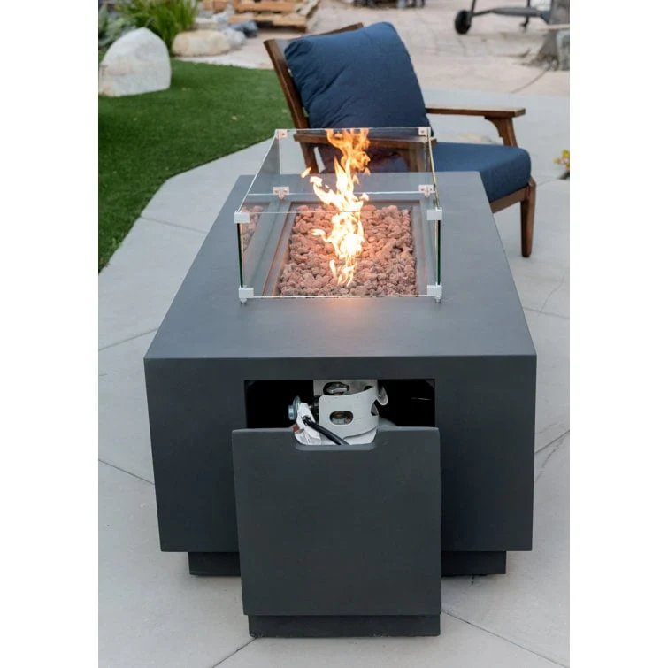 GDFStudio - Mason Combo Outdoor Rectangular Propane Fire Table with Wind Guard and External Tank Holder