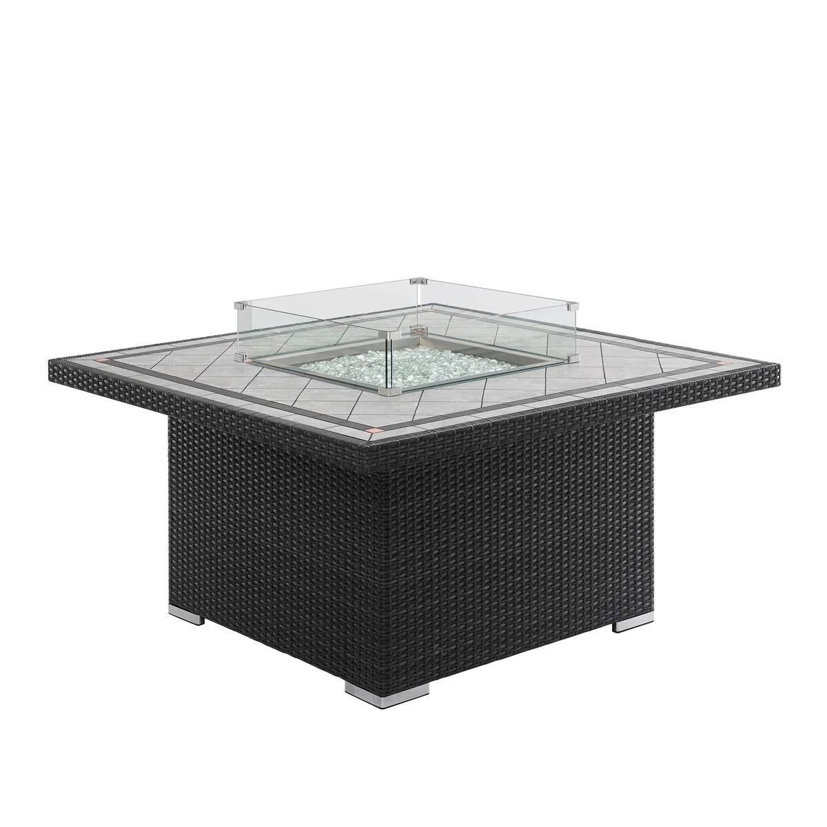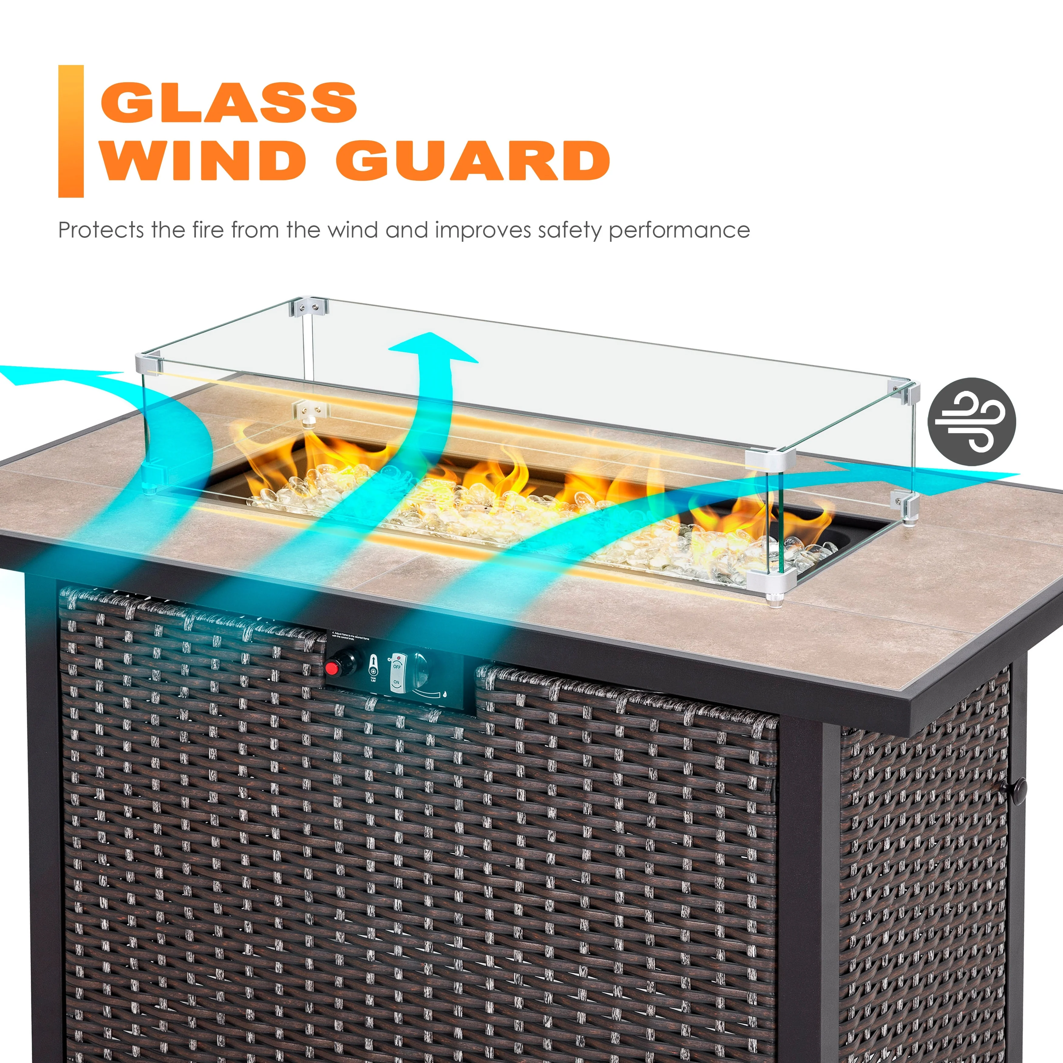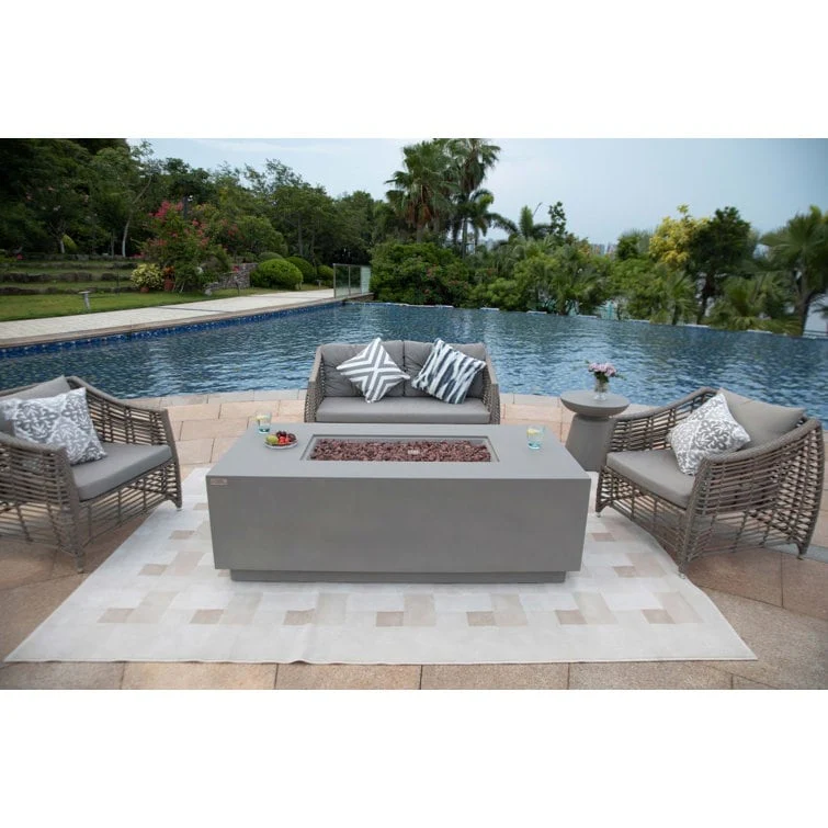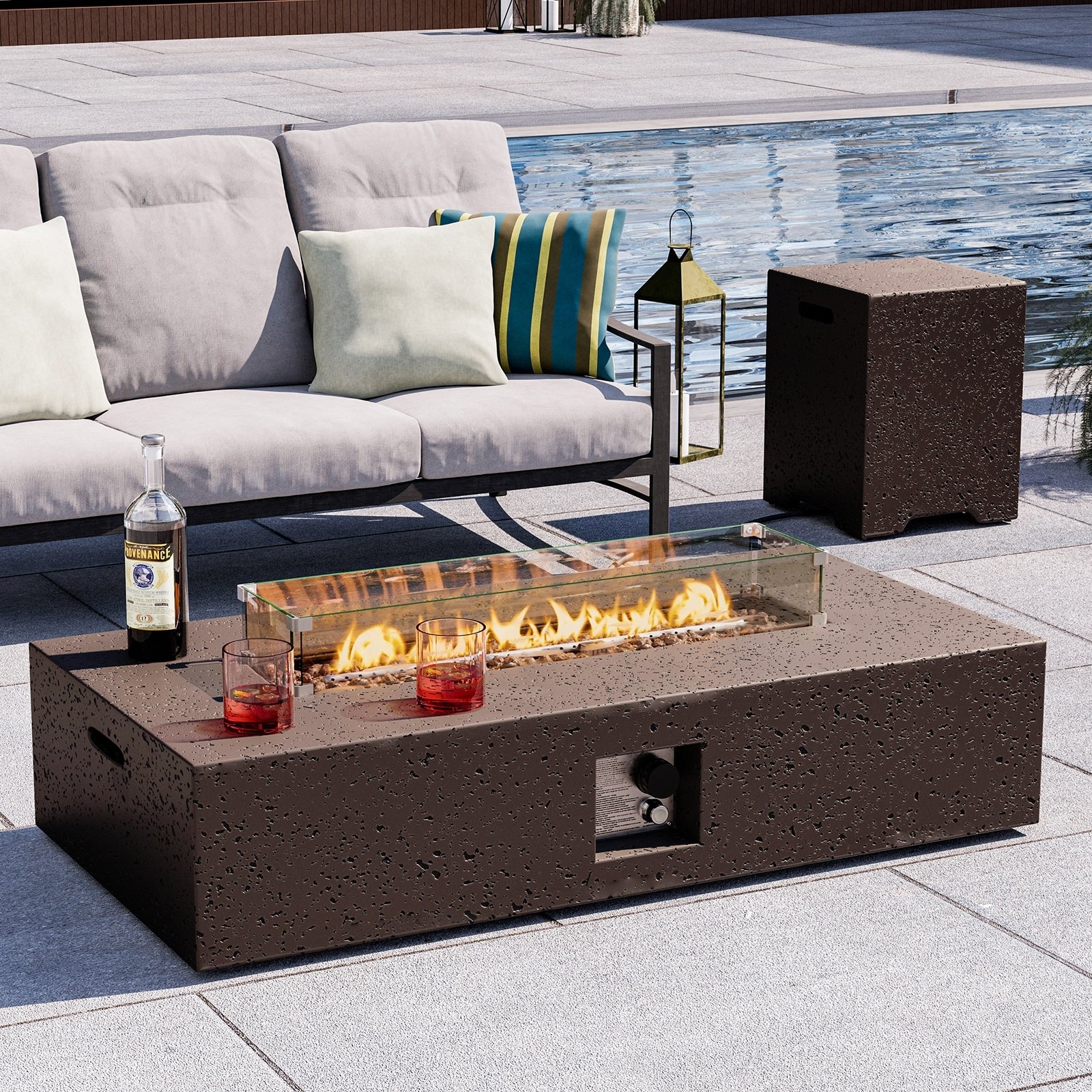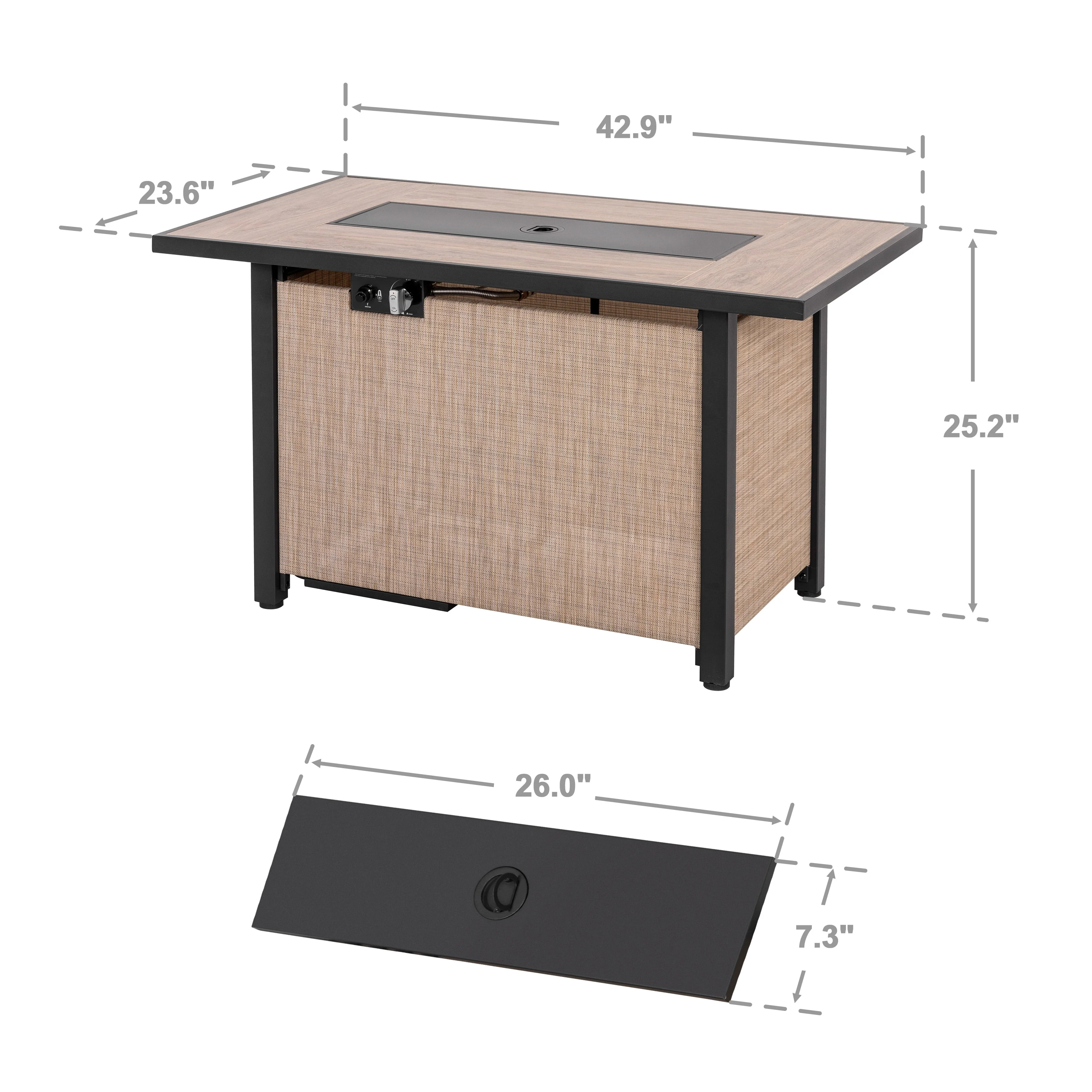 GDFStudio - Mason Combo Outdoor Rectangular Propane Fire Table with Wind Guard and External Tank Holder