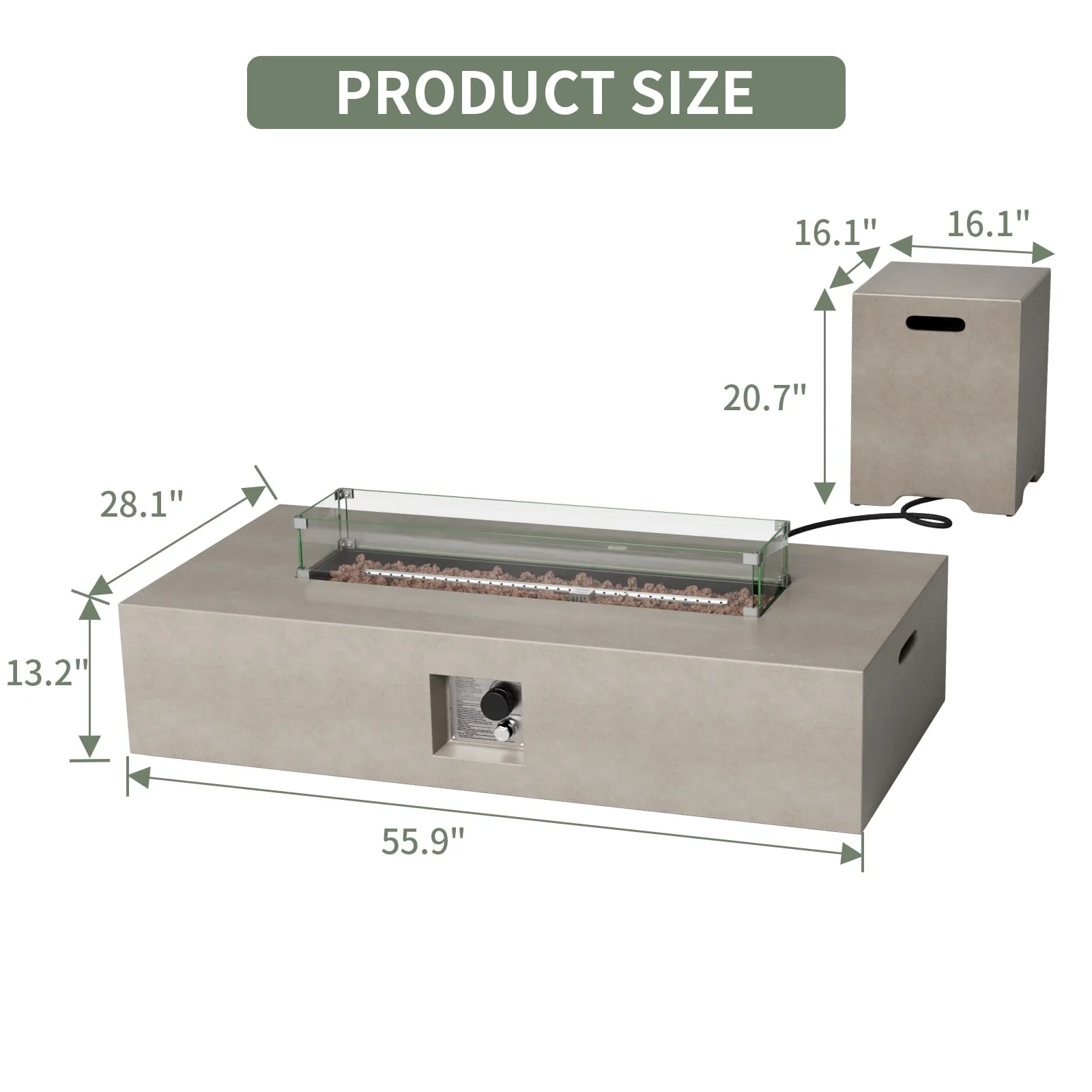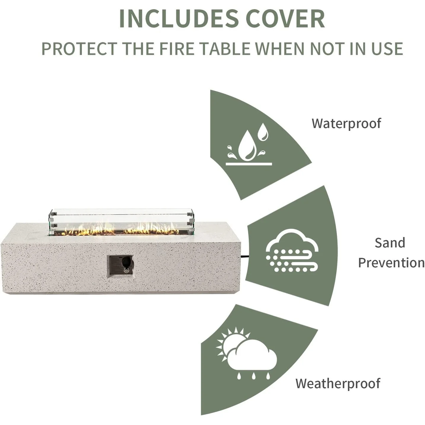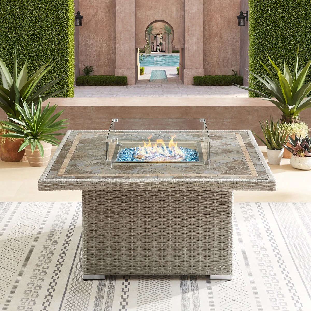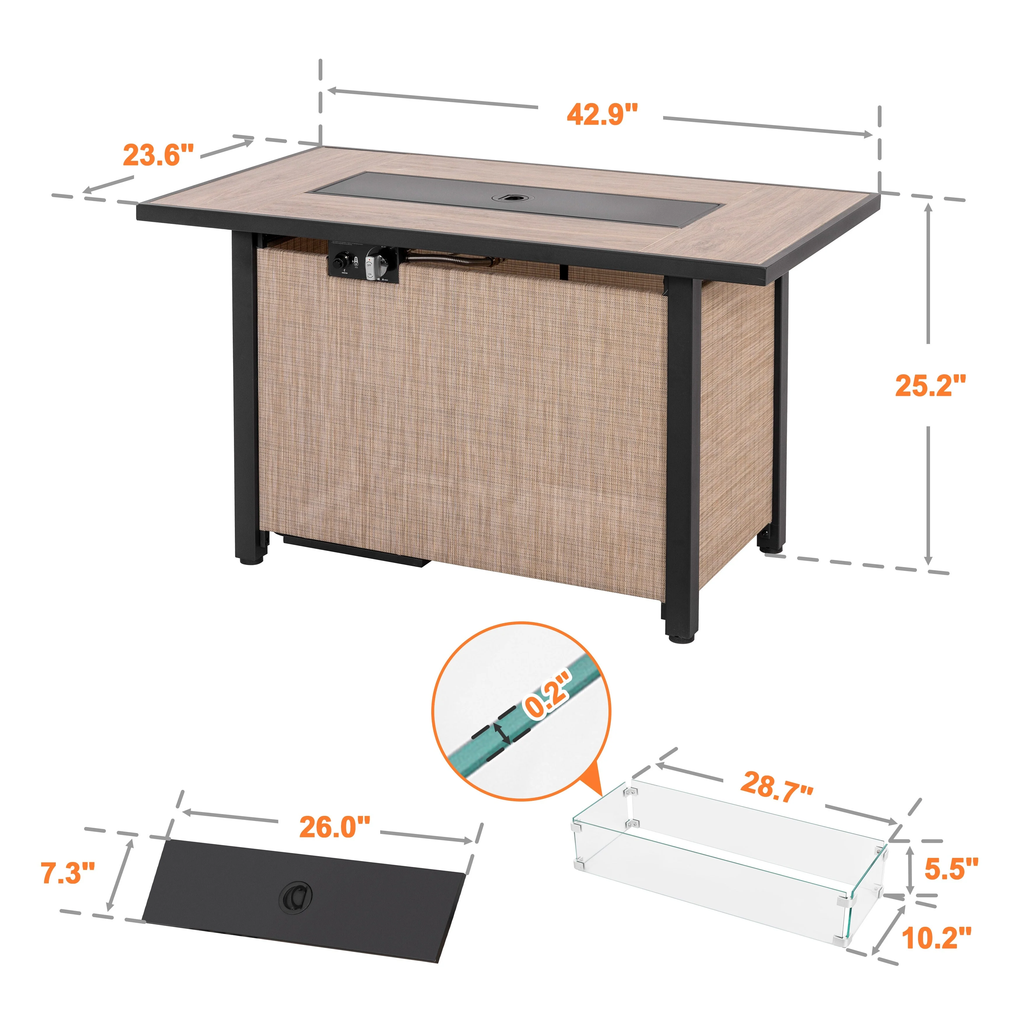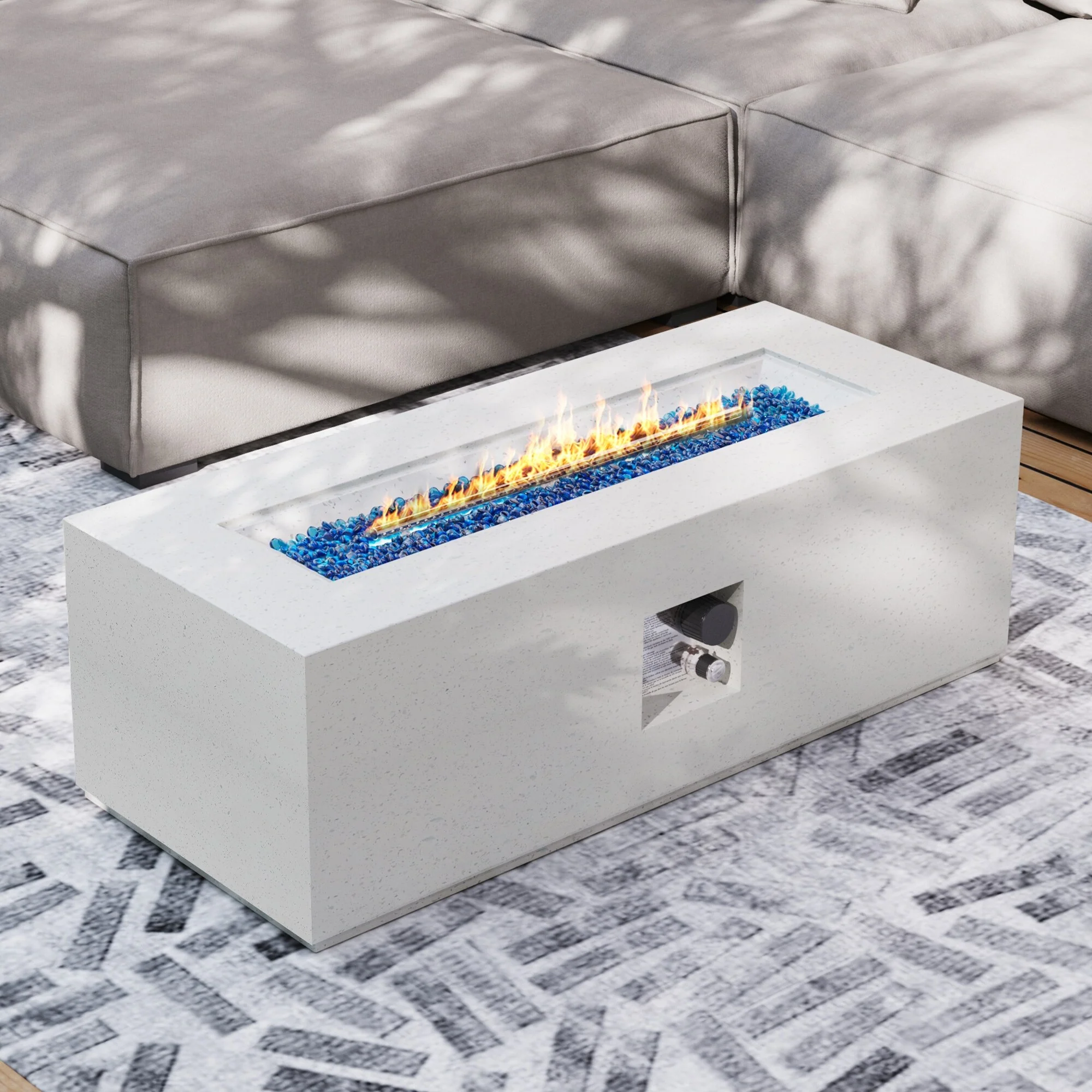 GDFStudio - Mason Combo Outdoor Rectangular Propane Fire Table with Wind Guard and External Tank Holder
