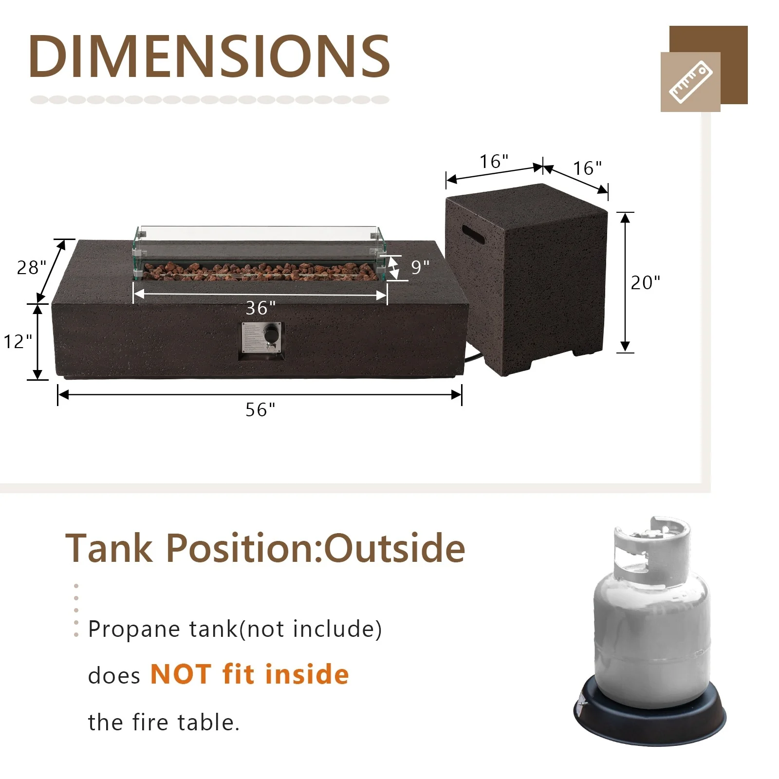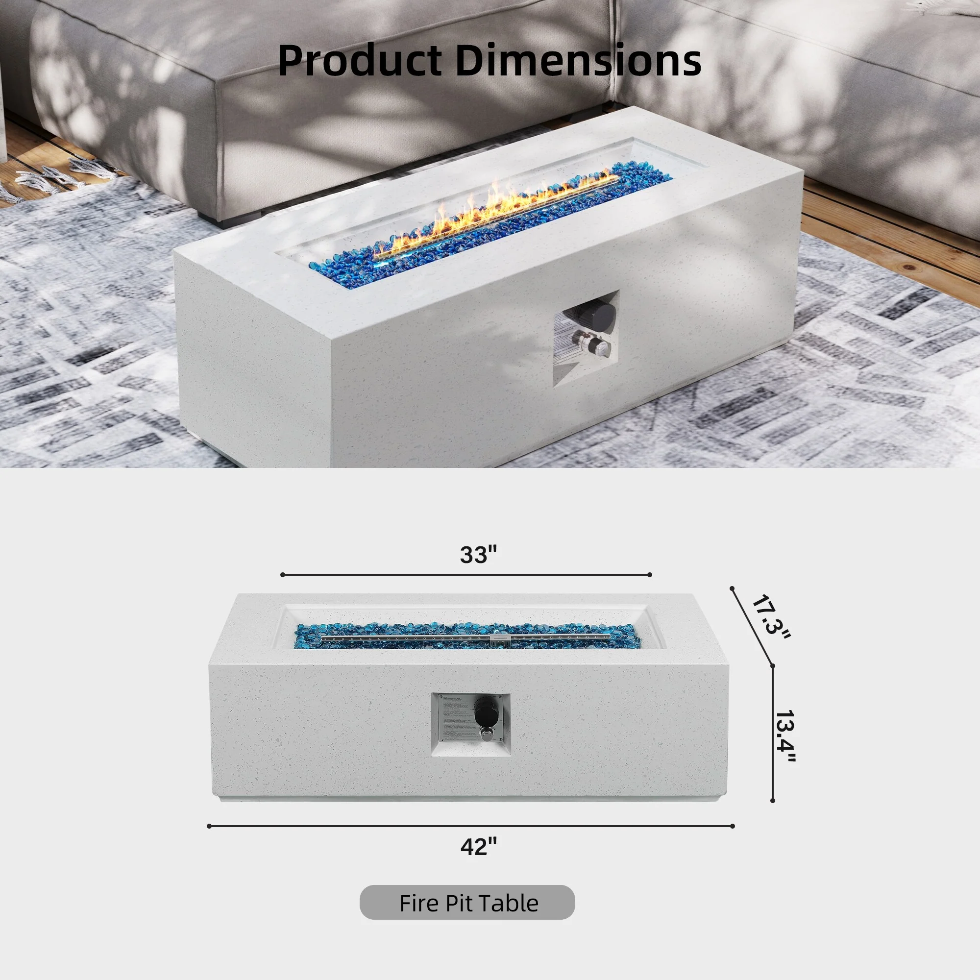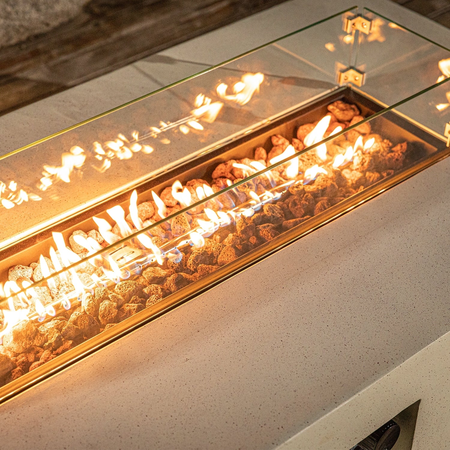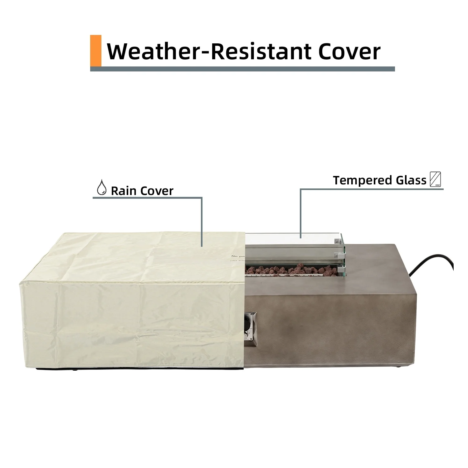 GDFStudio - Mason Combo Outdoor Rectangular Propane Fire Table with Wind Guard and External Tank Holder