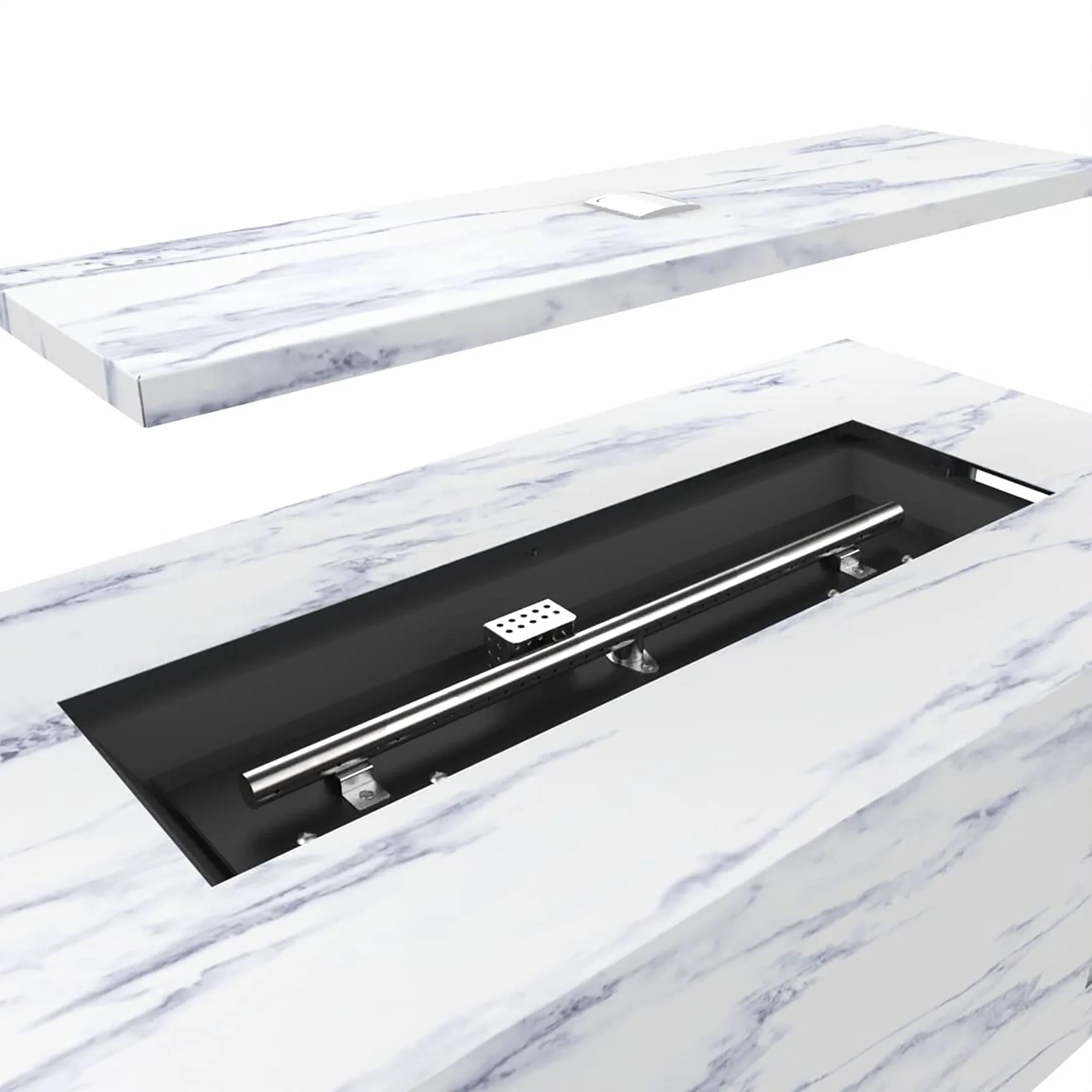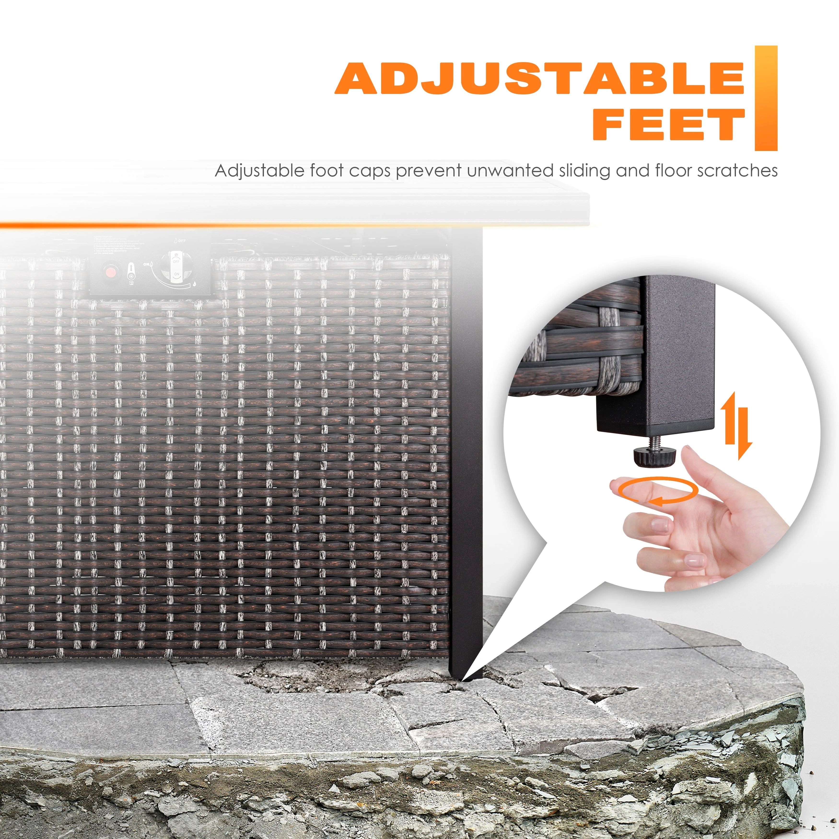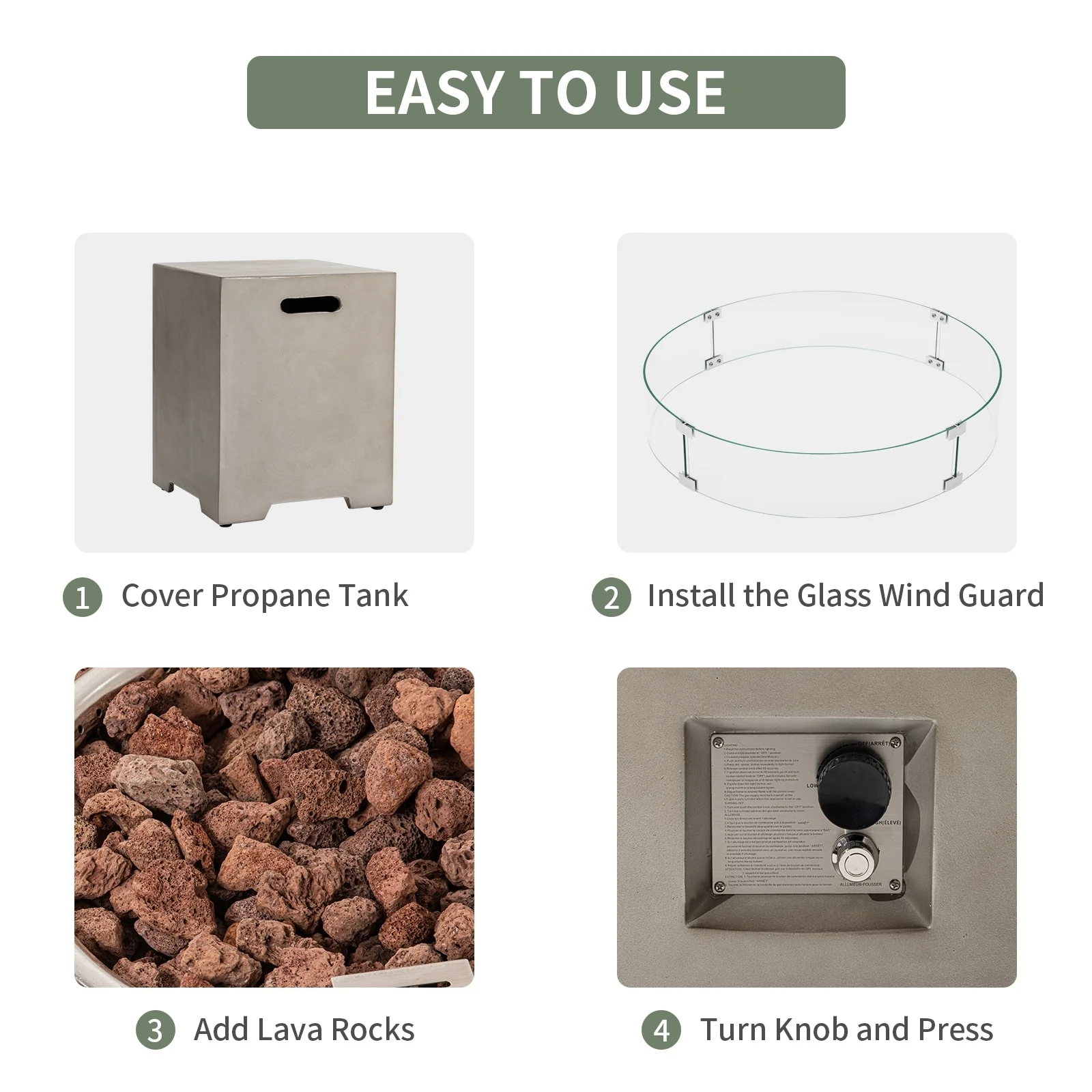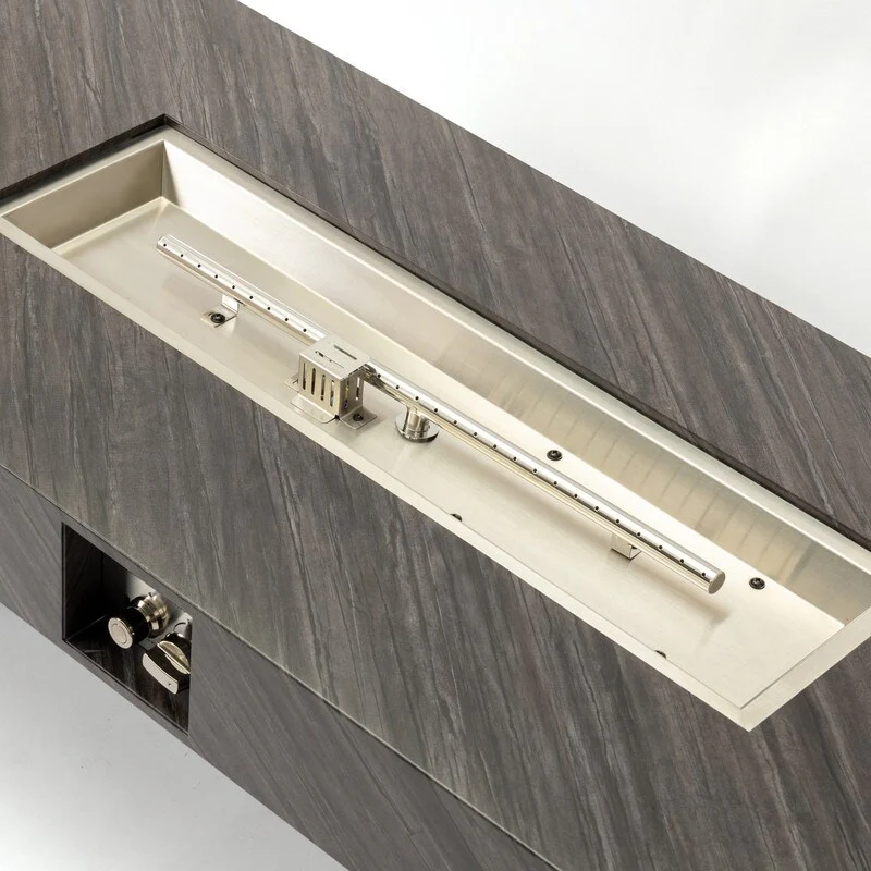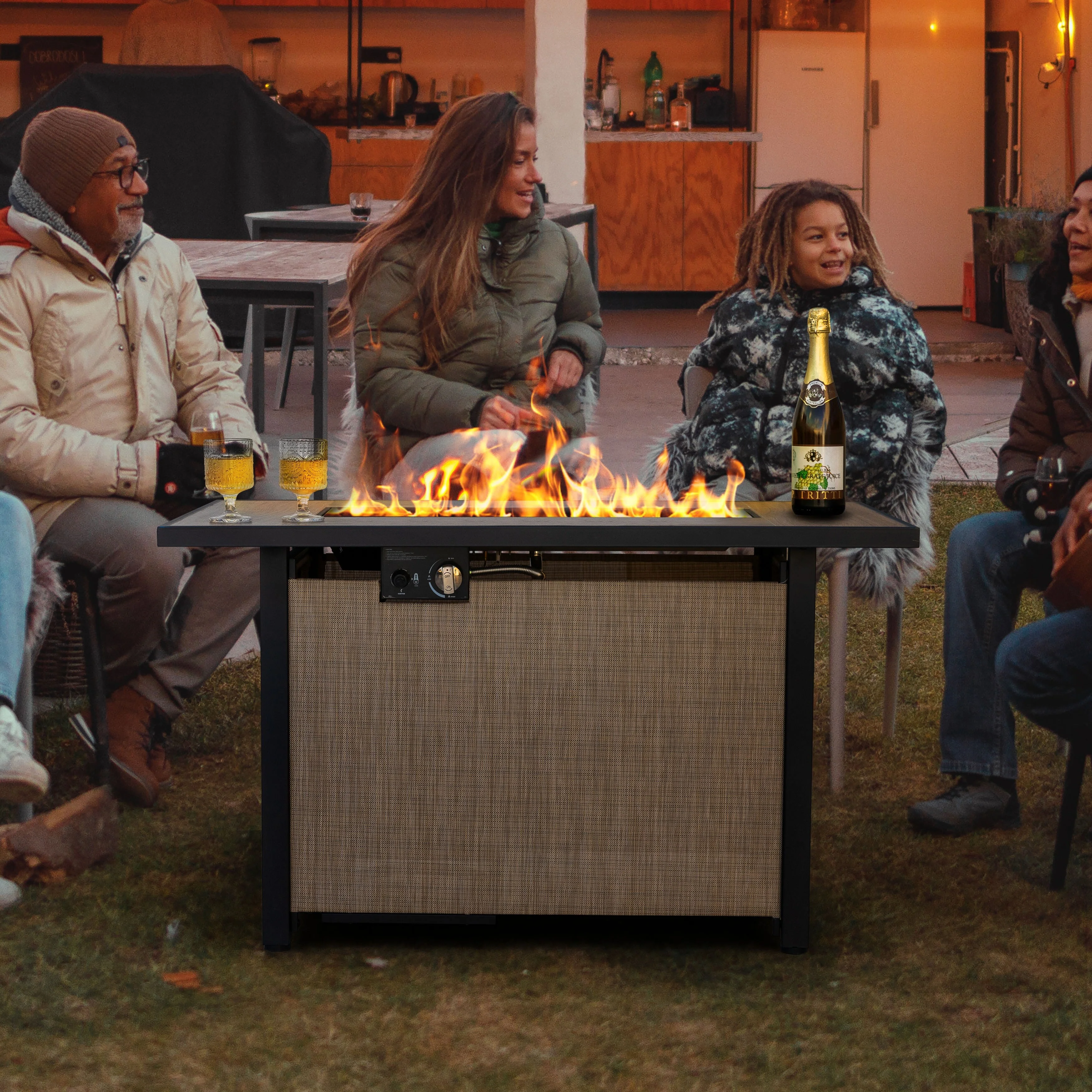 GDFStudio - Mason Combo Outdoor Rectangular Propane Fire Table with Wind Guard and External Tank Holder