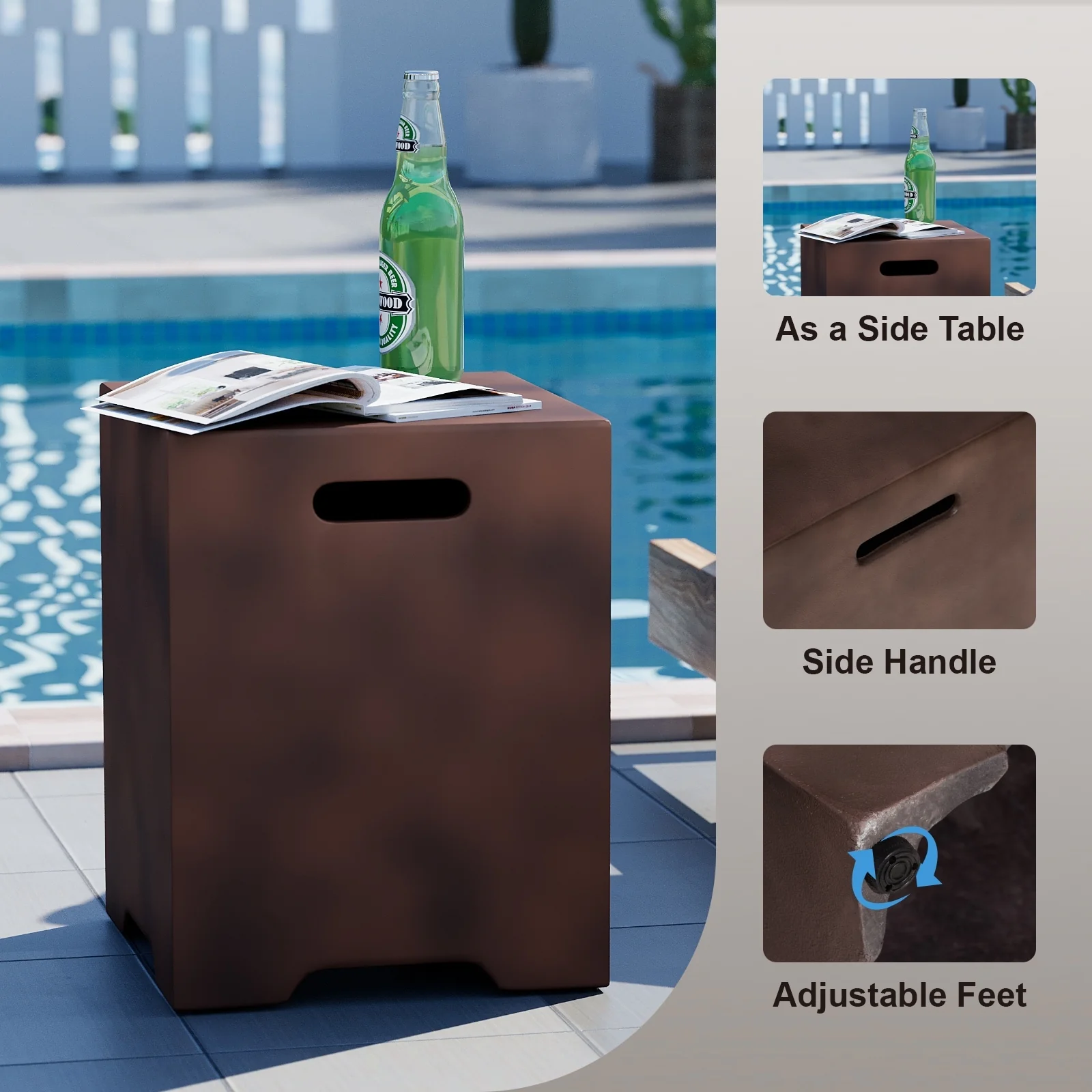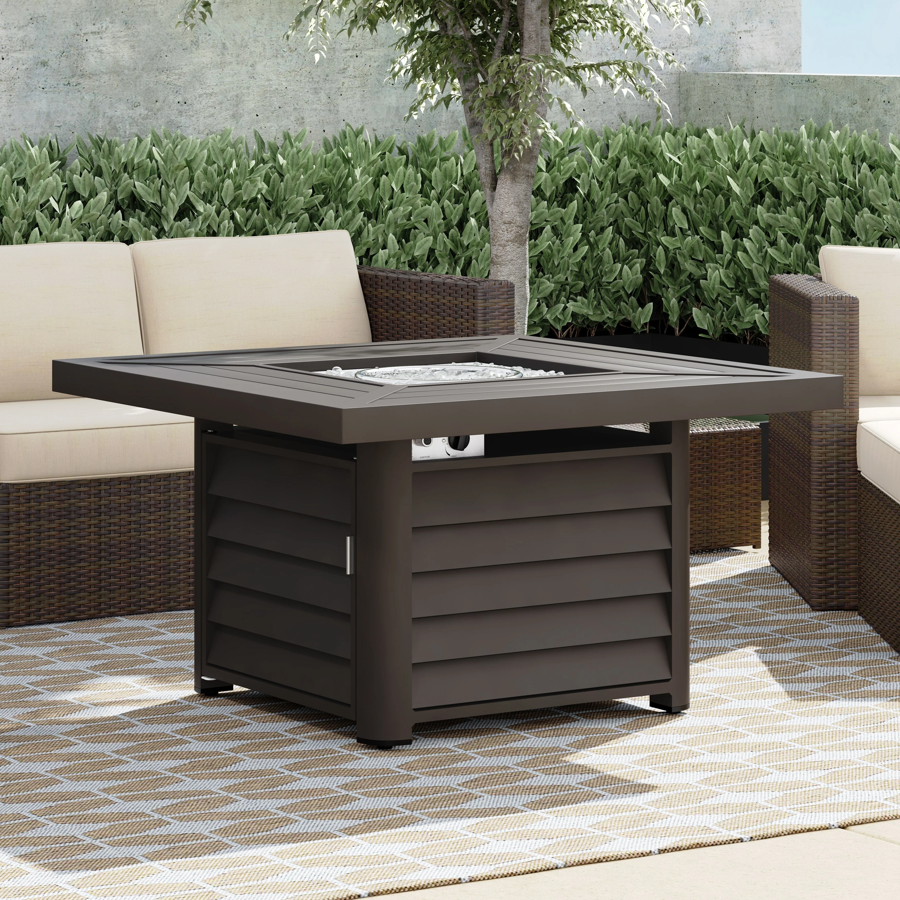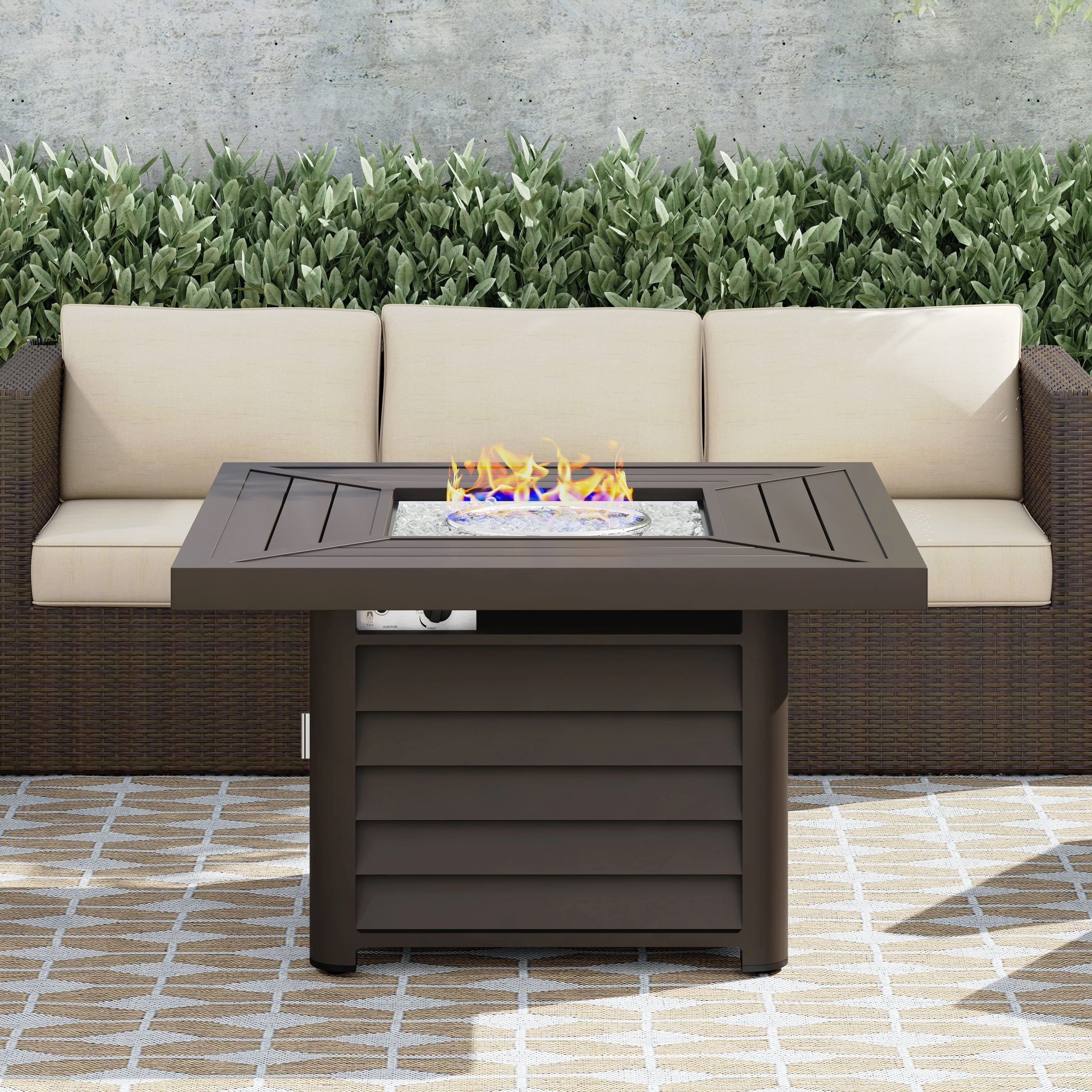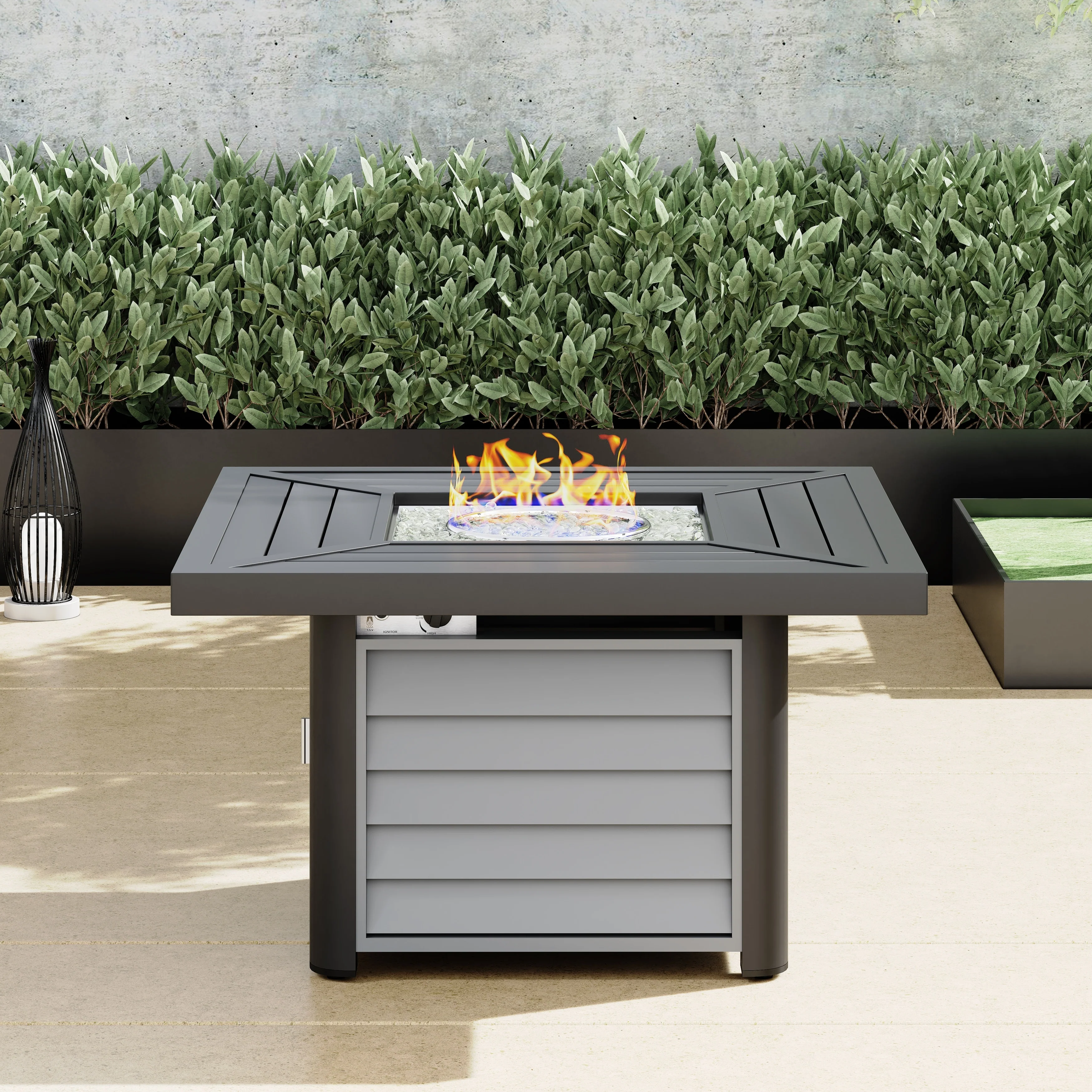 Corvus Abruzzo 42 Inch Square Aluminum Propane Fire Pit Table
