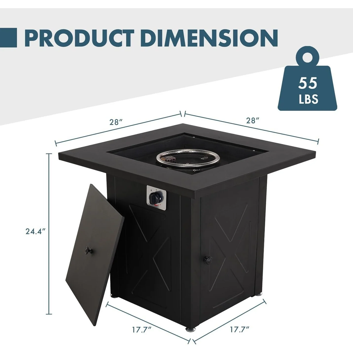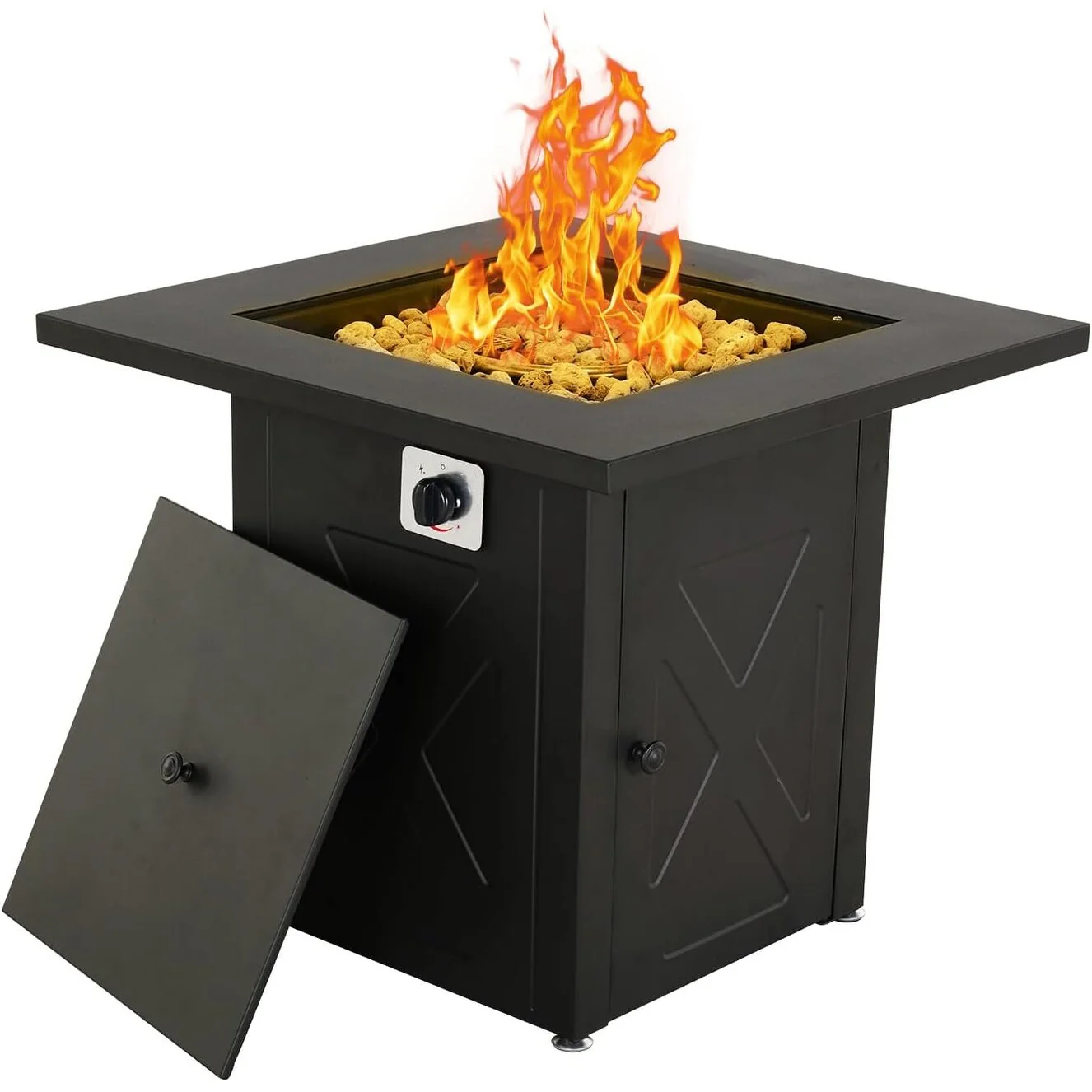 Gas Fire Pit Table, 30 inch Square Outdoor Propane Fire Pit Table