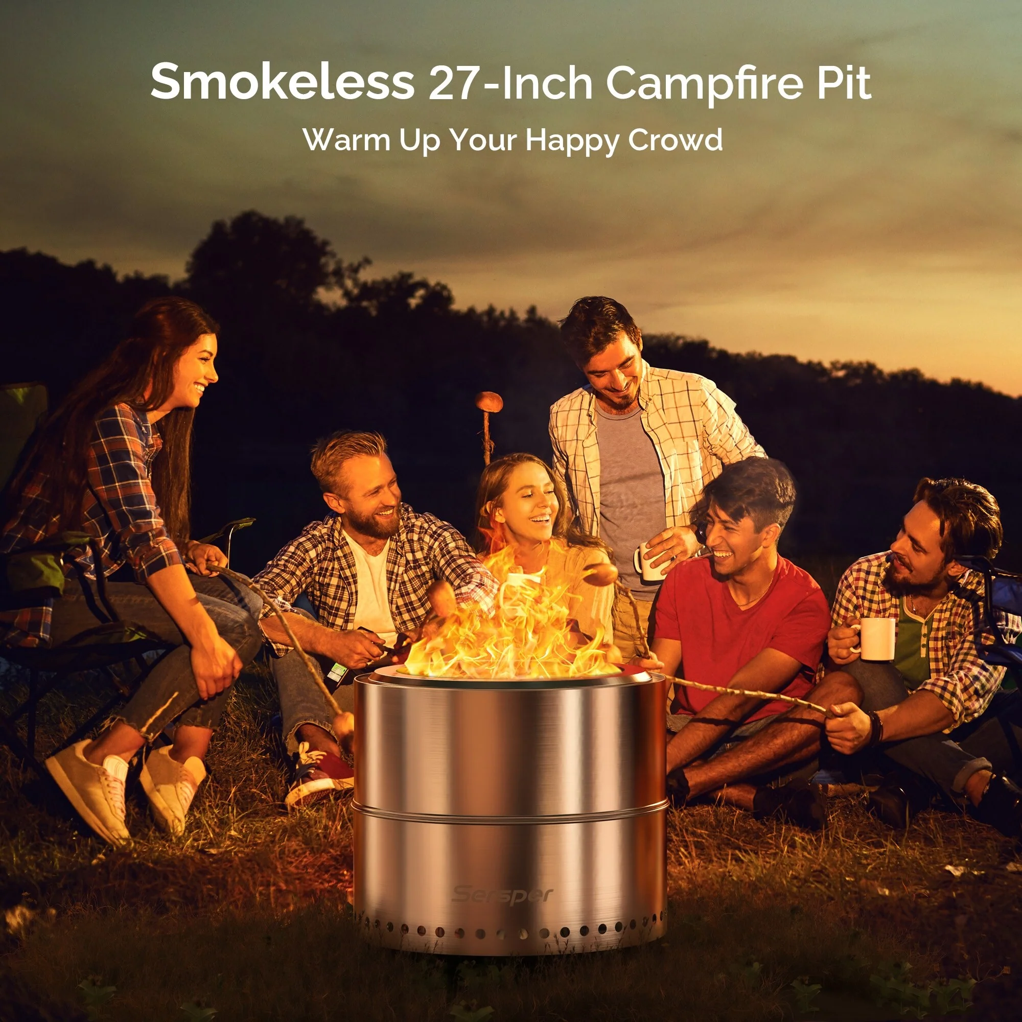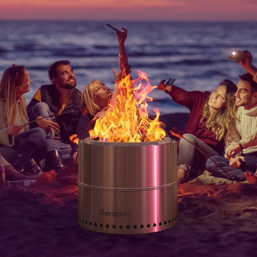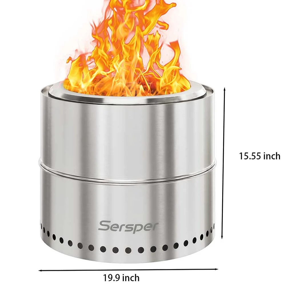 Sersper 20" Portable Large Smokeless Fire Pit for Camping, Backyard, Patio, Garden, Picnic with Carry Bag