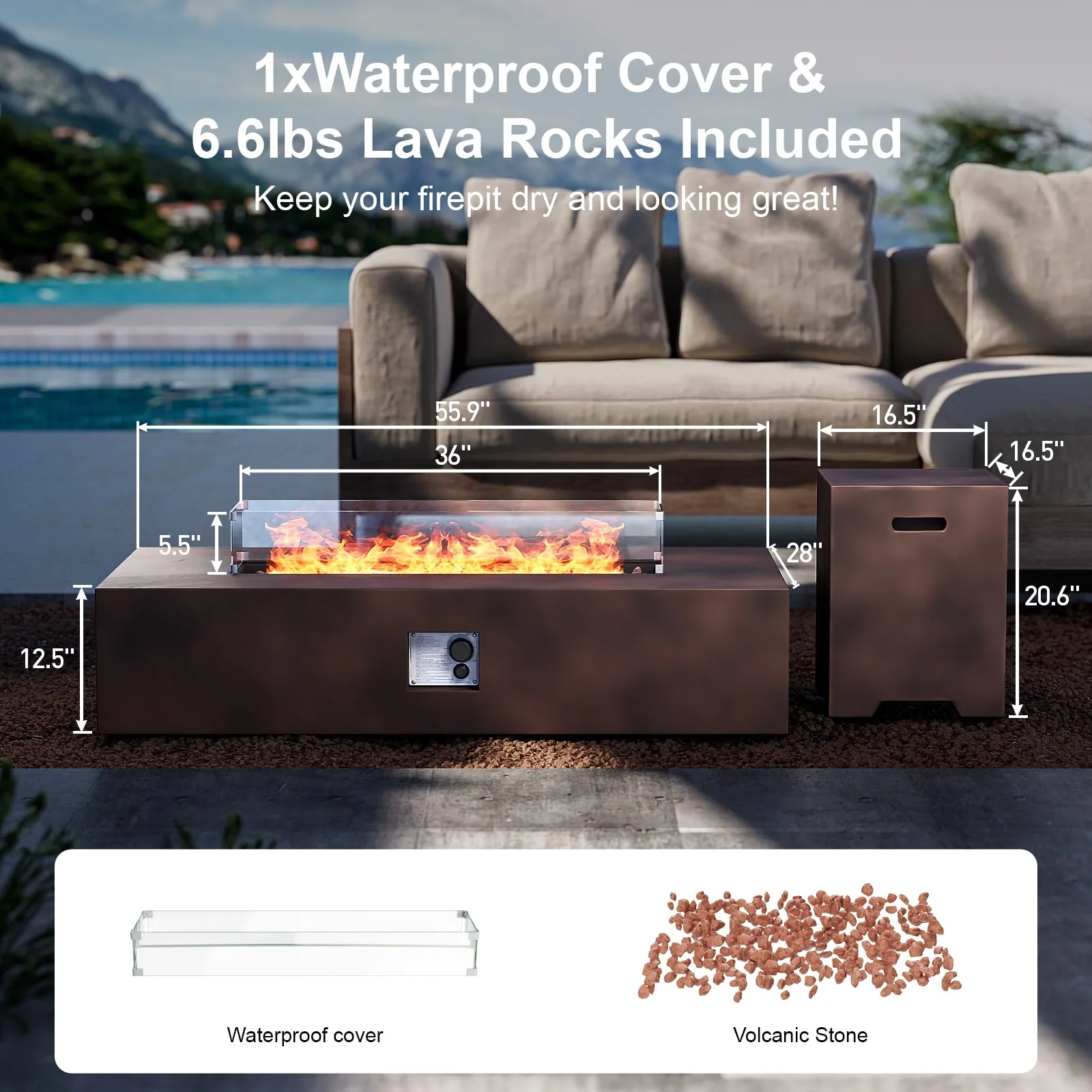 Sedona 66" Fire Pit Table w/ Hidden Propane Tank Drawer Bundle