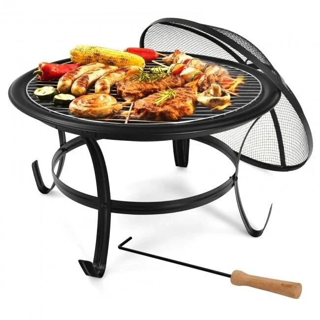 22 Inch Steel Outdoor Fire Pit Bowl With Wood Grate
