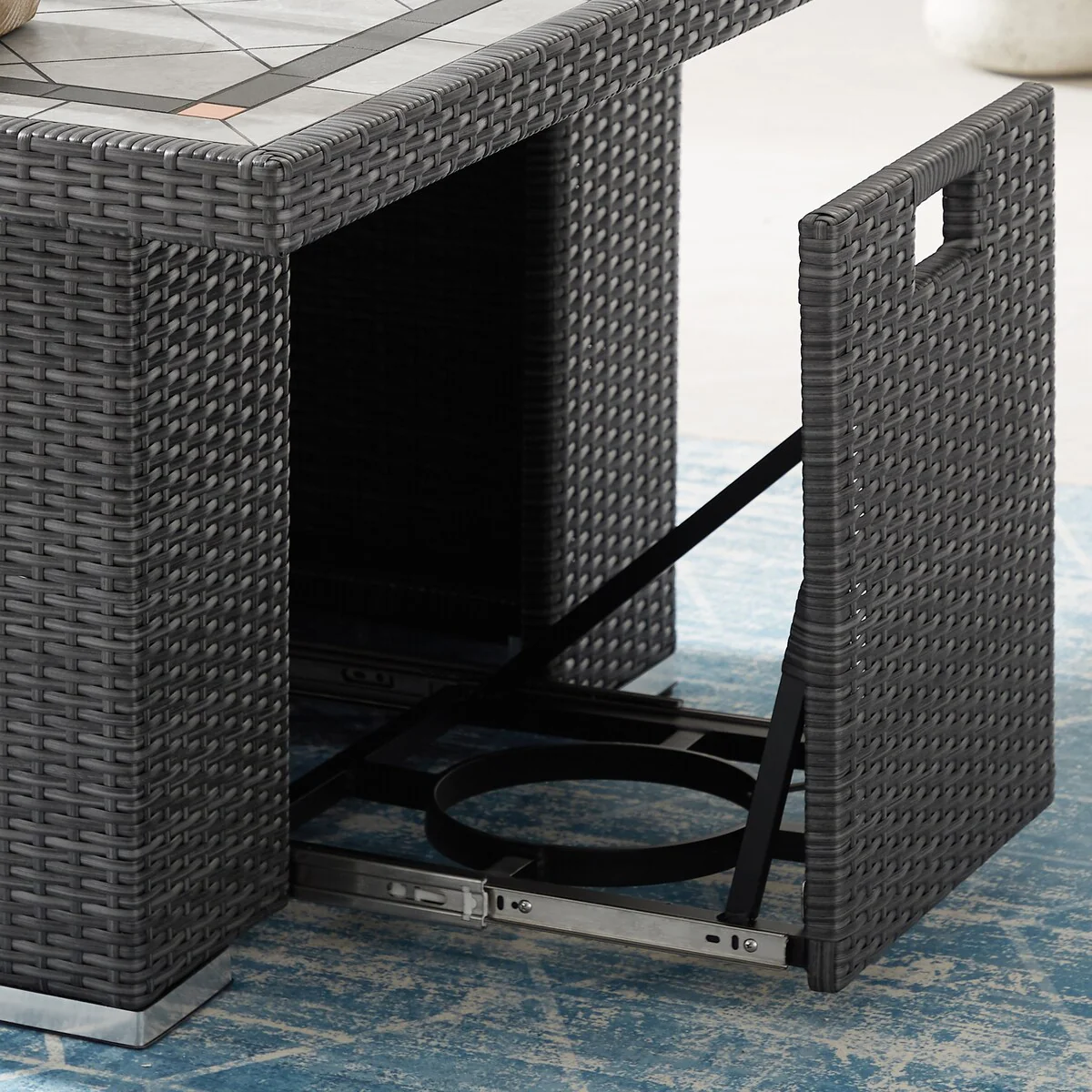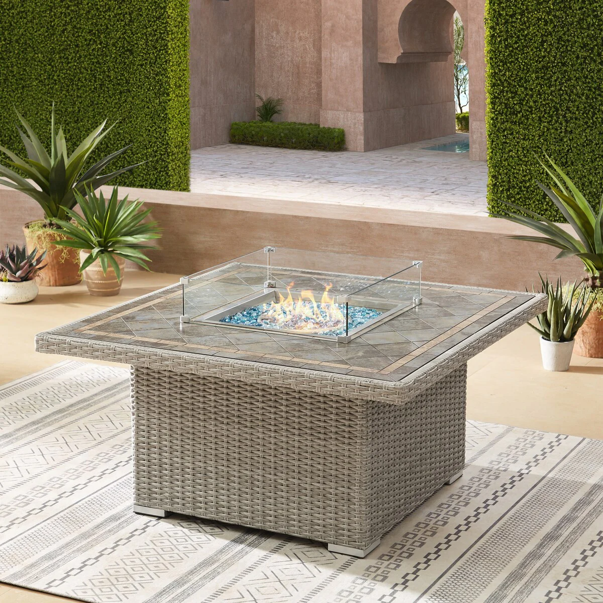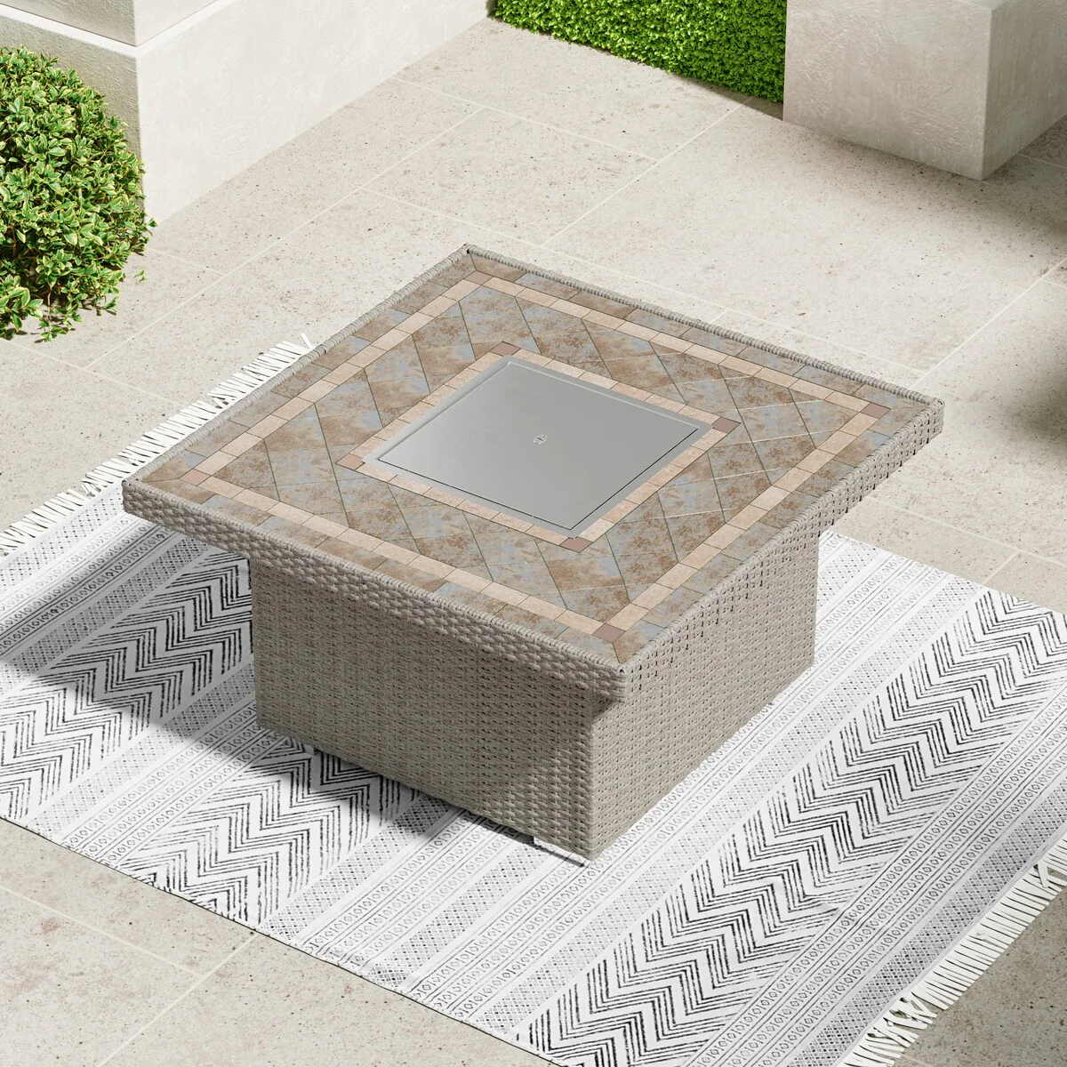 Corvus Duff 1-piece Square Wicker Patio Fire Pit Table with Ceramic Tile Top and Lid
