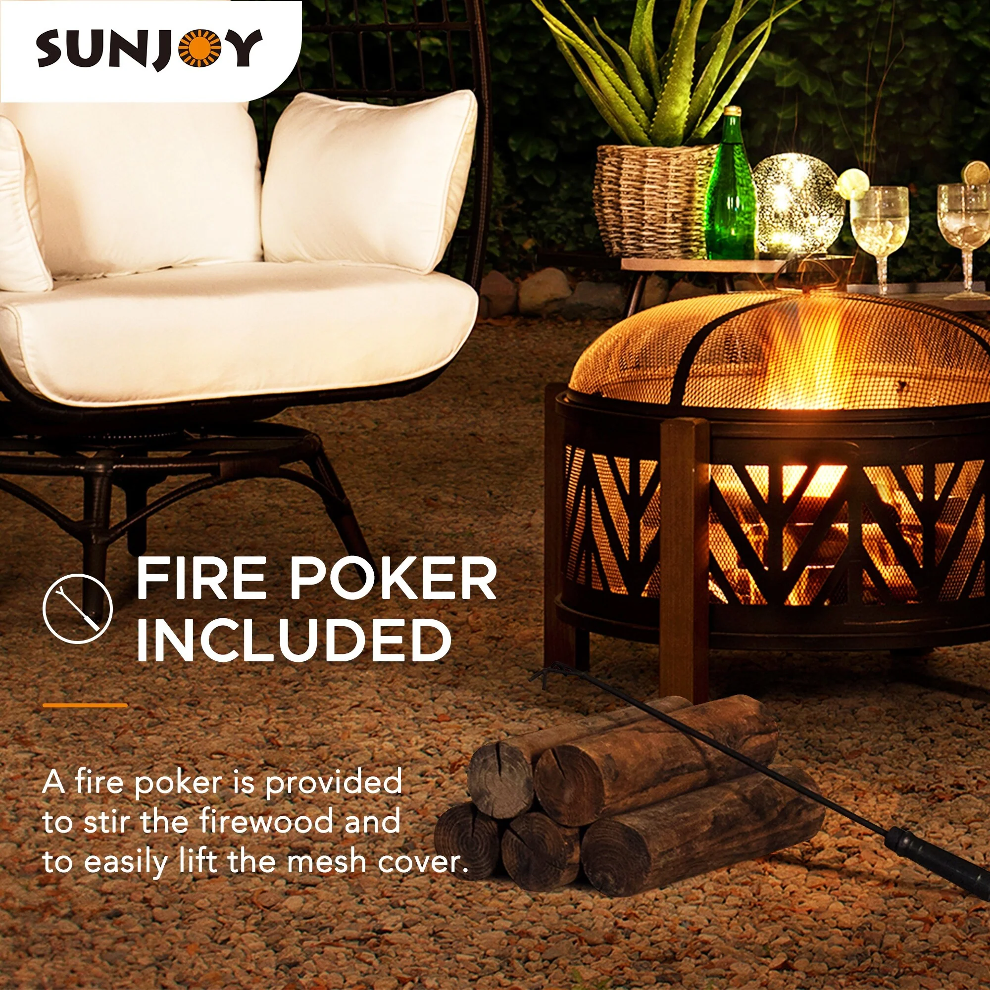 Sunjoy Outdoor 27 in. Black Steel Wood-Burning Fire Pit for Outside
