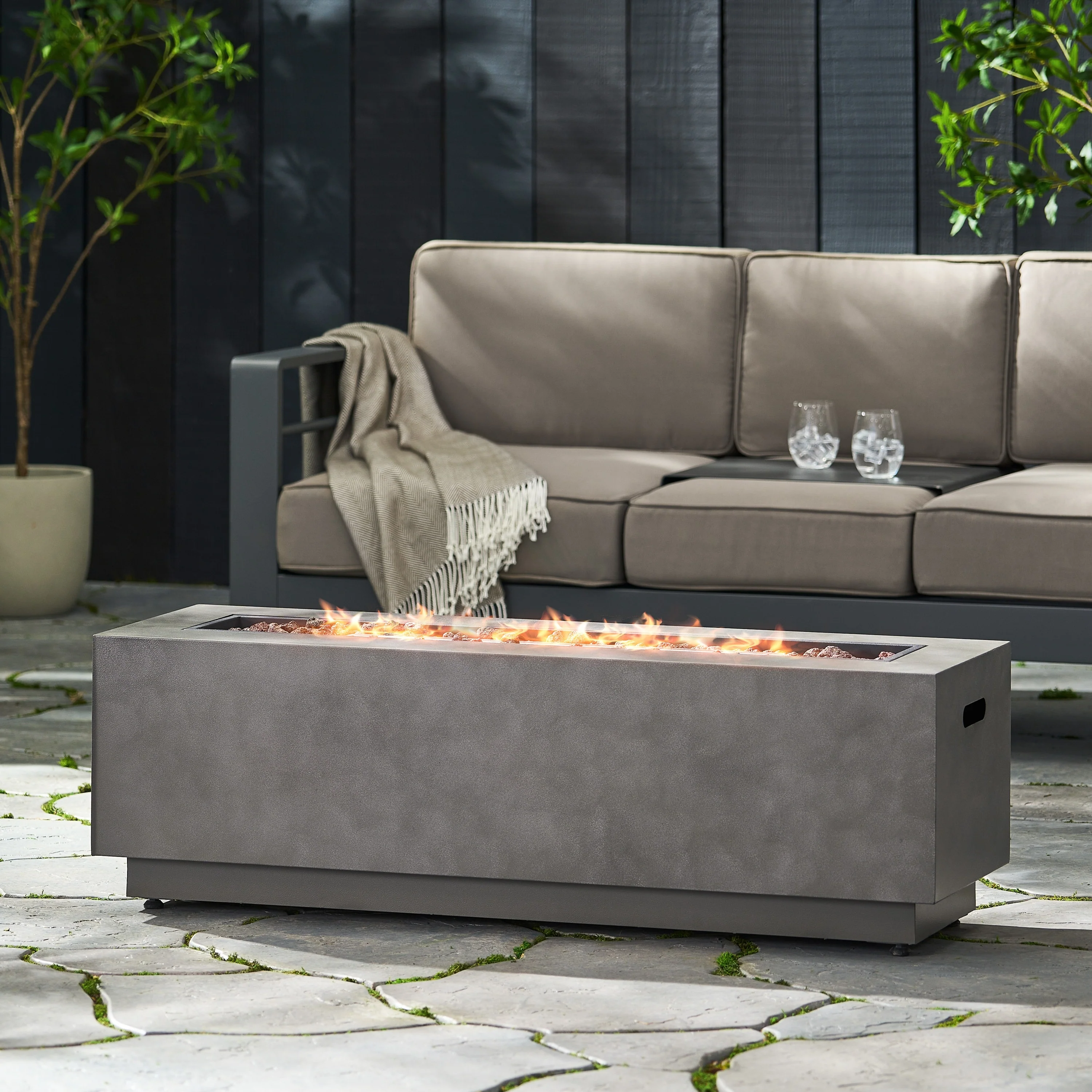 50 in. W x 25.5 in. D x 15.25 in. H Rectangle Propane Burning Outdoor Fire Pit in Dark Gray