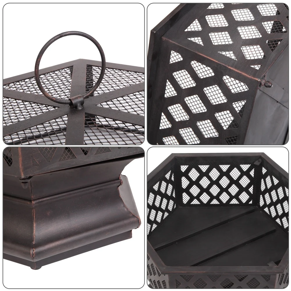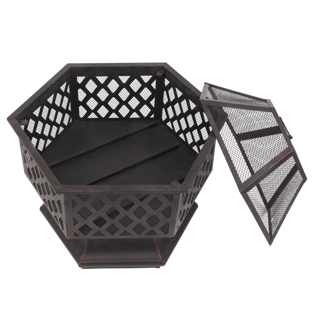 22" Outdoor Hexagonal Shaped Iron Brazier Wood Burning Fire Pit