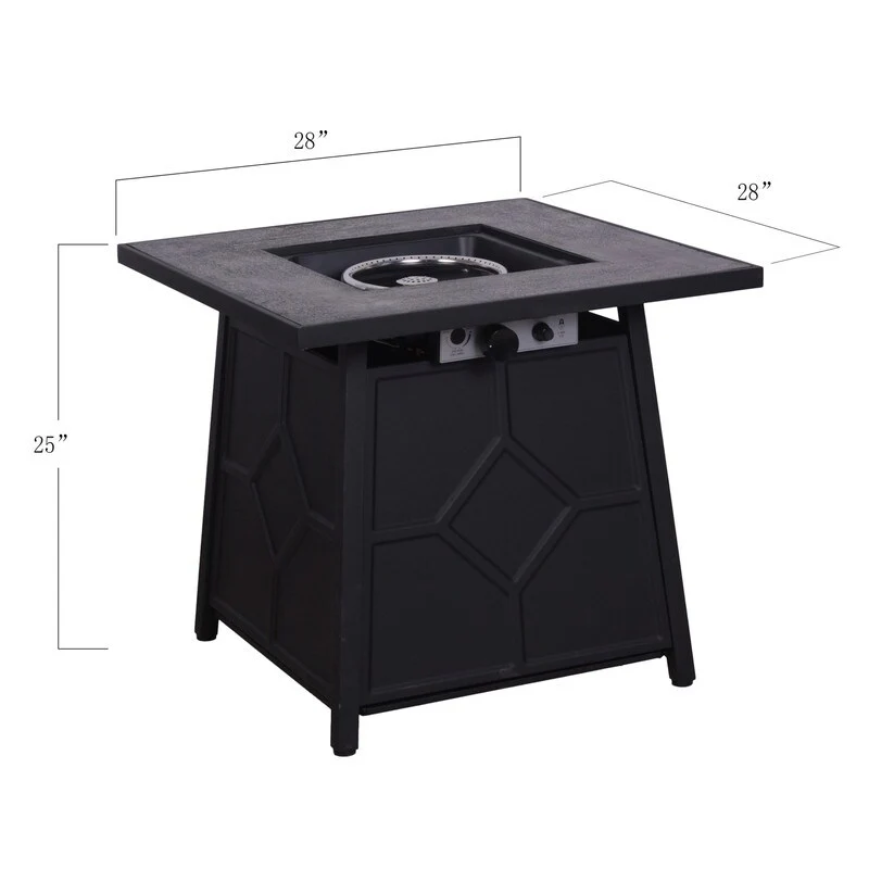 28" Square Top Propane Fire Pit Table 40,000 BTU