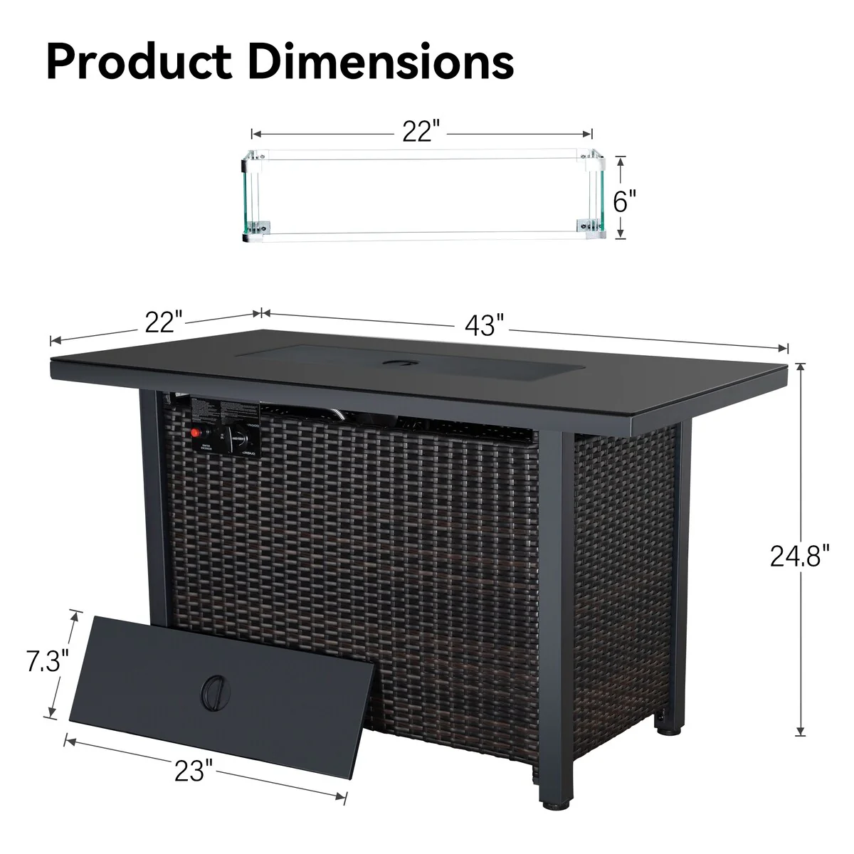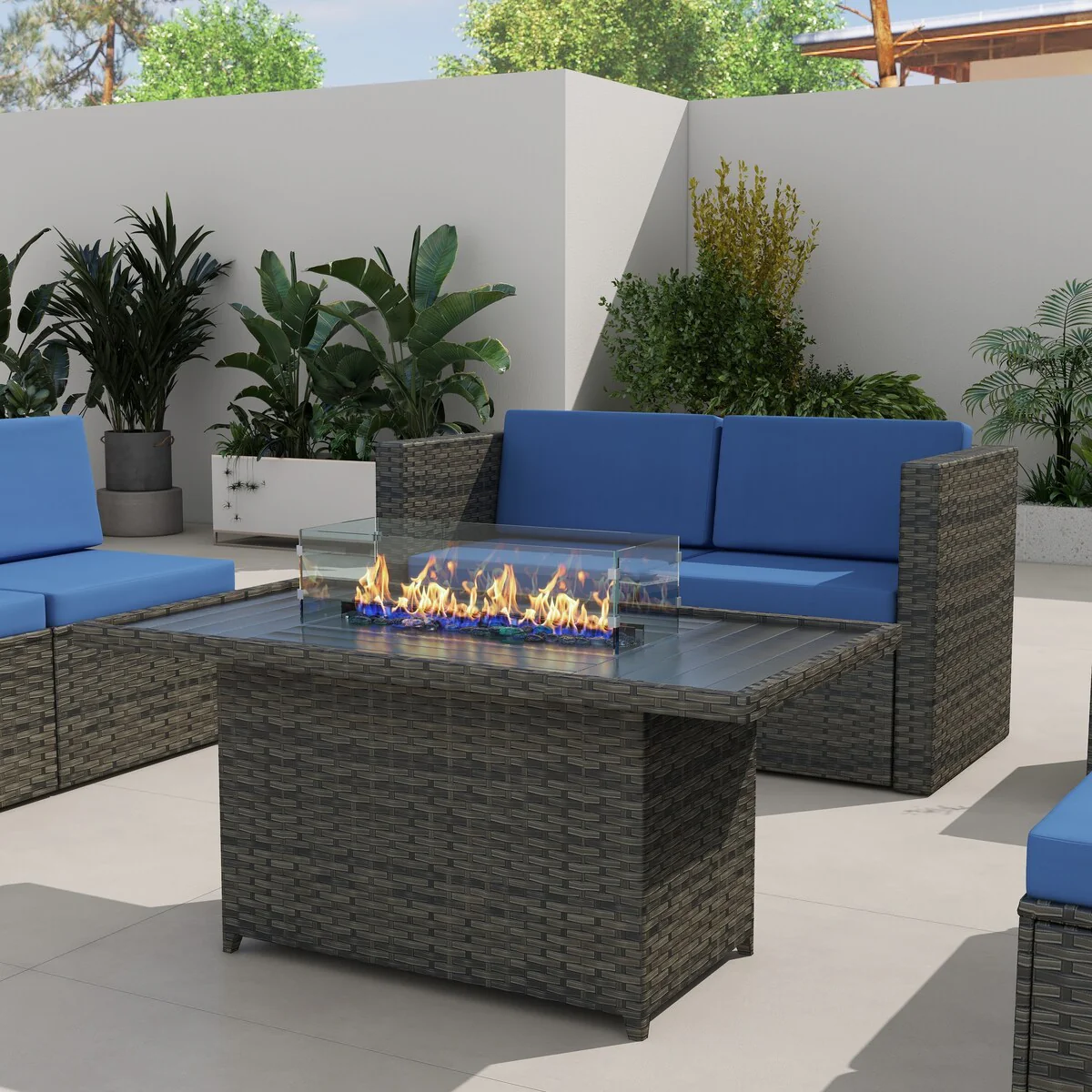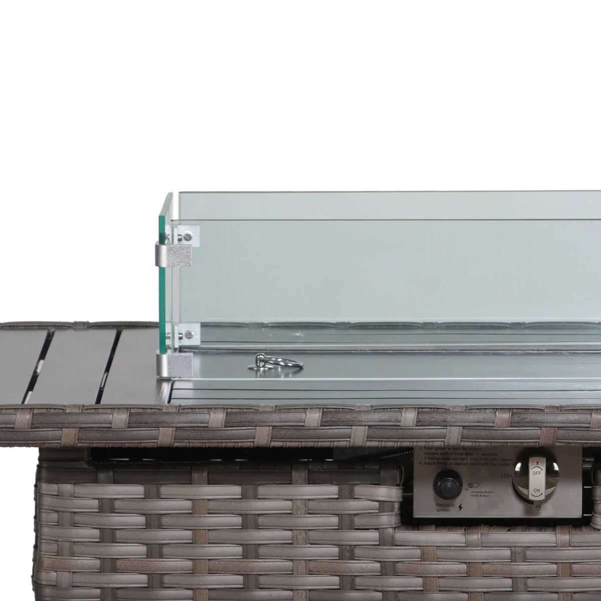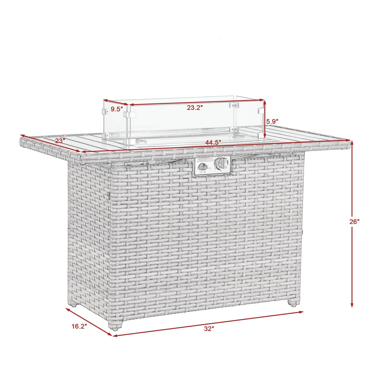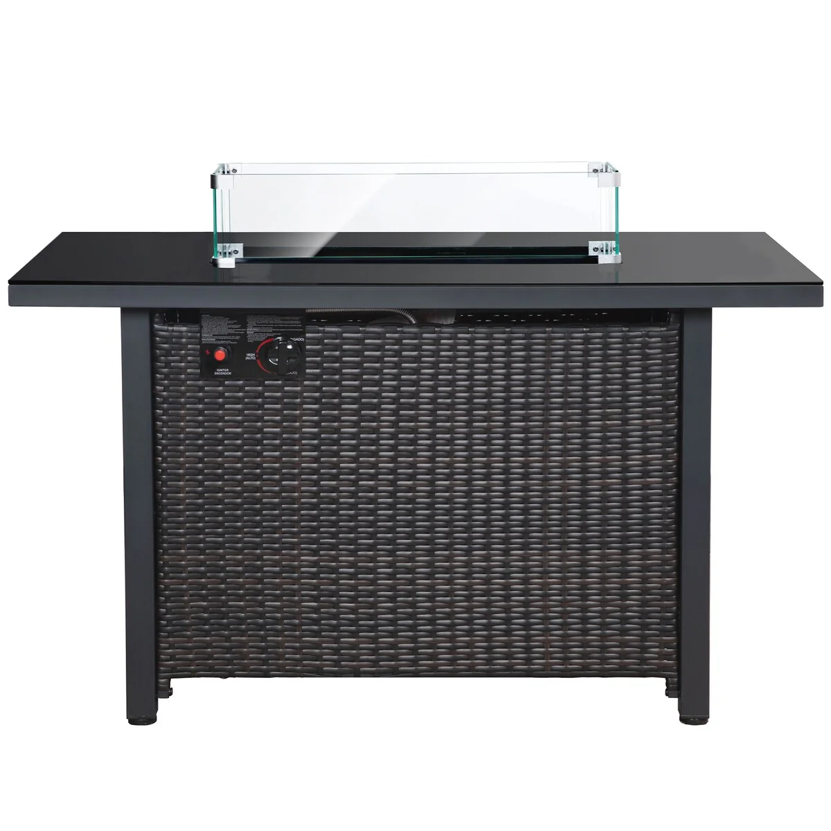 44 inch Outdoor Rectangular Rattan Fire Pit Table With Wind Guard