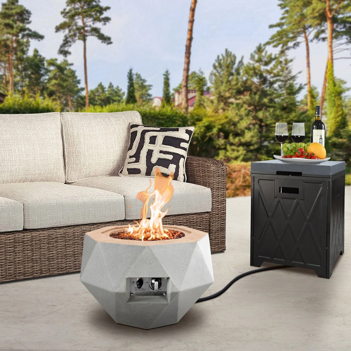 Concrete Propane Fire Pit Table With Tank Cover, Geometric Fireplace 25" W, Light Gray - 25" W x 25" L x 17.1" H