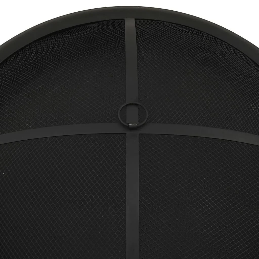 Iron Round Fire Bowl Pit with Charcoal Grid, Mesh Lid&Fire Poker, 35.83''L*35.83''W*27.95''H, 34.17LBS