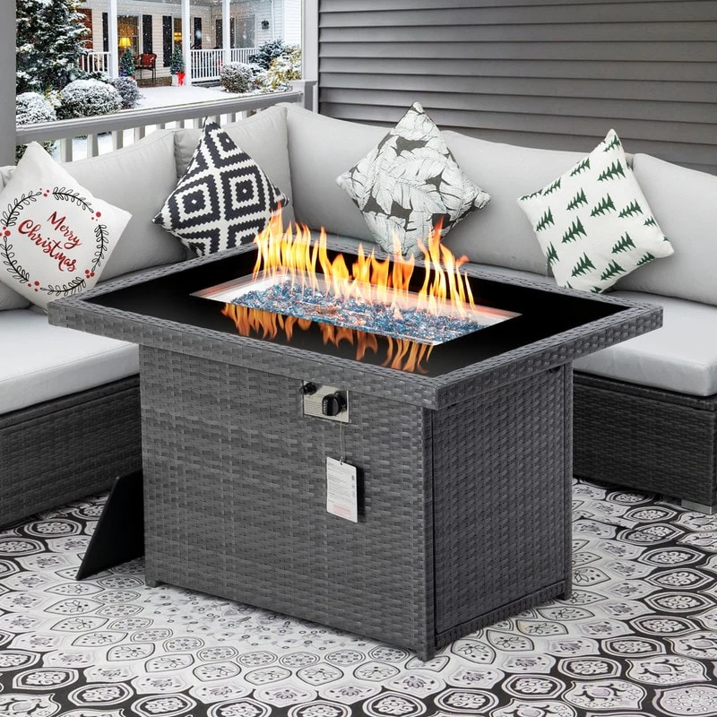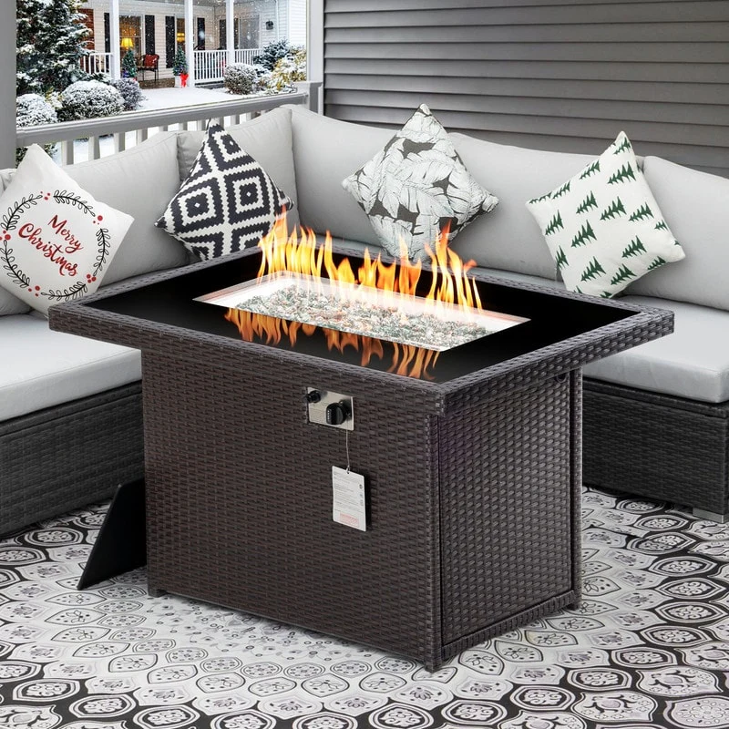 FINCATI 43" Outdoor 60,000 BTU Propane Fire Pit Table, Elegant Natural Gas Wicker Fire Pit, Patio Rectangular Fireplace