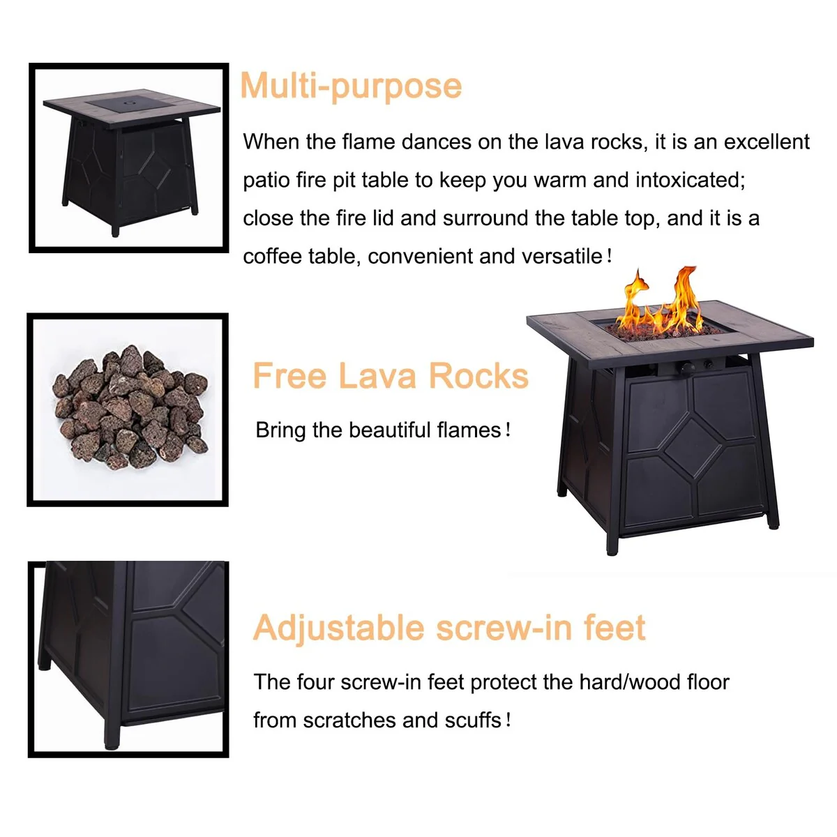 32inch Patio Square Propane Fire Pit Table