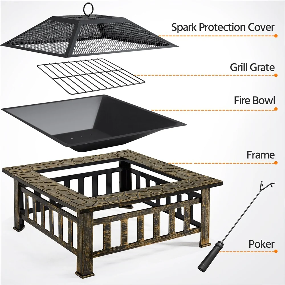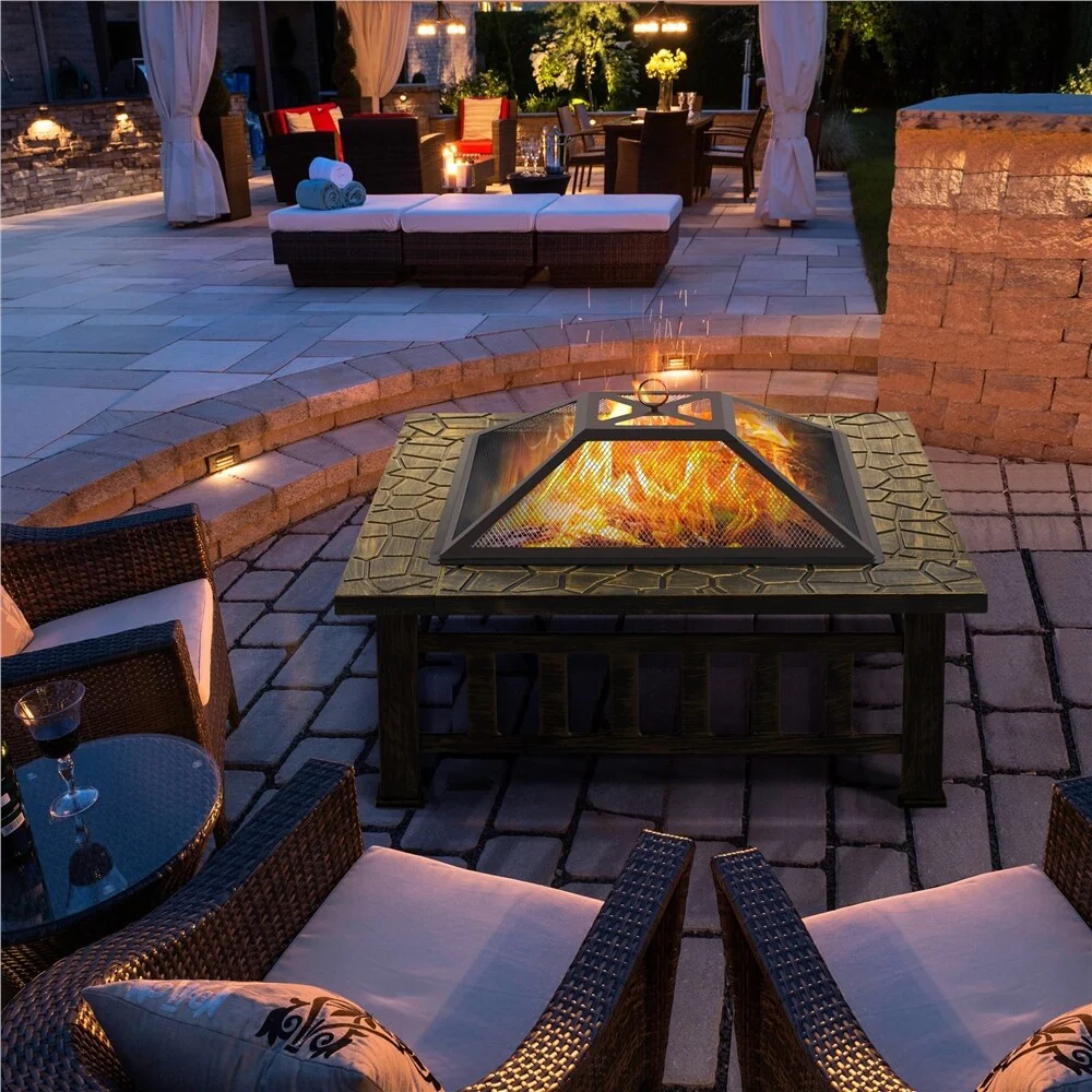 Yaheetech 34in Fire Pit Table Outdoor Patio Fire Pits Square Steel Stove with Mesh Screen and Cover