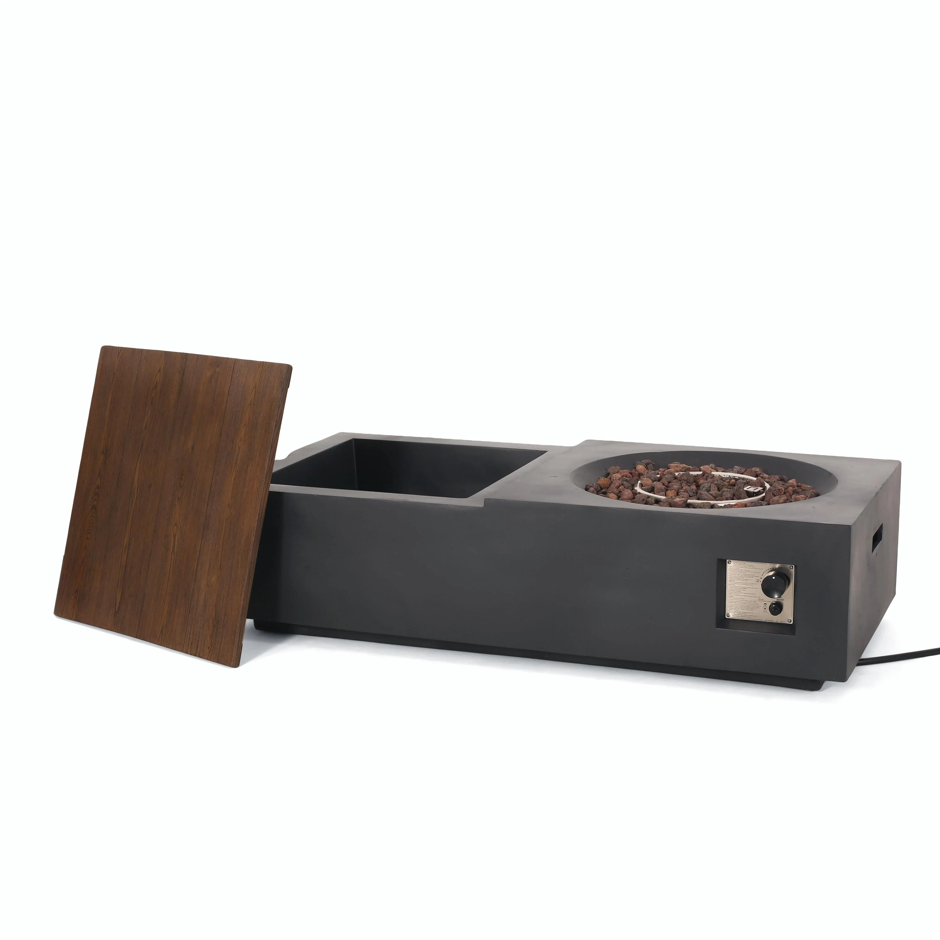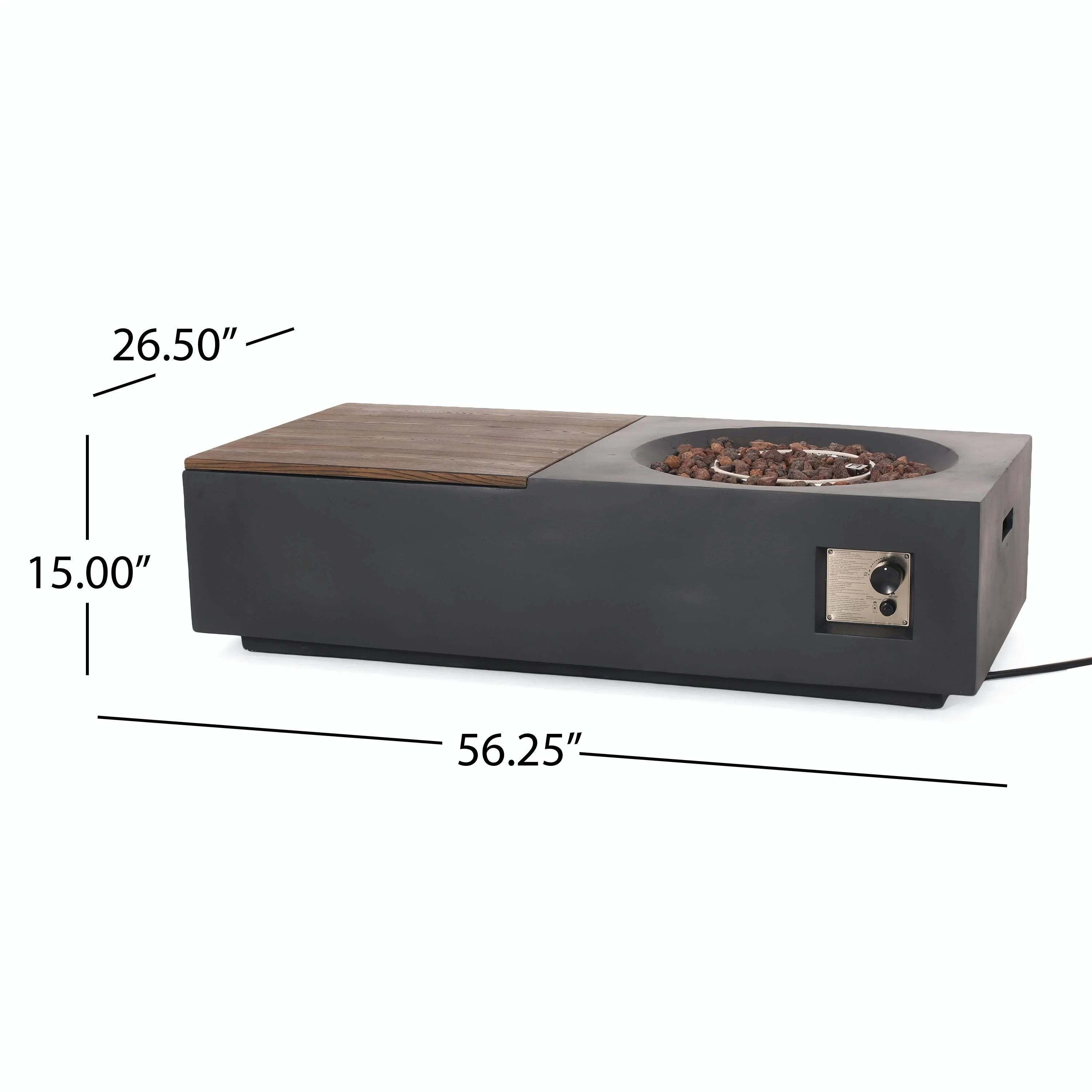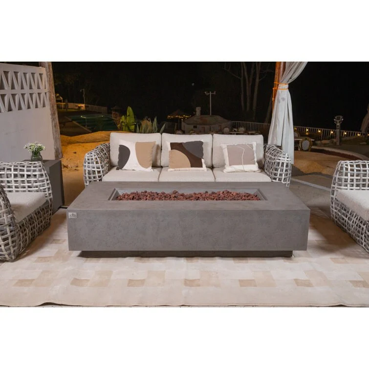 50,000 BTU Outdoor Lightweight Concrete Rectangular Fire Pit Table with Storage