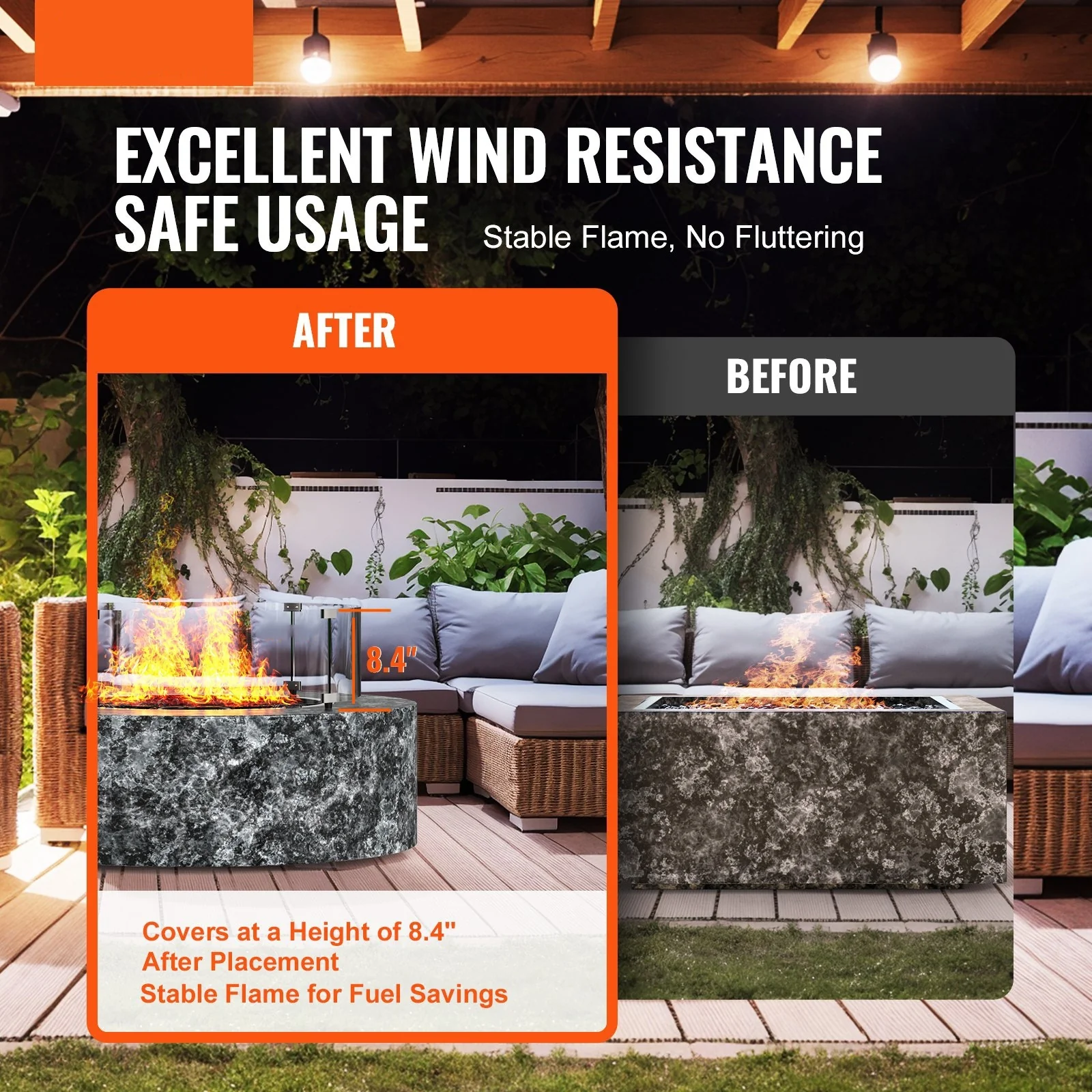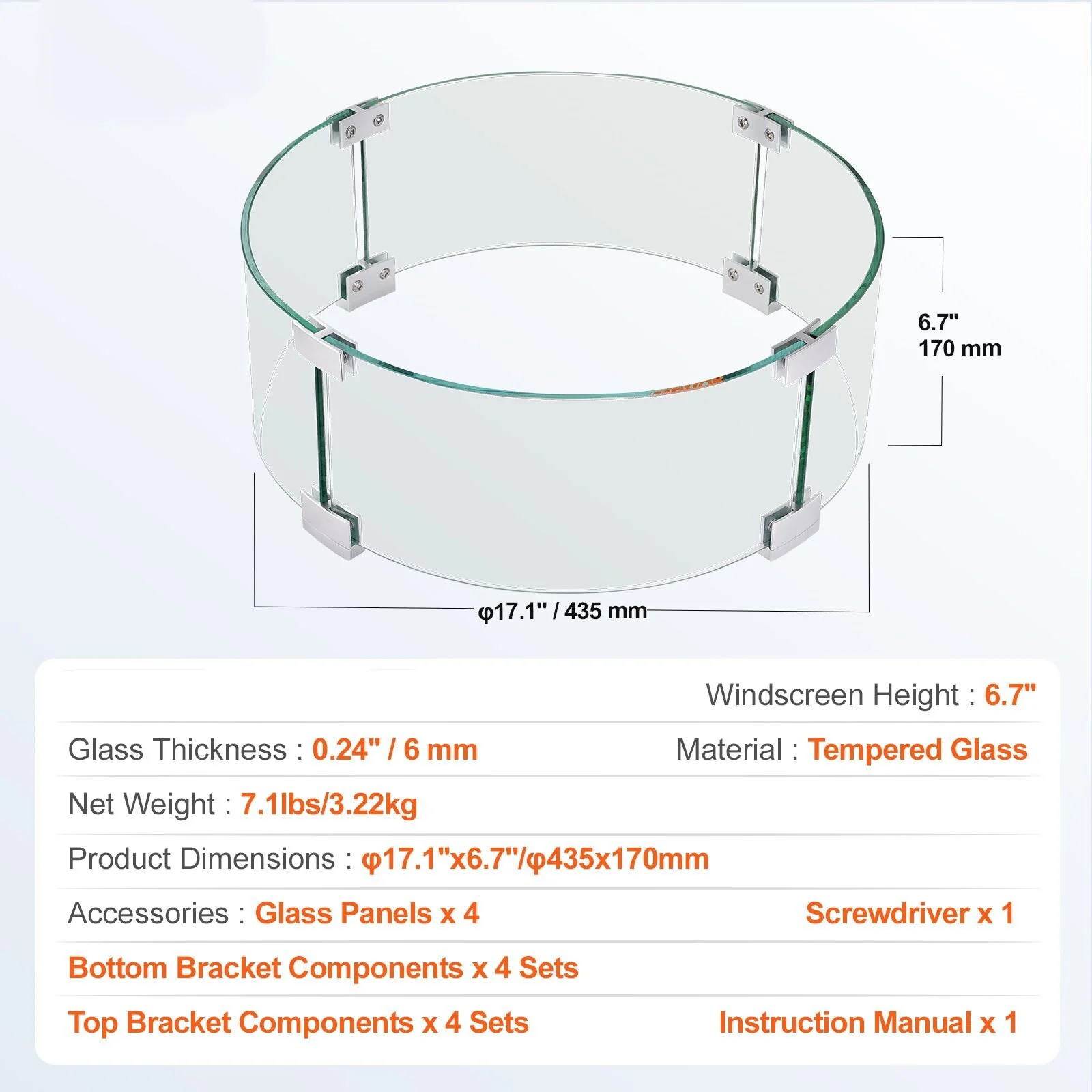 Clear Tempered Glass Wind Guard for Fire Pits with Alloy Frame