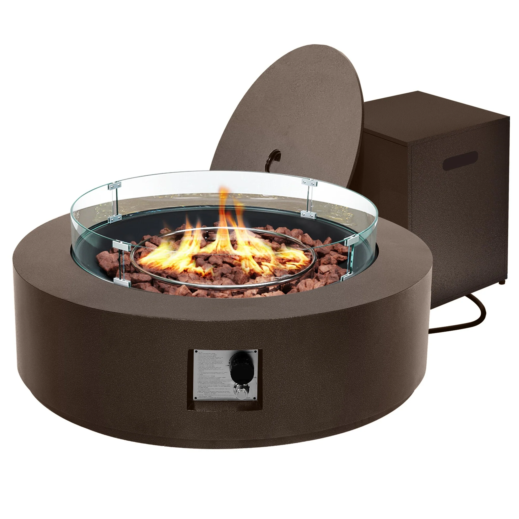 GDFStudio - Phoenix Round Steel Fire Pit Table with Steel Lid and Lava Rocks