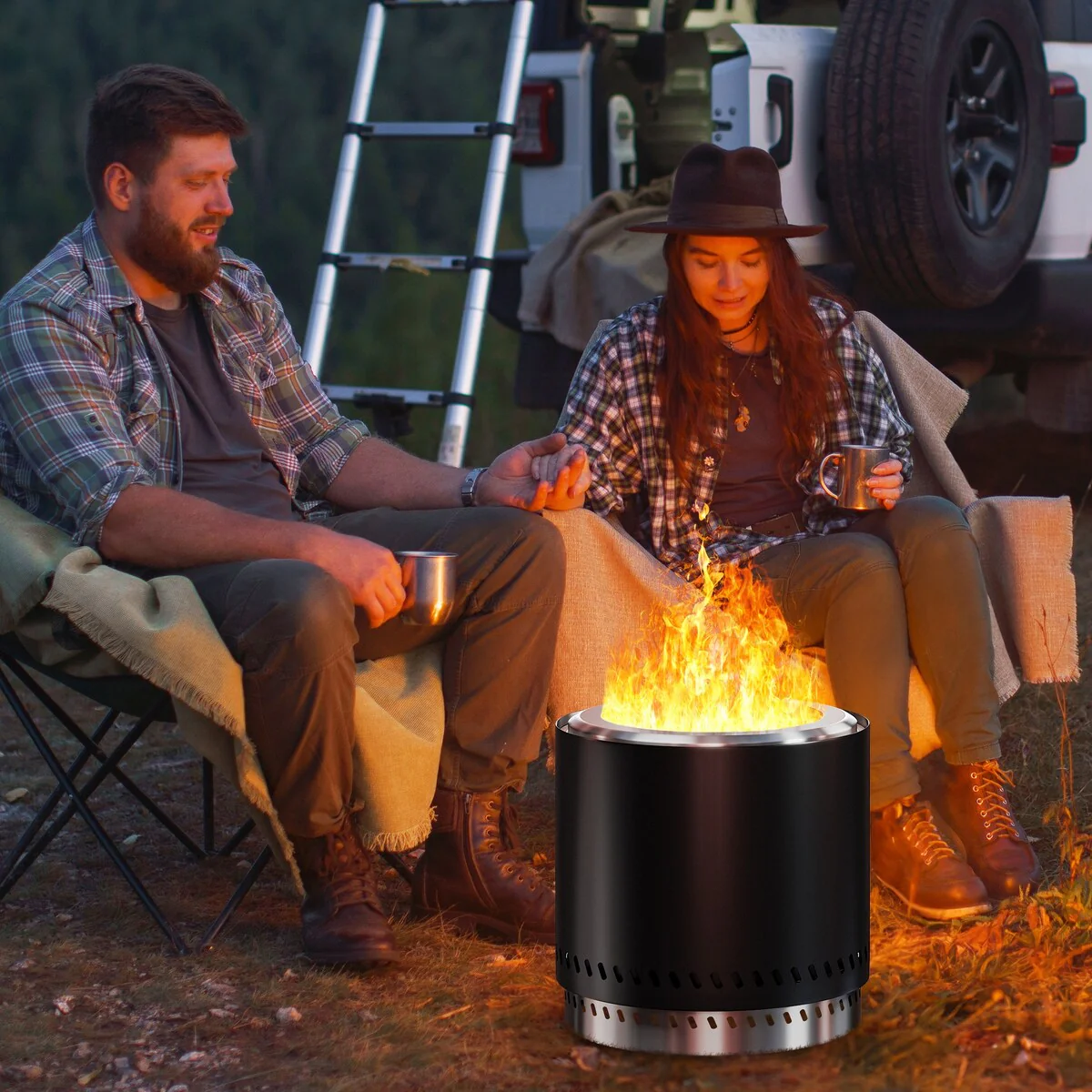 Stainless Steel Wood Burning Smokeless Portable Round Fire Pit Table - 15"