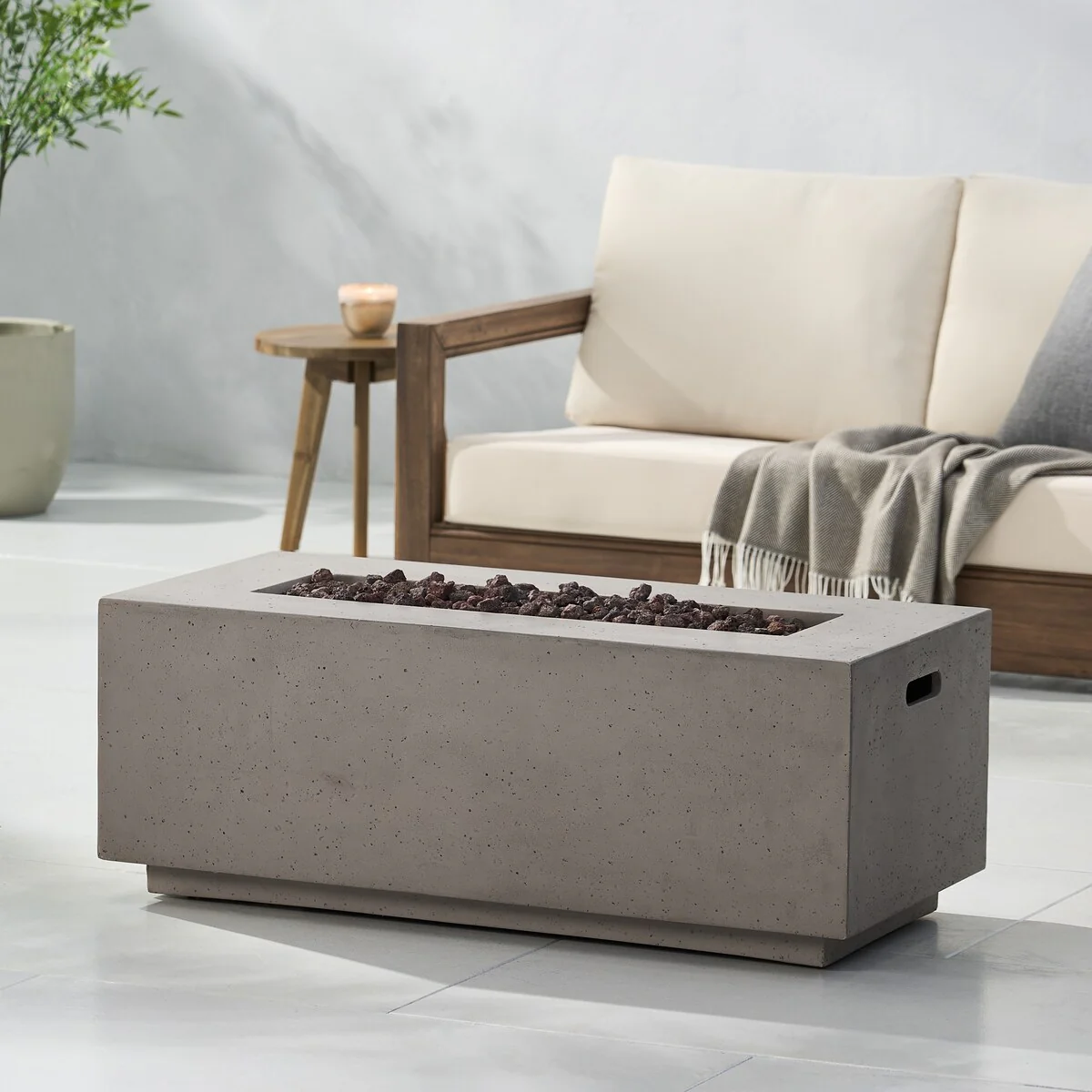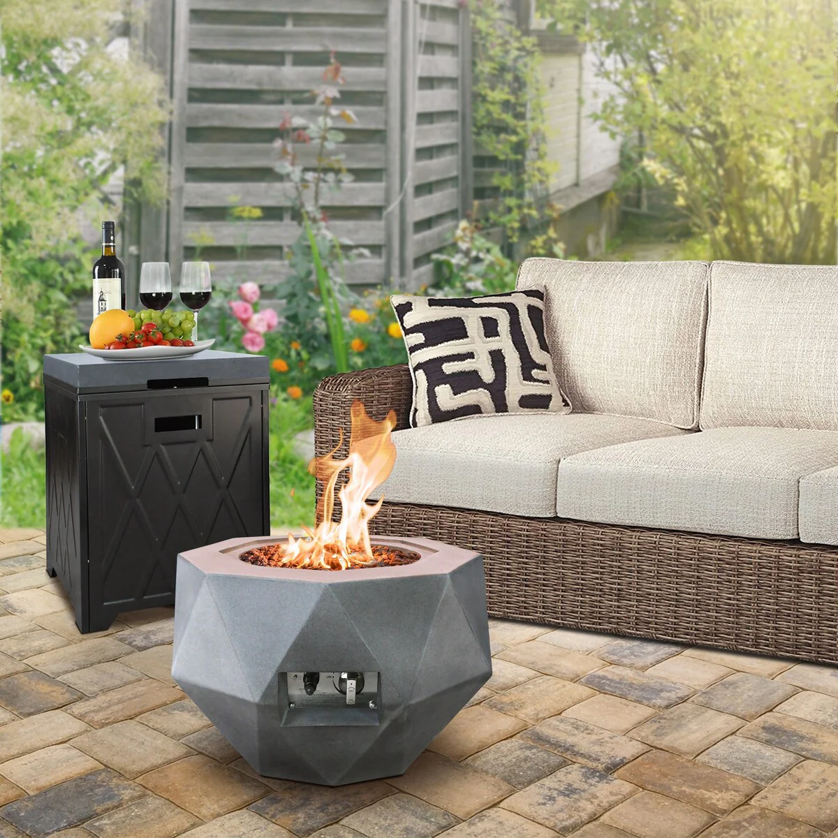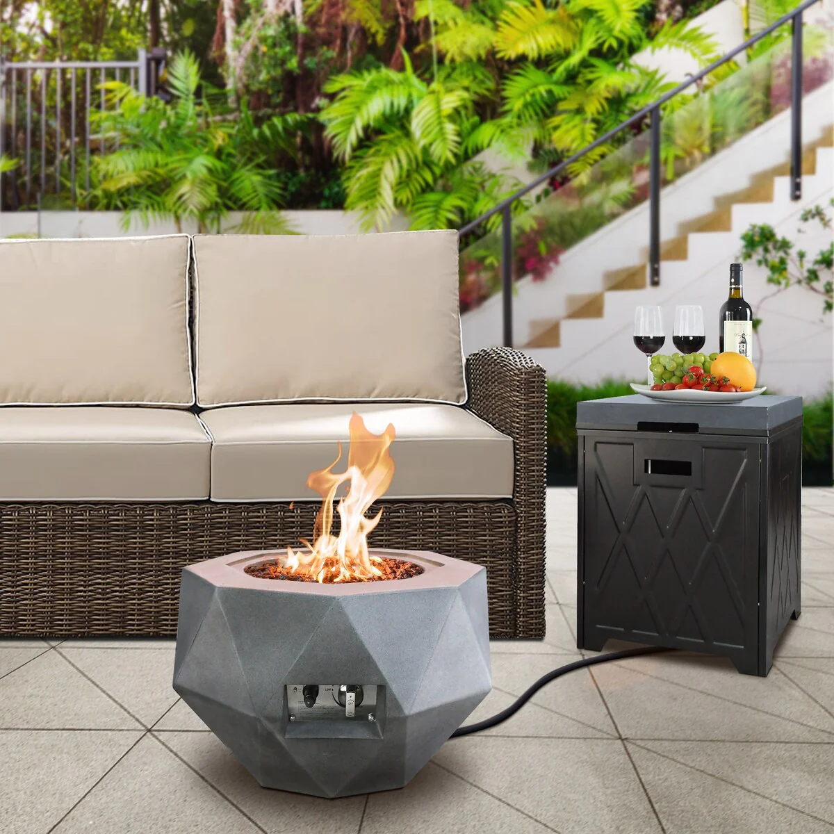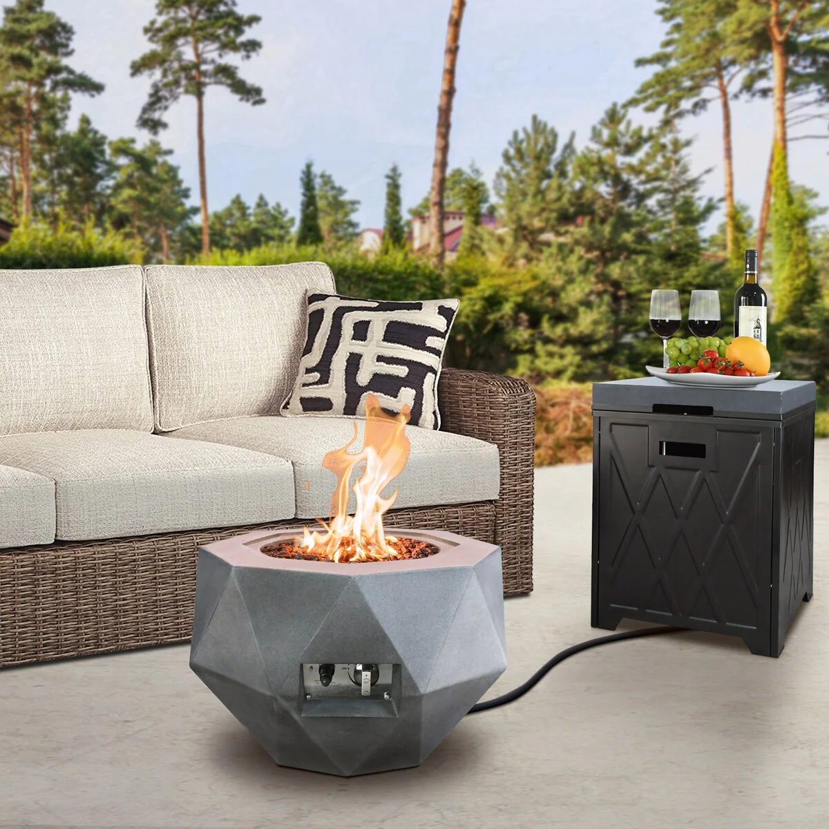 Concrete Propane Fire Pit Table With Tank Cover, Geometric Fireplace 25" W, Gray - 25" W x 25" L x 17.1" H