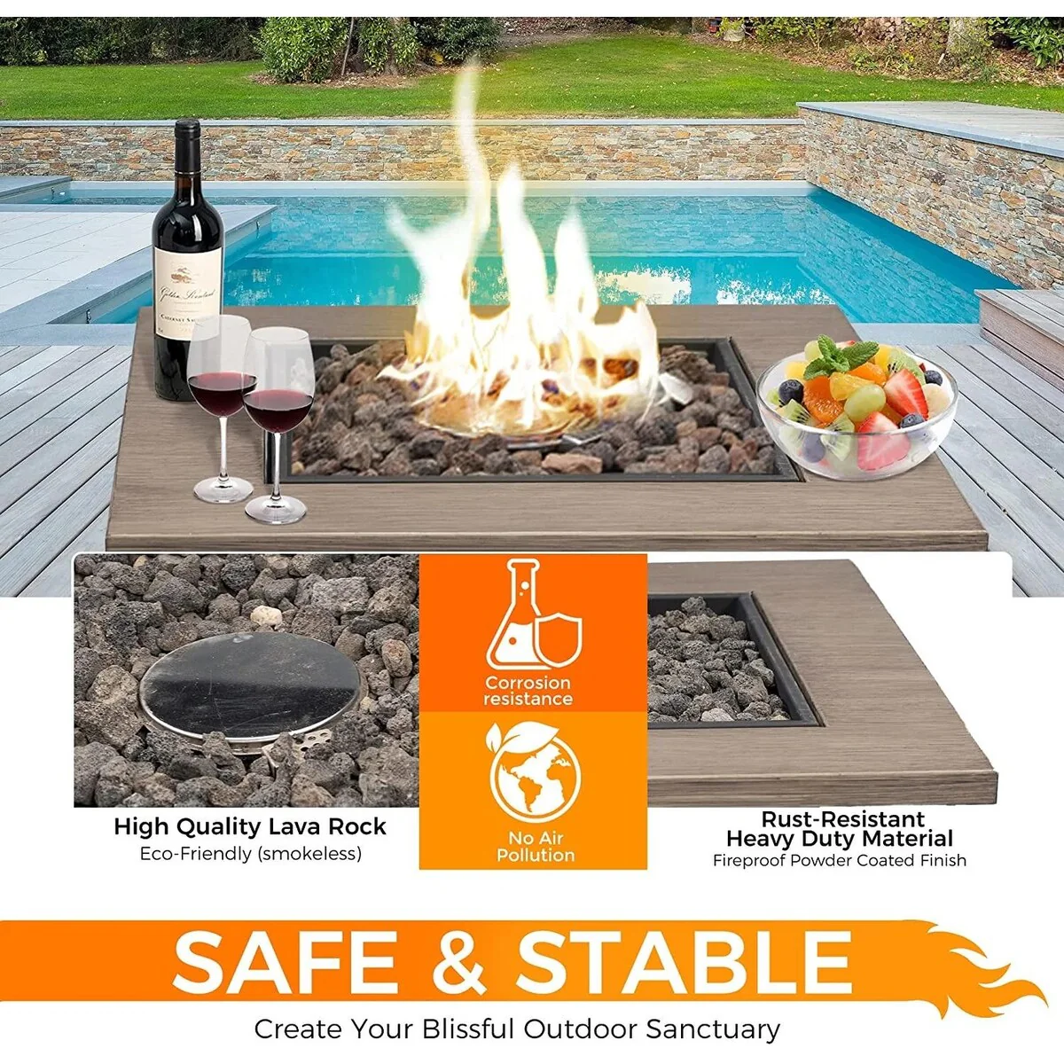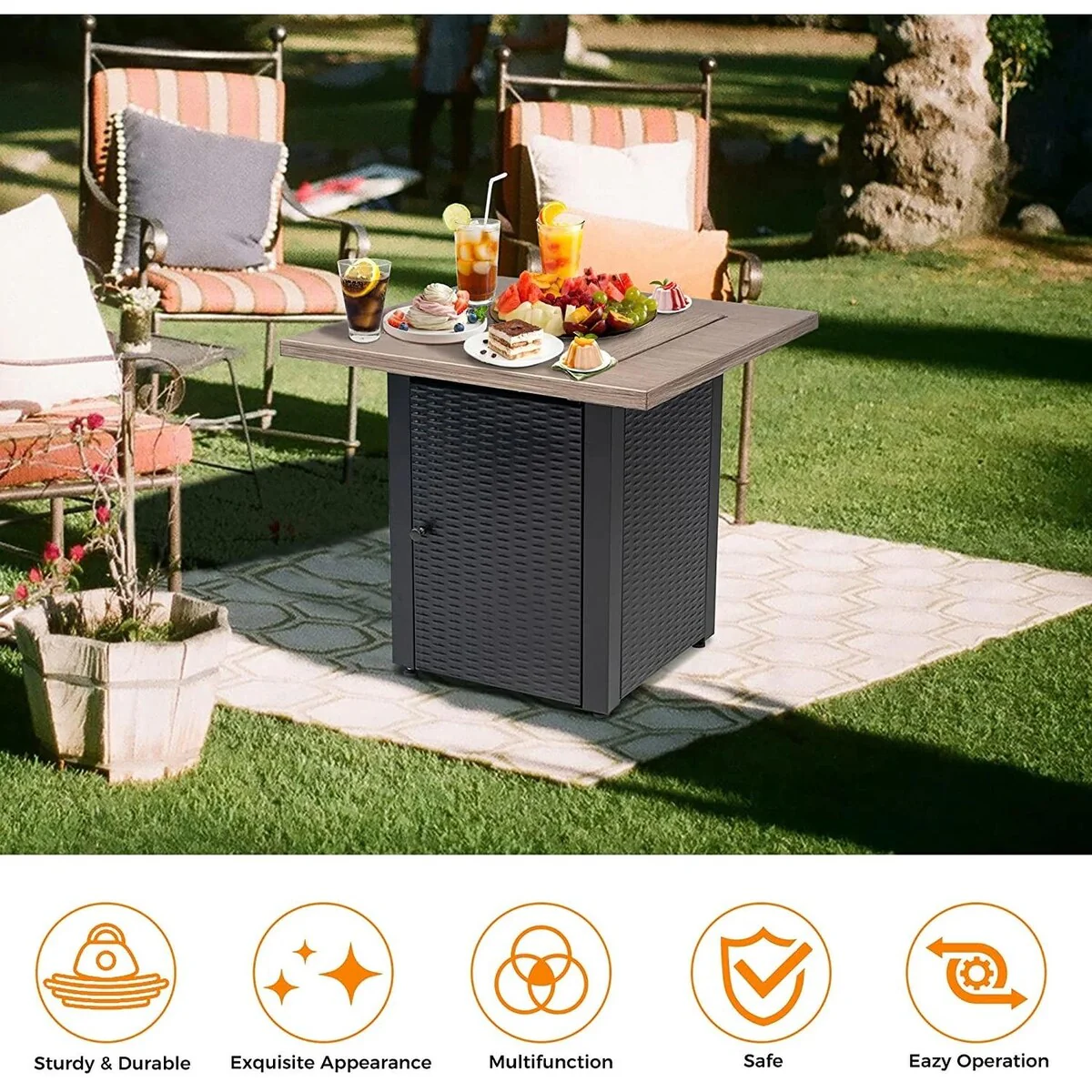 Ainfox Patio Square Gas Fire Pit Table with Volcanic Stone